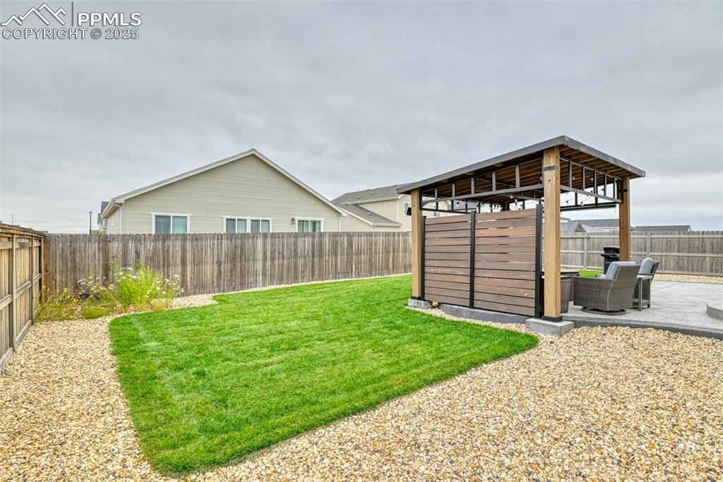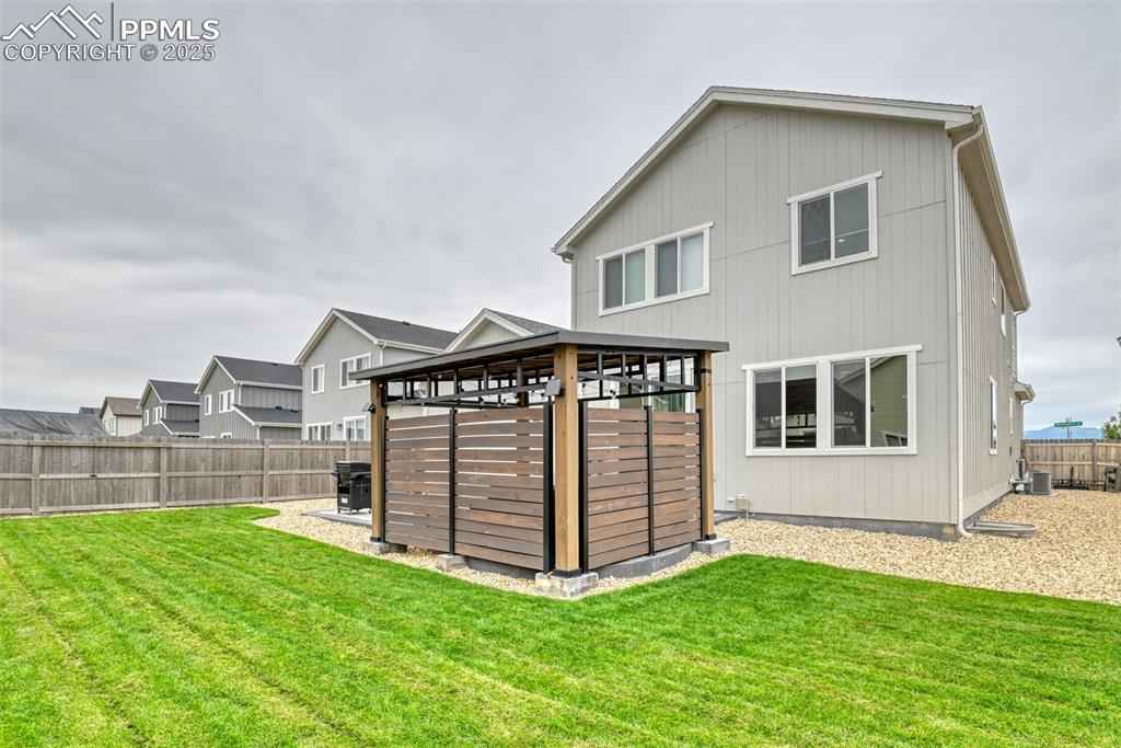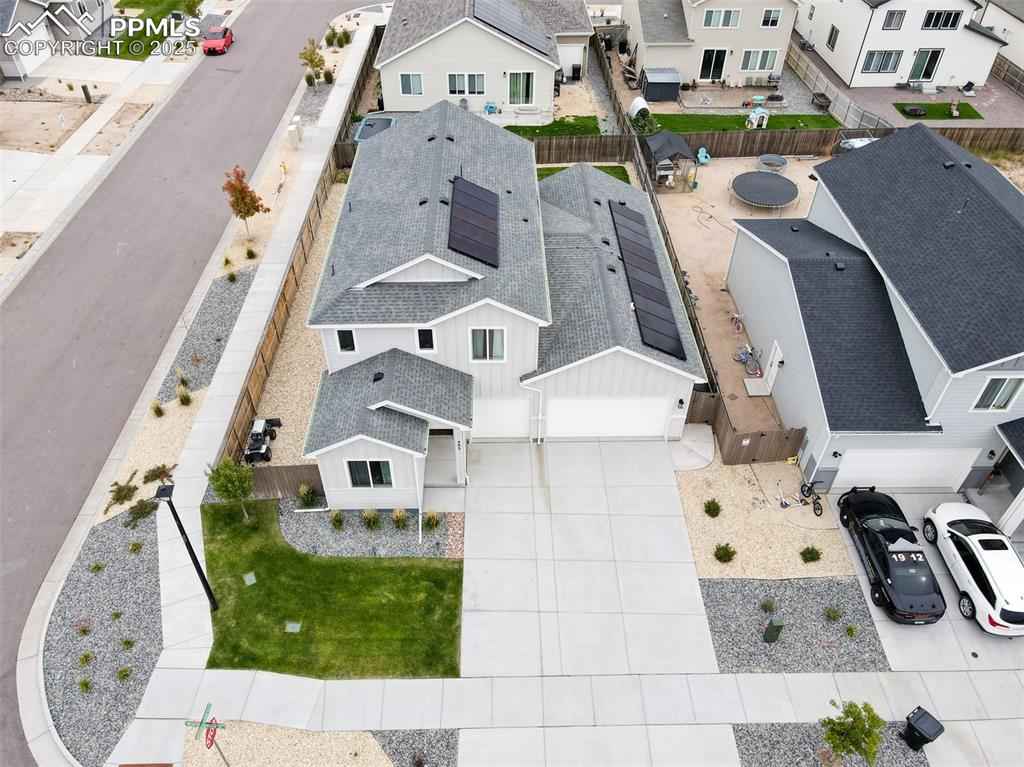 Welcome to Mayberry Communities! This beautifully crafted new-build home offers the perfect blend of modern efficiency and inviting comfort. Featuring 4 spacious bedrooms, 3 bathrooms, and a generous 5-car garage, this residence is designed to accommodate todayx2019;s lifestyle.xD;xA;Step inside to an open-concept layout filled with natural light, a gourmet kitchen with quartz countertops, stainless steel appliances (including refrigerator), gas range, and ample cabinetry with tall uppers, plus a walk-in pantry for added convenience. The primary suite is a true retreat, complete with dual sinks, a quartz vanity, glass-enclosed walk-in shower, and large walk-in closet.xD;xA;This home stands out with its energy-saving solar panels, giving you the advantage of lower utility bills and eco-friendly living. Outside, enjoy a nicely landscaped backyard, perfect for entertaining, relaxing, or Colorado evenings under the stars.xD;xA;Additional highlights include second-story laundry and thoughtful finishes throughout. Located in the growing Mayberry community, youx2019;ll enjoy small-town charm with easy access to Colorado Springs, Peterson SFB, Schriever SFB, and Fort Carson.xD;xA;Donx2019;t miss the opportunity to own this beautiful home with solar efficiency and a turnkey backyard!