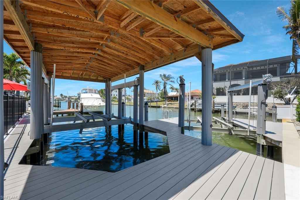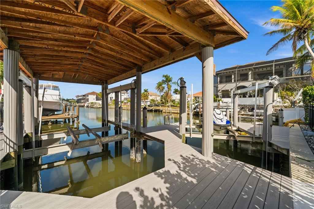 A rare investment opportunity and the only multifamily-style residence currently available in the entire Connors area of Vanderbilt Beach. This exceptional Gulf-access waterfront property offers versatility, usability, and long-term value, set on an oversized corner lot with approximately 105 feet of canal frontage.xD;xA;xD;xA;Constructed of concrete block and designed as a single-story residence, the property features a primary home plus a separate guest apartment, creating a flexible layout ideal for personal use, income potential, or extended family living. A private dock is already in place and accommodates two boat lifts, including one lift with a boathouse, providing protected and convenient boating access. The wide canal offers open water views, excellent maneuverability, and a desirable setting within one of Naplesx2019; most established boating communities.xD;xA;xD;xA;Outdoor living is a standout feature of the property, thoughtfully designed for both entertaining and relaxation. Enjoy the beautiful infinity-edge pool surrounded by an expansive paver deck, along with a canal-front tiki hut featuring a full bar, Bluetooth speaker system, and scenic water viewsx2014;perfect for sunset gatherings. A pergola with integrated lighting creates an inviting space for evening dining or lounging, while a private 7-hole mini-golf course adds a distinctive and rarely found amenity that enhances both lifestyle enjoyment and guest appeal.xD;xA;xD;xA;Interior spaces are comfortable, stylish, and fully updated, featuring a split-bedroom floor plan, abundant natural light, and seamless indoor-outdoor connectivity. The entire interior has been completely renovated with modern finishes and improved functionality throughout. The single-level design enhances accessibility and everyday livability.xD;xA;xD;xA;The main residence includes three bedrooms plus a den and two full baths. A separately metered guest apartment with private entrance and dedicated parking offers one bedroom, one bath, kitchen, living area, laundry, and screened porchx2014;allowing for independent use or rental flexibility.xD;xA;xD;xA;Recent improvements include a new roof, impact-resistant windows and sliders throughout, and storm surge protection, providing added peace of mind and long-term durability.xD;xA;xD;xA;With multiple living spaces, two boat lifts, and direct Gulf access, this canal-front property offers a level of flexibility rarely found in the Connors area and supports a wide range of ownership strategies.xD;xA;xD;xA;Ideally located near Vanderbilt Beach, the Ritz-Carlton, and Mercato, with convenient access to premier dining, shopping, and coastal amenities, this property presents a compelling opportunity in one of Naplesx2019; most desirable waterfront neighborhoods.