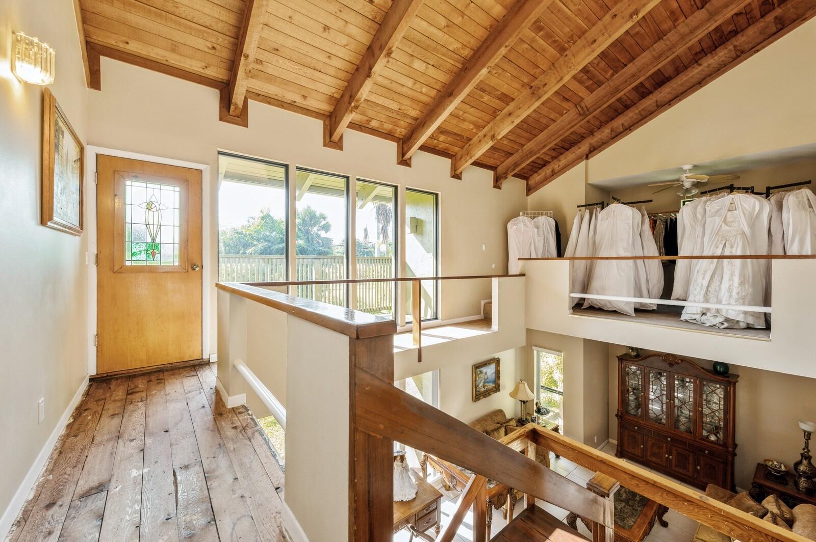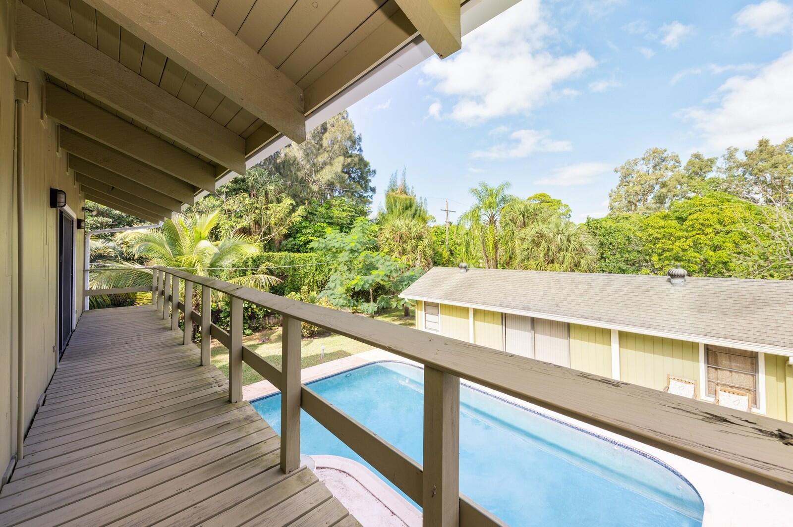 No HOA! Unique, all ages single family home with no HOA, a private pool and an in-law house complete with a kitchen, 1 bedroom and a bathroom. The structure of the main house consists of large, rich wooden beams in the tall living room and bedroom ceilings. Skylights in the house and large windows shed an abundance of natural light. The open kitchen with new appliances and bar overlooks the family area. The second story of the house features a loft plus bedrooms that share a Jack and Jill bathroom as well as a balcony overlooking the pool. Along with the salt water and heated pool, the fenced-in yard has a lovely gazebo. There are multiple patios to choose from to relax. Palm Beach airport is 8 min. away, downtown West Palm Beach is 9 min. away and Mounts Botanical Garden 4 min.