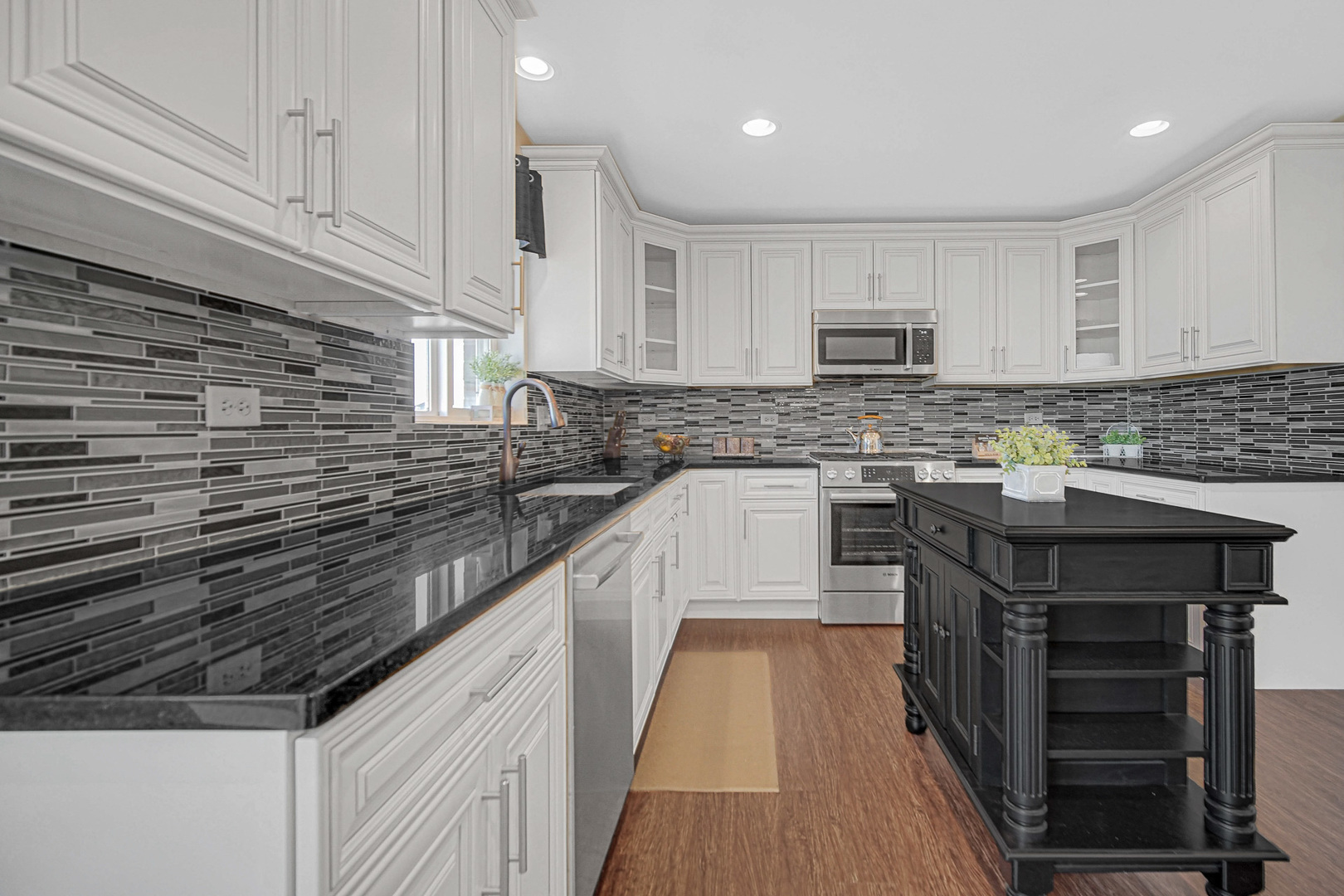 Nestled on a private hilly cul-de-sac, this impressive 3,200 sq ft residence blends architectural elegance with modern comfort. Inspired by Frank Lloyd Wright design elements, the home offers an open-concept layout with soaring ceilings, a main-level fireplace, engineered wood floors throughout the first floor, and plush carpeted bedrooms. The beautifully appointed kitchen features quartz countertops, a glass-accent backsplash, Bosch stainless steel appliances, rich Shaker cabinetry, and custom lighting throughout. The expansive primary suite is a true retreat, showcasing a spa-style bath with soaking tub, separate shower, double vanity, two walk-in closets, and a private balcony with patio access. The finished lower level adds exceptional living space with an additional fireplace and generous room for entertaining or extended living. Equipped with tankless water heater for efficiency and comfort. Owner relocating-easy to show with immediate availability. A rare opportunity-this one won't last!