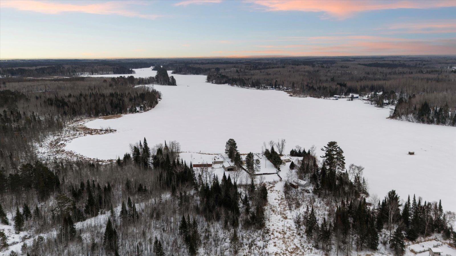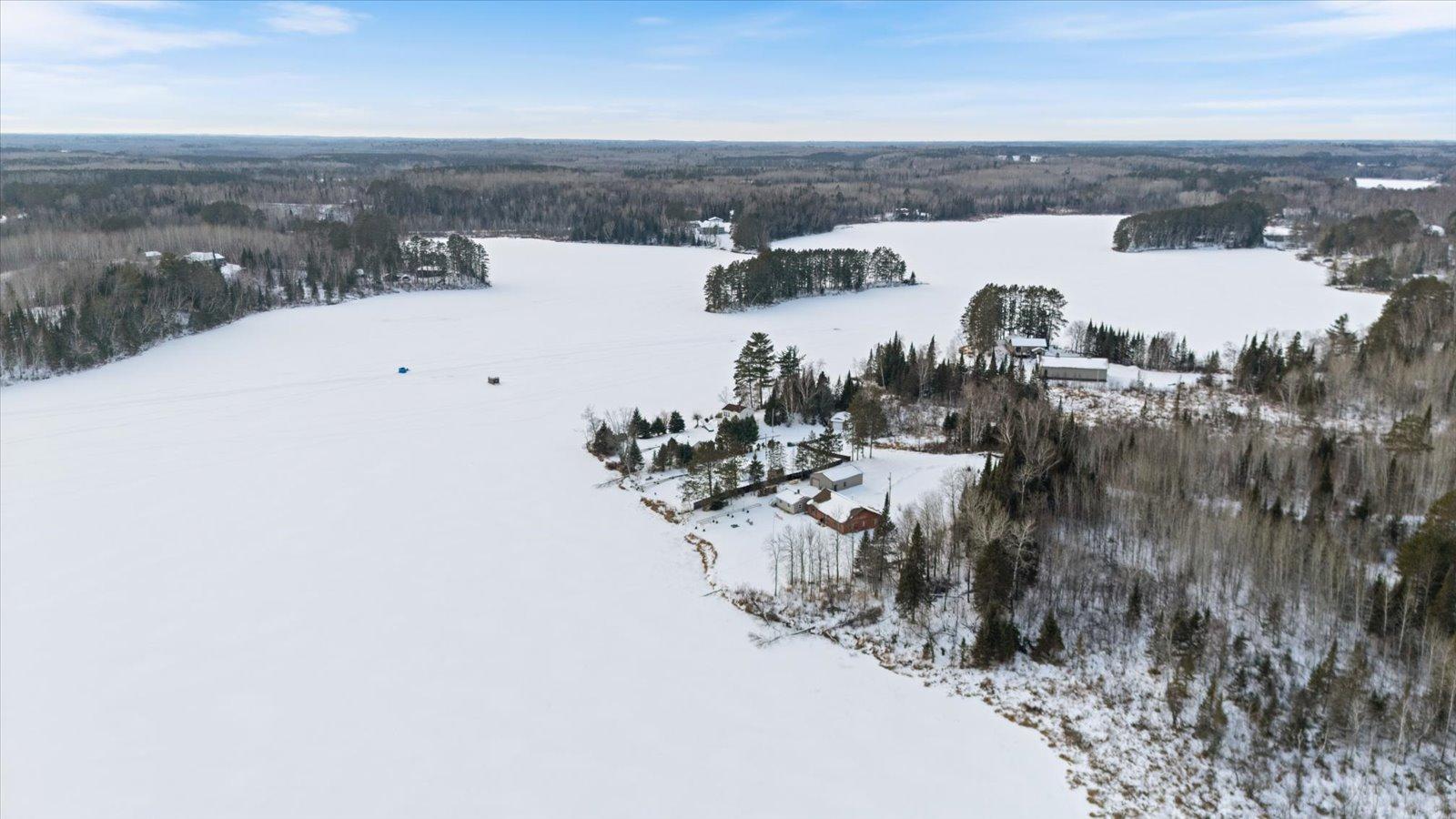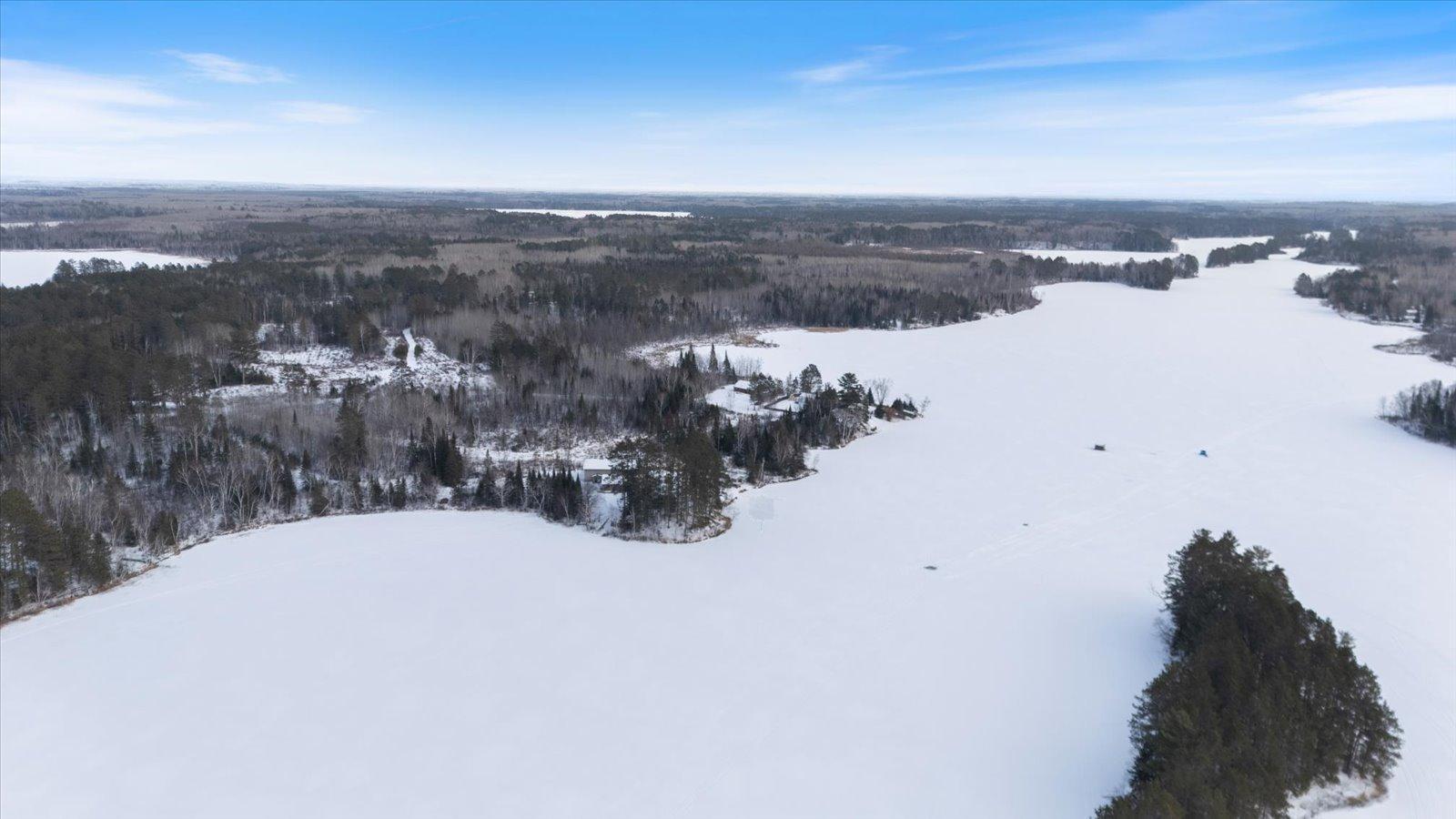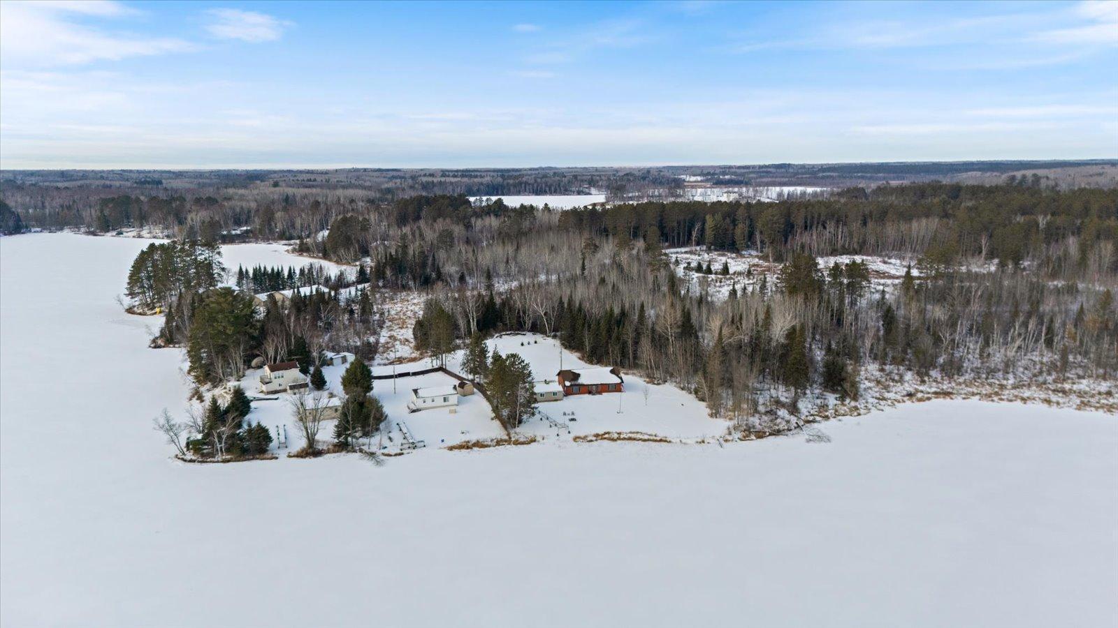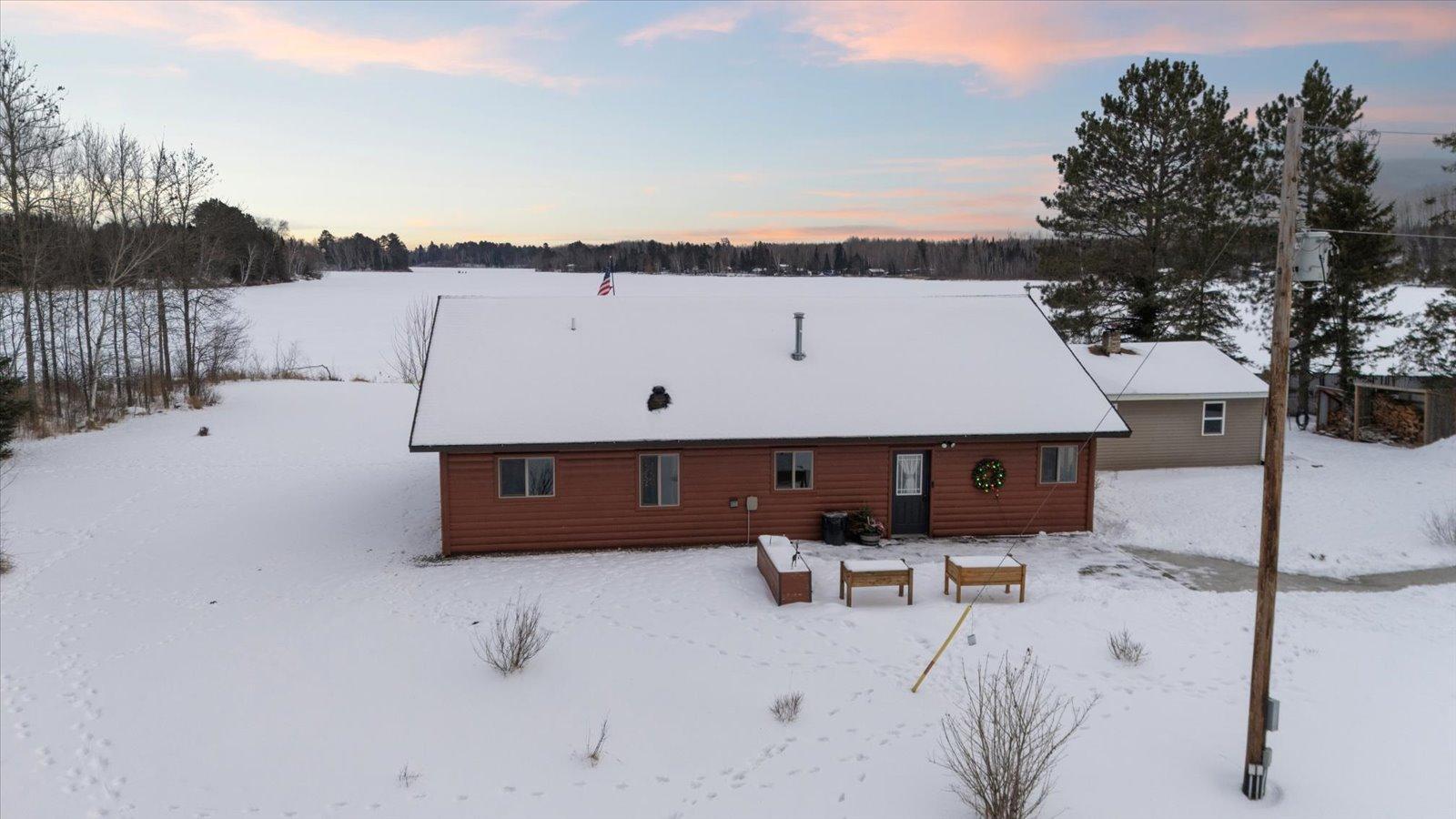 Welcome to lake life on beautiful Long Lake near Bigfork, MN! Built in 2010, this well-designed 2-bedroom, 1.5-bath home (with easy potential for a second full bath) offers over 1,600 square feet of comfortable one-level living. The open-concept layout features vaulted ceilings, in-floor heat, a cozy propane free-standing fireplace, and a kitchen with hickory cabinets, Center Island, and gas stoveperfect for gathering and entertaining. Enjoy lake views from the main living area and primary bedroom, plus the convenience of a mini-split for heating and A/C. Step outside to relax or entertain on the spacious 16x24 lakeside patio while taking in the water views. The level one-acre lot includes 157 feet of shoreline with easy boat access, a lakeside fire pit, and a charming 20x24 two-bedroom cabin with wood heat for guests. A 26x36 pole building (built in 2021) offers concrete floors, electric, drive-through access, and garage door openersideal for toys and storage. Connected to hundreds of acres of state & tax-forfeit land, this property is the perfect blend of privacy, recreation, and year-round enjoyment. This is where dreams come true and memories are made! Come take a peek!