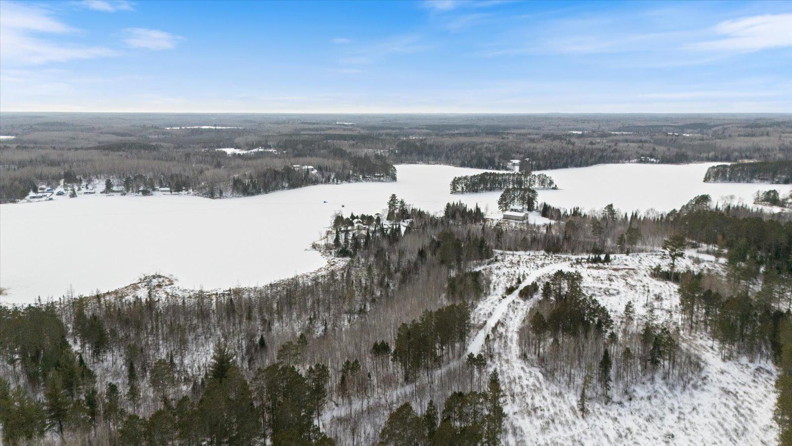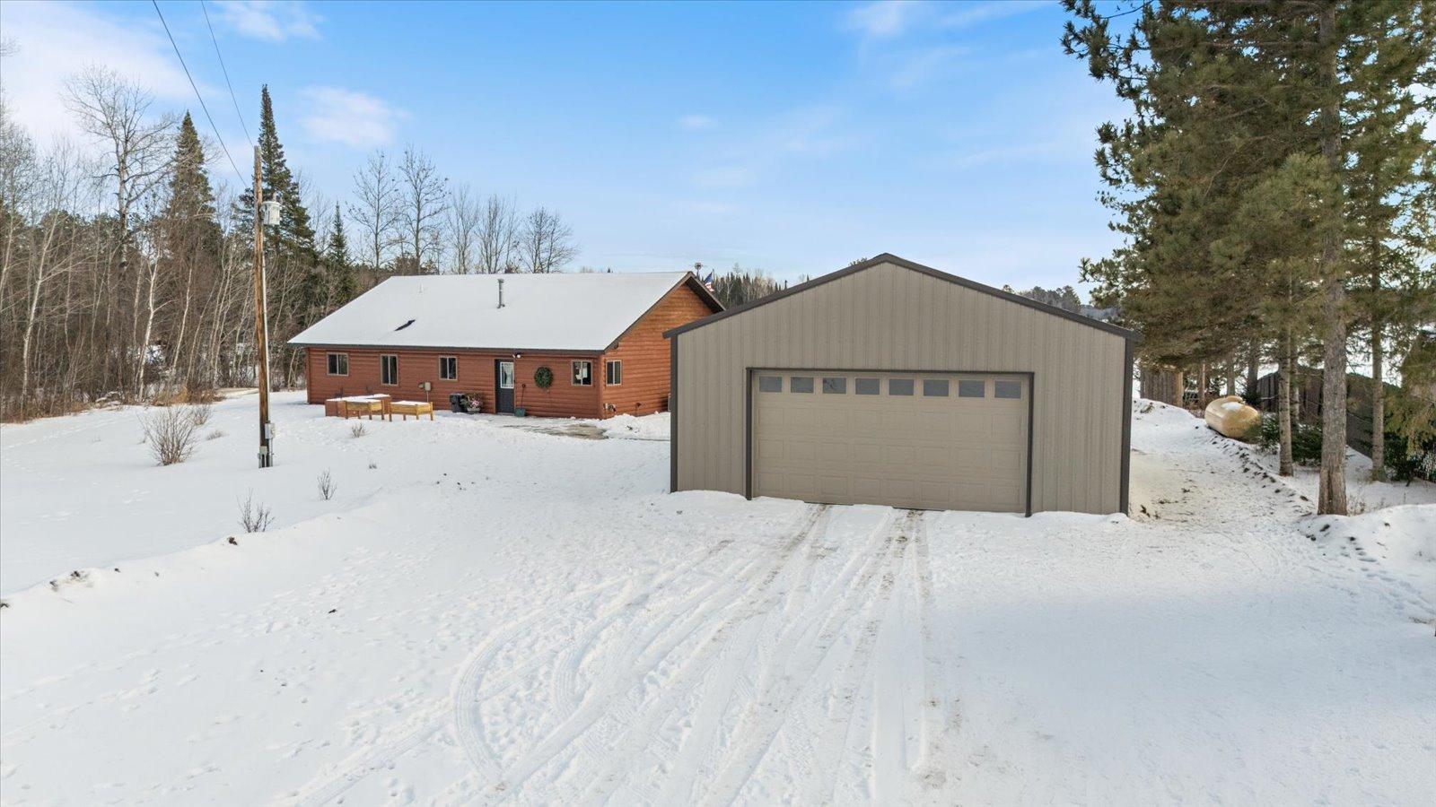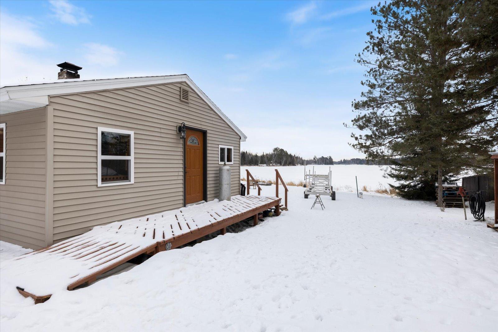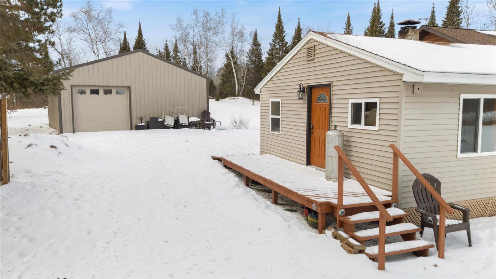 Welcome to lake life on beautiful Long Lake near Bigfork, MN! Built in 2010, this well-designed 2-bedroom, 1.5-bath home (with easy potential for a second full bath) offers over 1,600 square feet of comfortable one-level living. The open-concept layout features vaulted ceilings, in-floor heat, a cozy propane free-standing fireplace, and a kitchen with hickory cabinets, Center Island, and gas stoveperfect for gathering and entertaining. Enjoy lake views from the main living area and primary bedroom, plus the convenience of a mini-split for heating and A/C. Step outside to relax or entertain on the spacious 16x24 lakeside patio while taking in the water views. The level one-acre lot includes 157 feet of shoreline with easy boat access, a lakeside fire pit, and a charming 20x24 two-bedroom cabin with wood heat for guests. A 26x36 pole building (built in 2021) offers concrete floors, electric, drive-through access, and garage door openersideal for toys and storage. Connected to hundreds of acres of state & tax-forfeit land, this property is the perfect blend of privacy, recreation, and year-round enjoyment. This is where dreams come true and memories are made! Come take a peek!