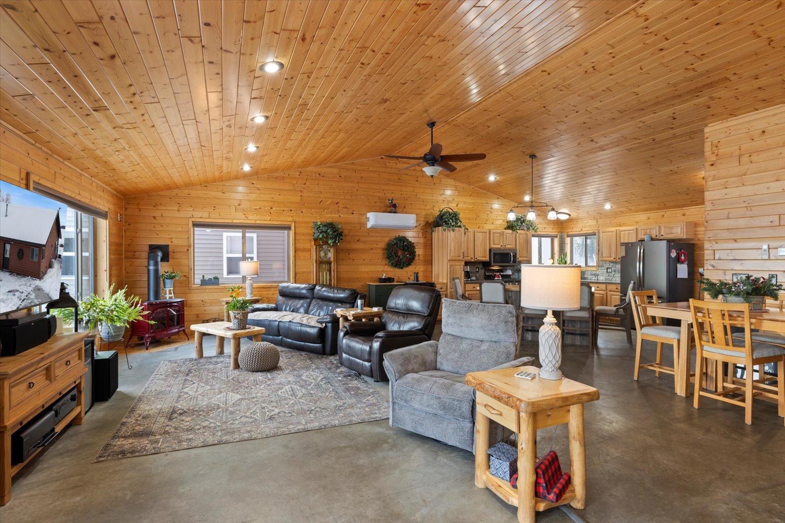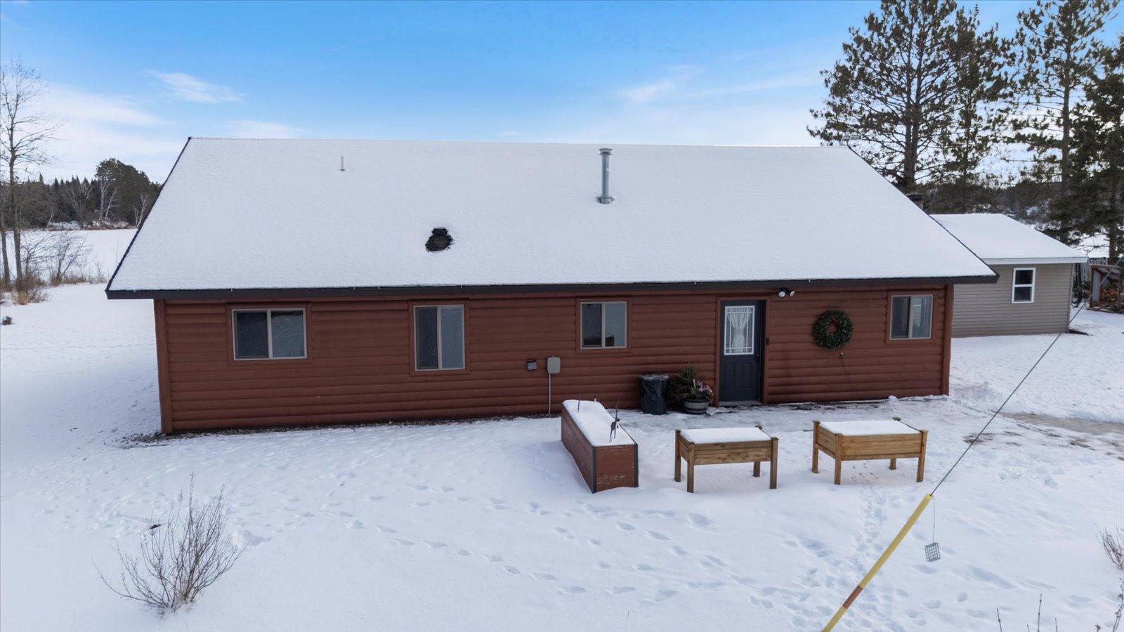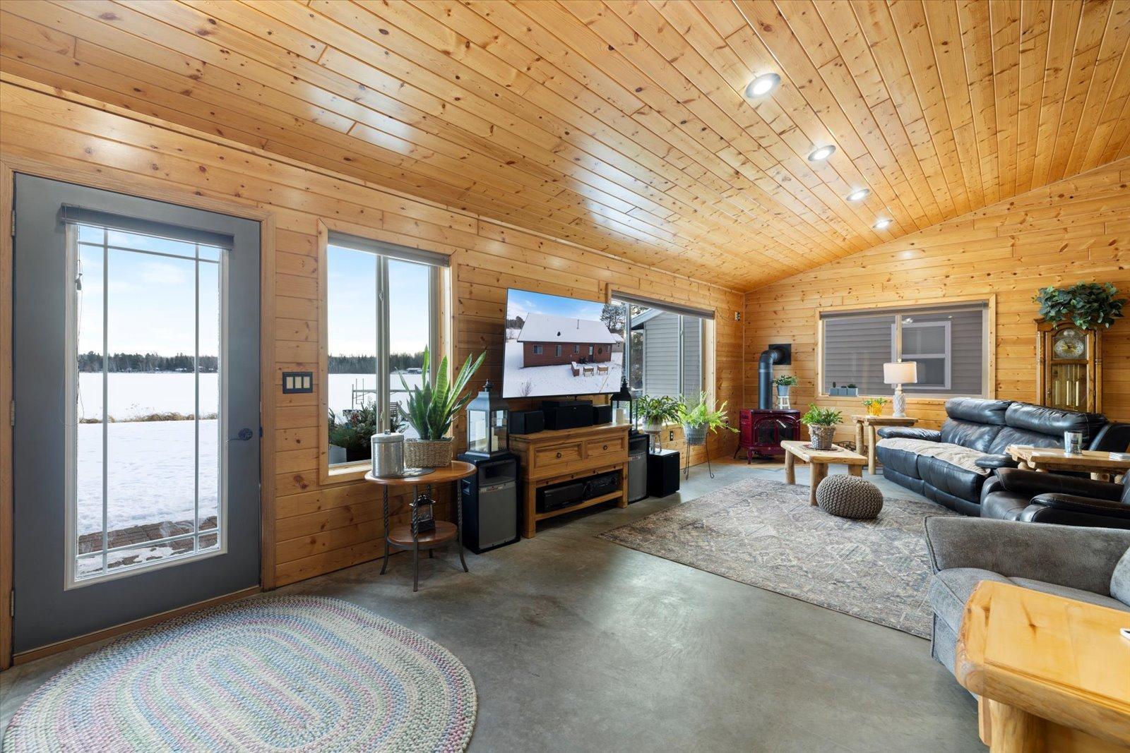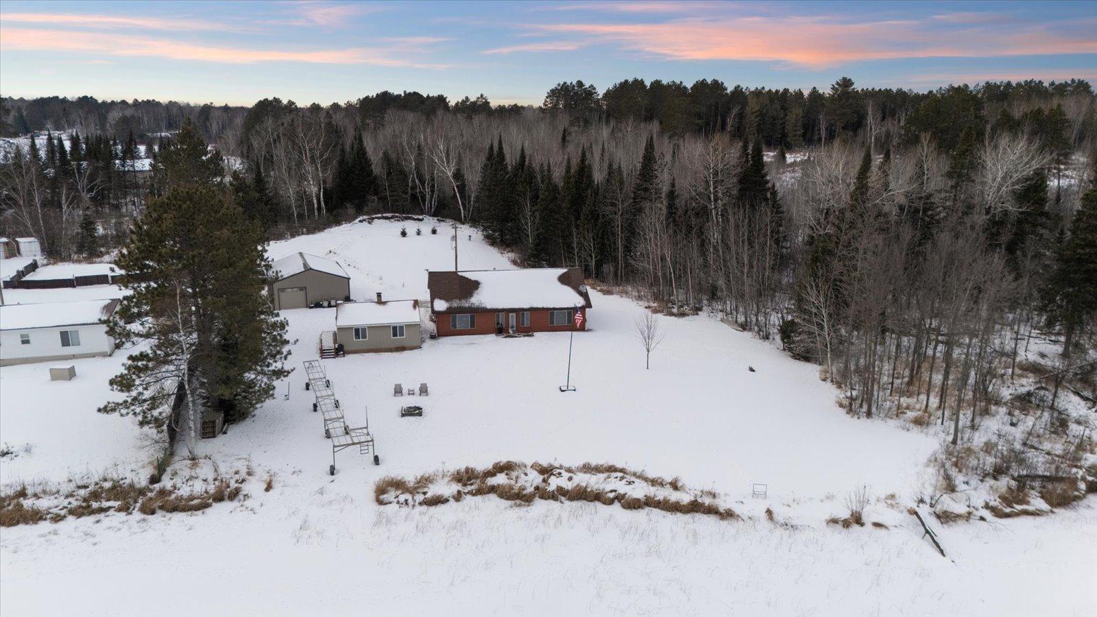 Welcome to lake life on beautiful Long Lake near Bigfork, MN! Built in 2010, this well-designed 2-bedroom, 1.5-bath home (with easy potential for a second full bath) offers over 1,600 square feet of comfortable one-level living. The open-concept layout features vaulted ceilings, in-floor heat, a cozy propane free-standing fireplace, and a kitchen with hickory cabinets, Center Island, and gas stoveperfect for gathering and entertaining. Enjoy lake views from the main living area and primary bedroom, plus the convenience of a mini-split for heating and A/C. Step outside to relax or entertain on the spacious 16x24 lakeside patio while taking in the water views. The level one-acre lot includes 157 feet of shoreline with easy boat access, a lakeside fire pit, and a charming 20x24 two-bedroom cabin with wood heat for guests. A 26x36 pole building (built in 2021) offers concrete floors, electric, drive-through access, and garage door openersideal for toys and storage. Connected to hundreds of acres of state & tax-forfeit land, this property is the perfect blend of privacy, recreation, and year-round enjoyment. This is where dreams come true and memories are made! Come take a peek!