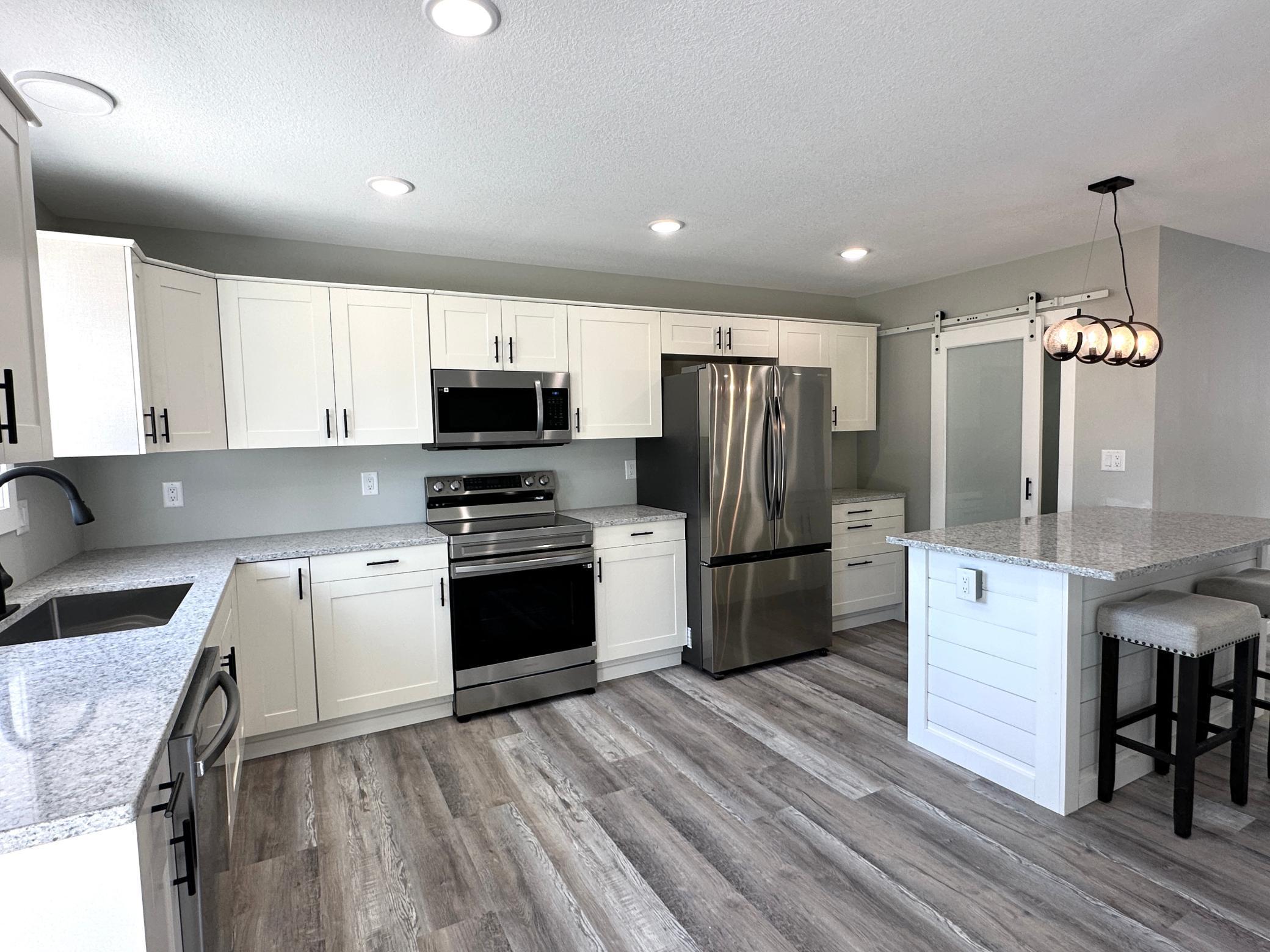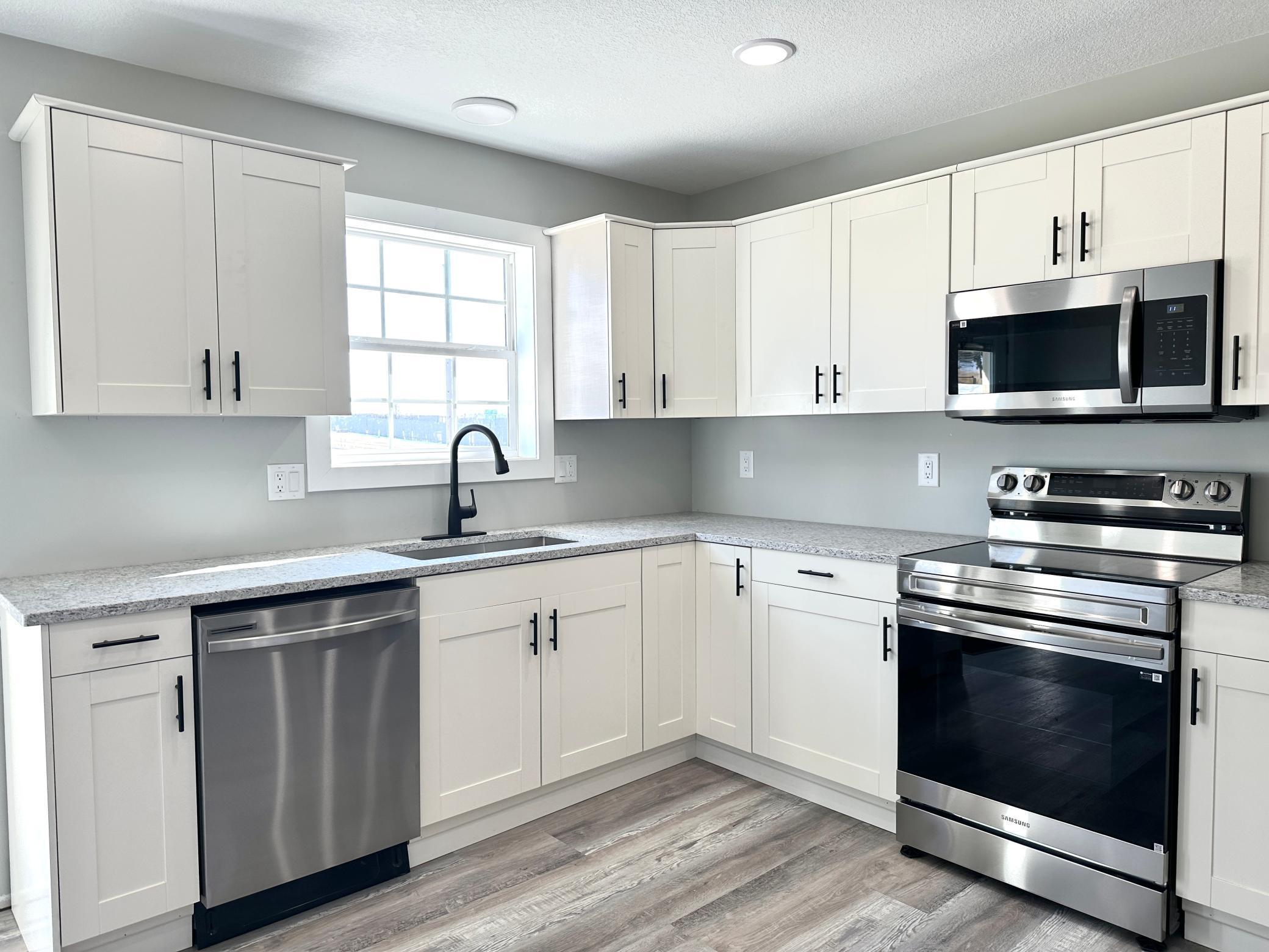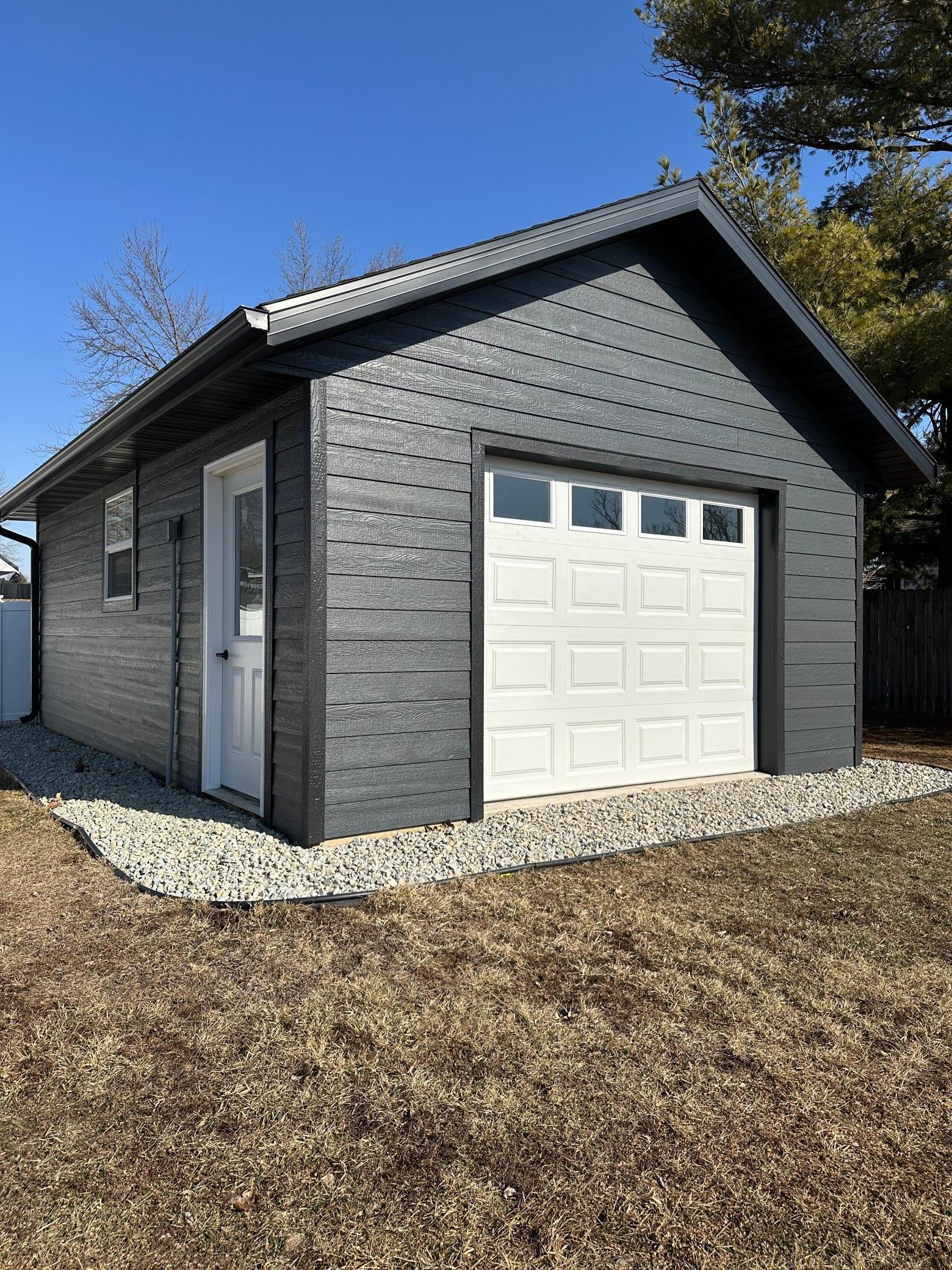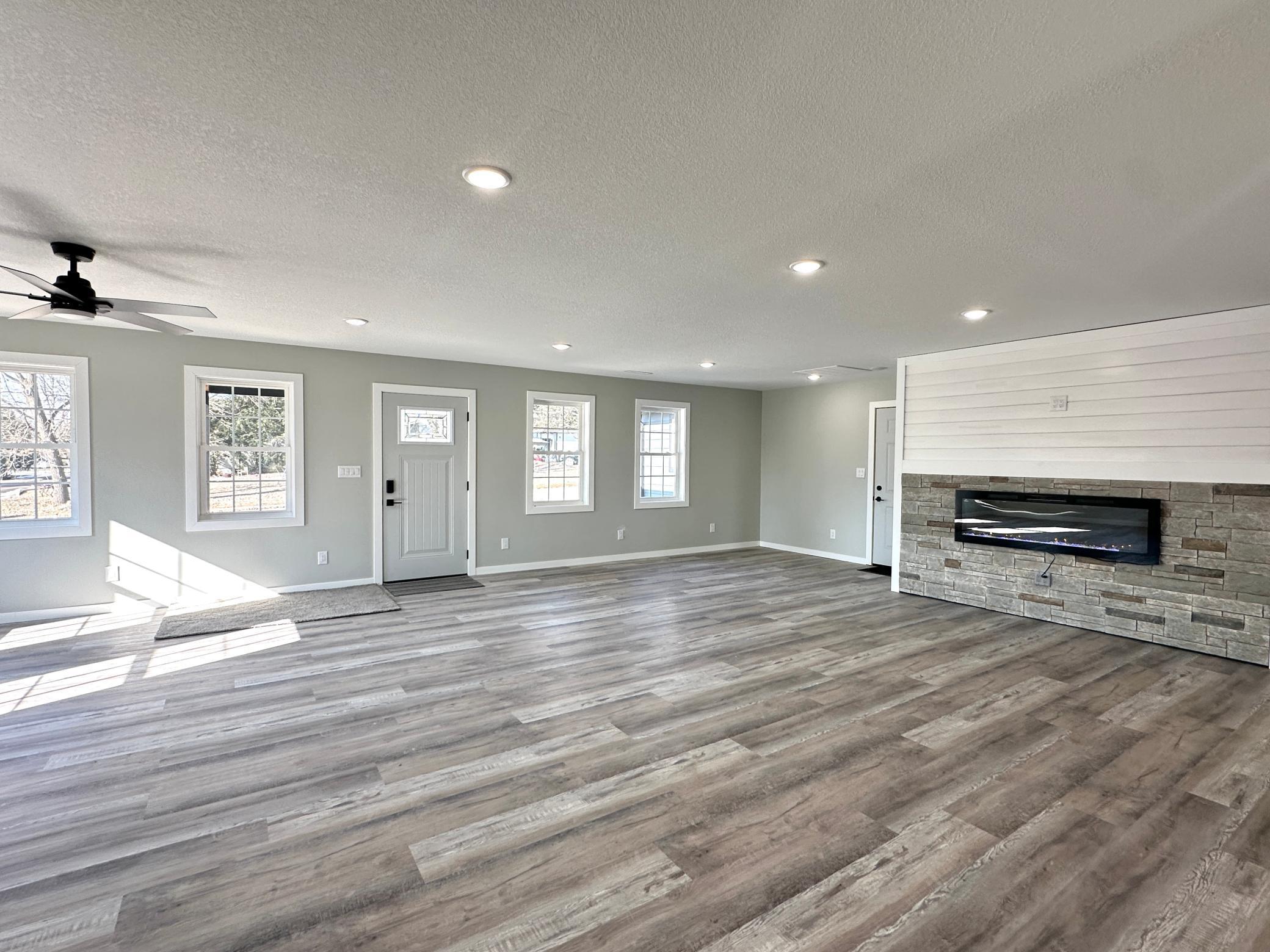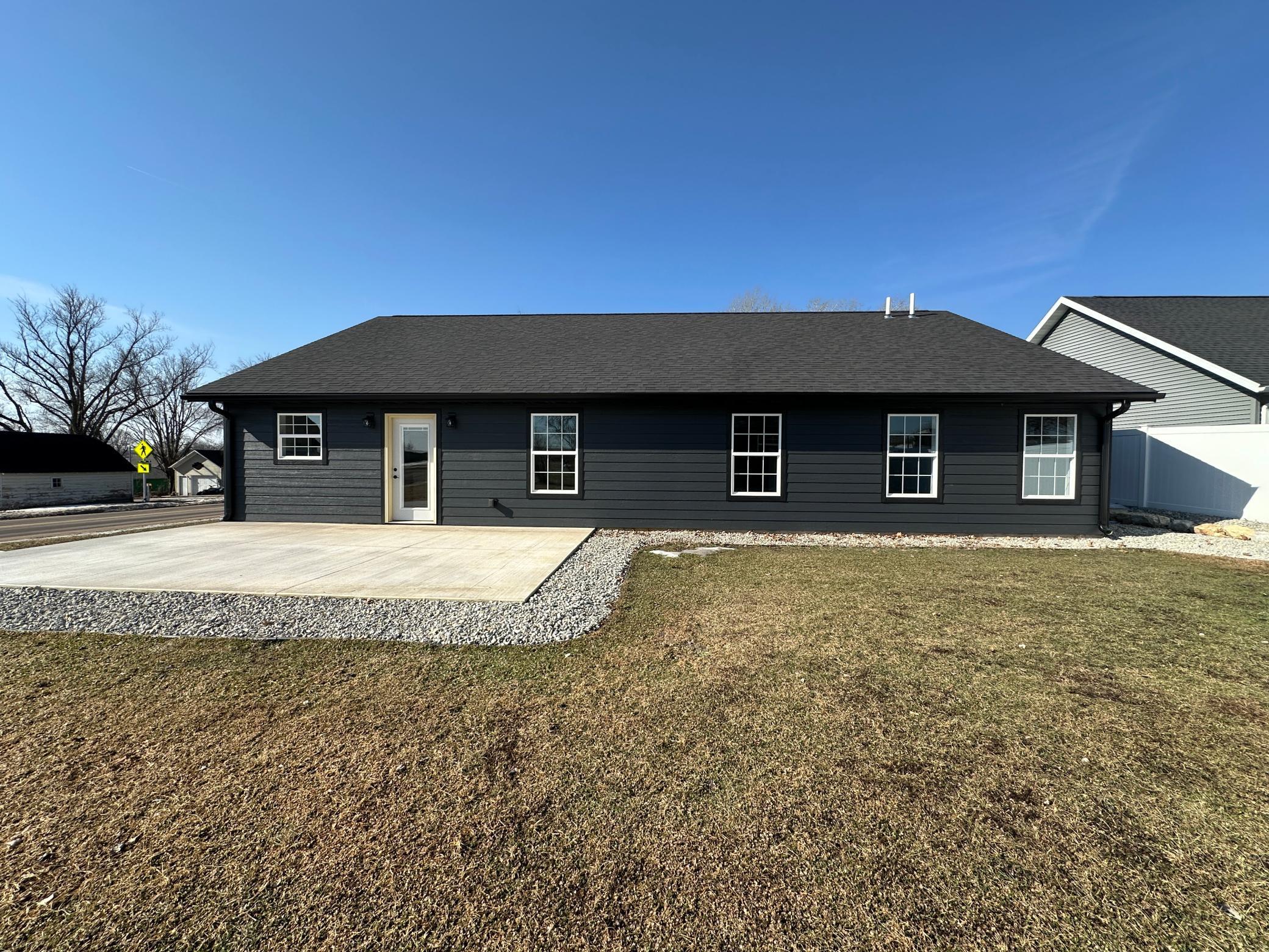 New construction home offers a beautifully designed open floor plan that feels both spacious and welcoming. Featuring a large kitchen with stylish cabinetry, granite countertops, stainless steel appliances, and a walk-in pantry that provides the storage every homeowner dreams of. Informal dining area flows seamlessly into the expansive living room filled with natural light and electric fireplace, perfect for both everyday living and entertaining. 3 bedrooms offer walk in closets and east facing windows. Wide hallway adds to the homes comfortable layout and accessibility, luxury vinyl flooring throughout brings both durability and modern appeal. Outside enjoy long-lasting curb appeal of a fully landscaped yard and inviting covered front entrance. Large concrete backyard patio creates the perfect space for summer evenings and gatherings. A standout feature is the additional 16x24 insulated garage/workshop ideal for hobbies, storage, or extra workspace.Move-in ready and designed with comfort, style, and functionality in mind, this home offers the simplicity of new construction without the wait.