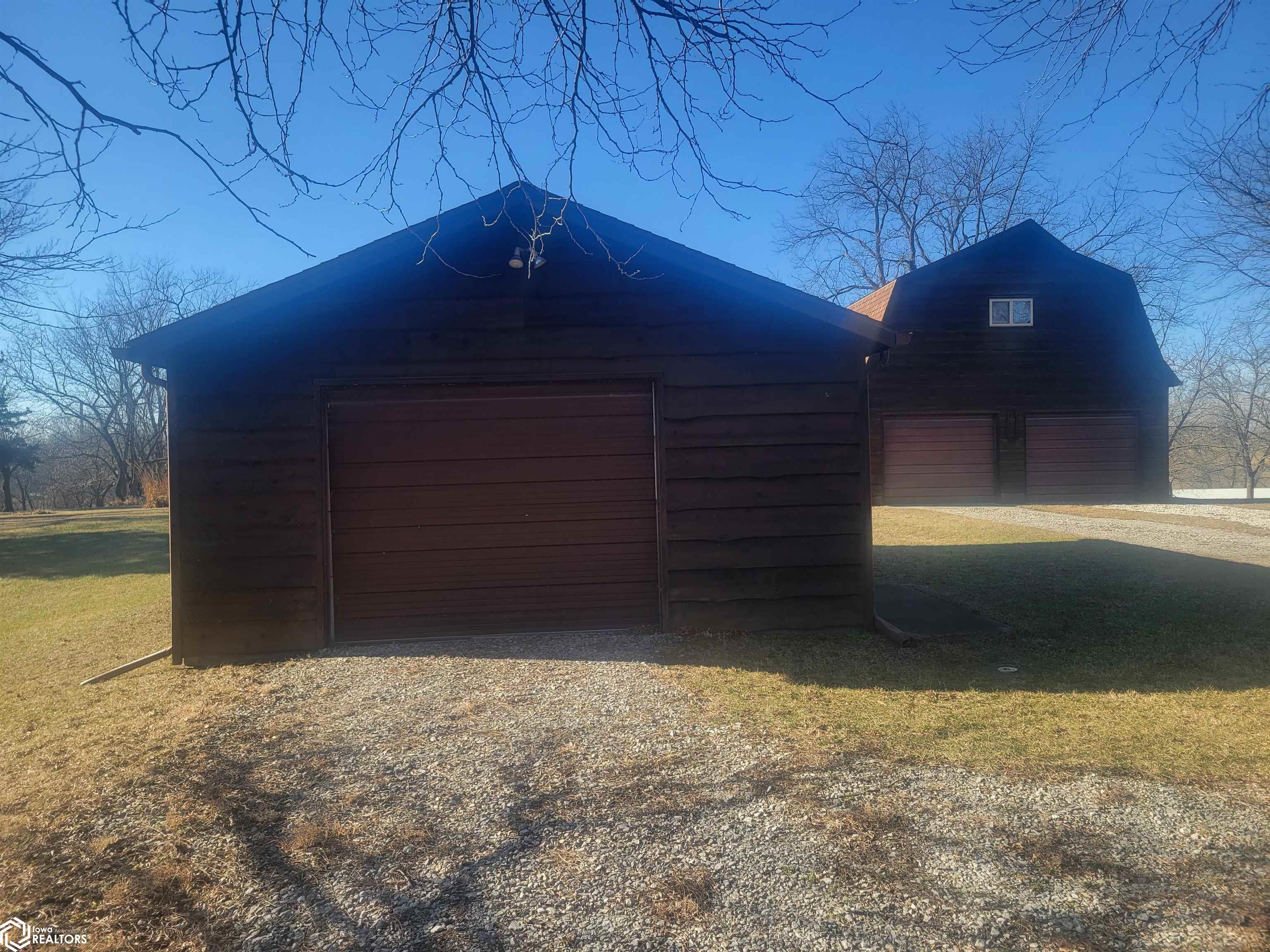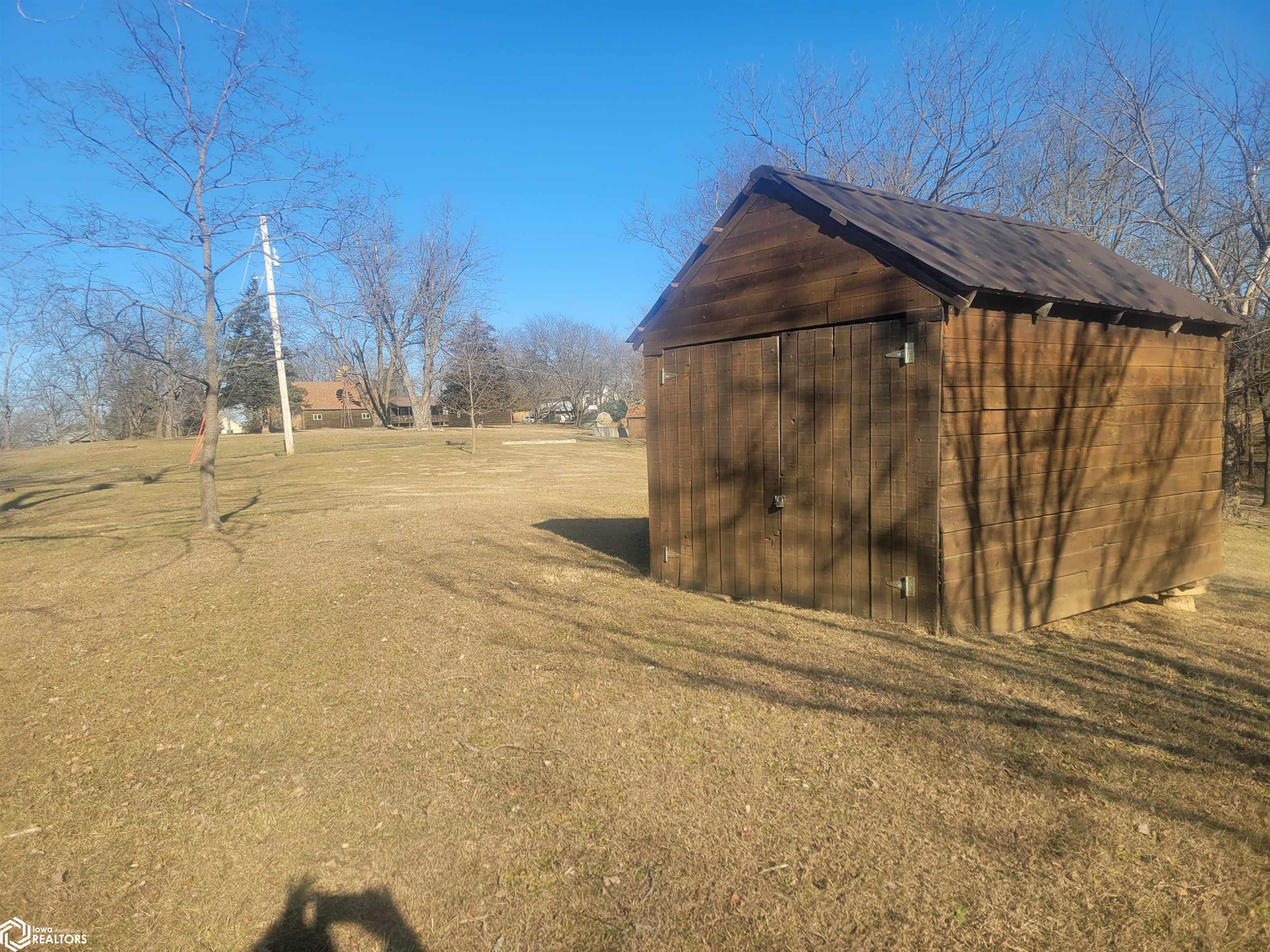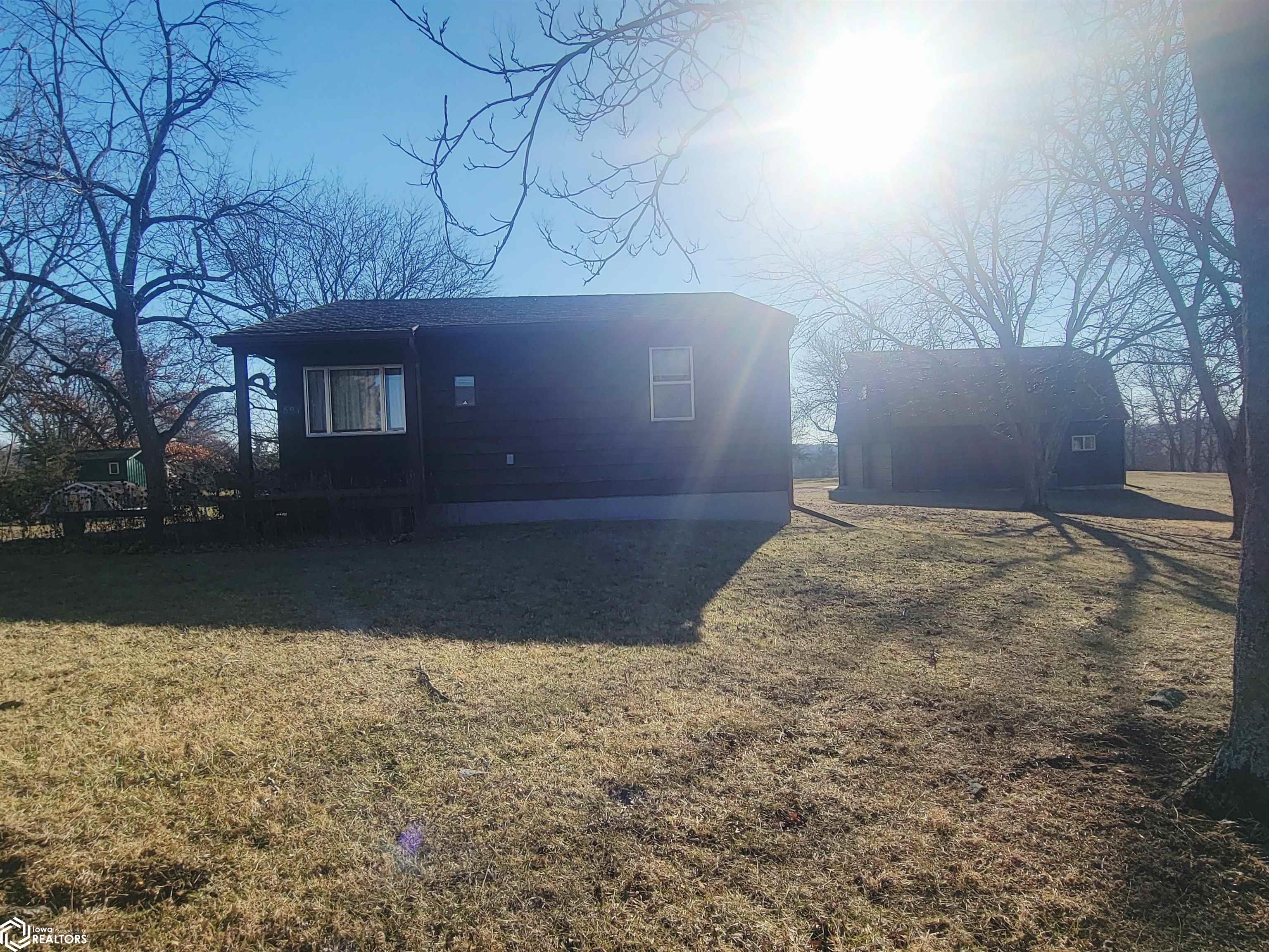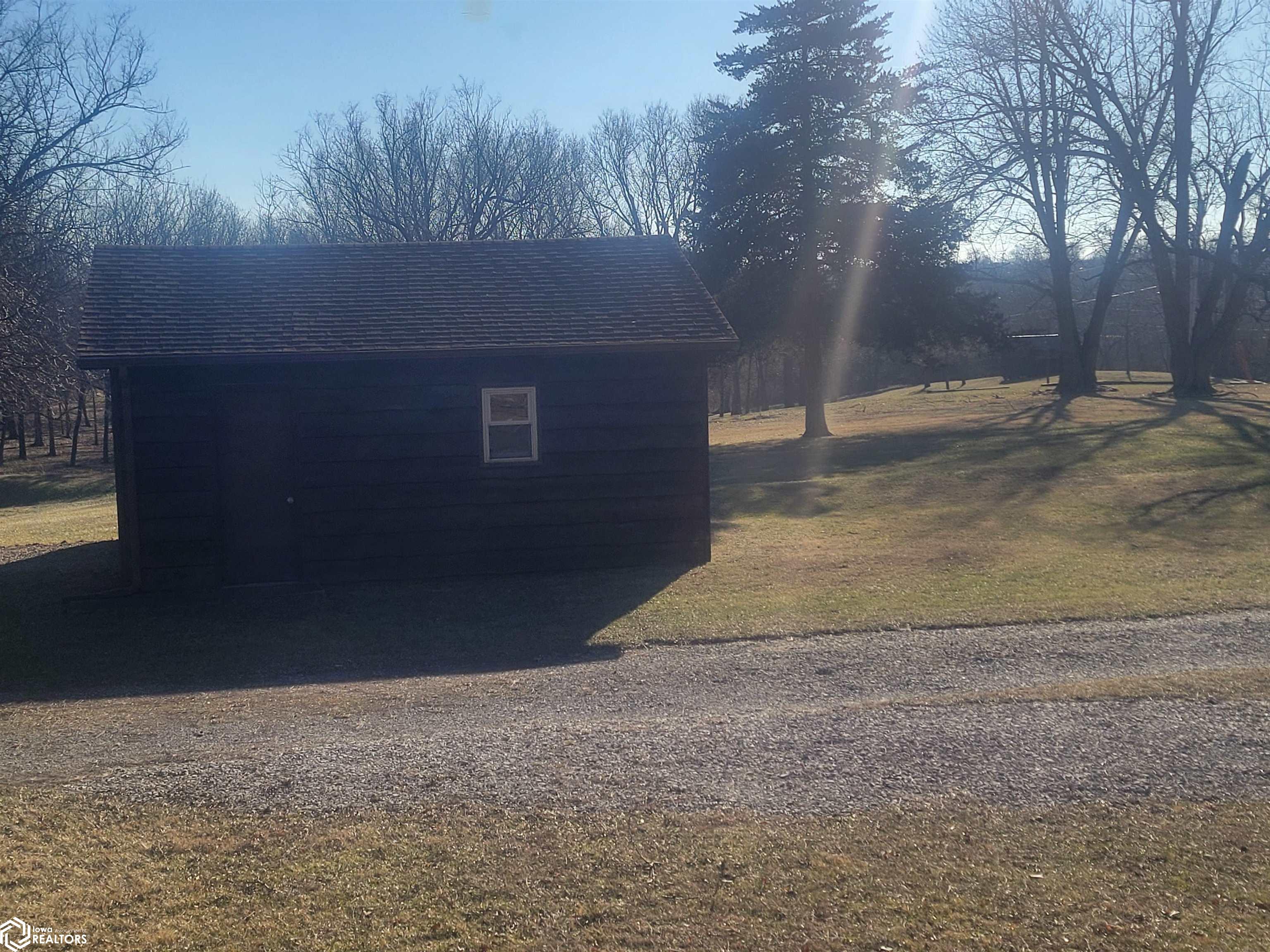 Your 2026 New Year's resolution of owning an acreage can be realized with this complete package of home, barn and seven acres of land which can be utilized for most any purpose. The park-like setting is your personal space but has close connections to Leon Golf & Country Club and Little River Recreation Area. At the edge of town, you'll appreciate city utilities and its close enough to amenities for utmost convenience. The rustic-feel, one level home, has original hardwood floors, metal roofing and wood siding which needs very little maintenance. Small spaces work whether you use it as your permanent residence or weekend getaway. The barn is home to additional garage spaces on ground level and finished flexible space in the attic/loft which has central heating and cooling. This space is so versatile you won't have any trouble finding uses. In addition, there's a detached garage for vehicle and other small sheds for lawn and garden. The owner has taken great care with this property for over 50 years and offers it to be another owners' desire for the great outdoors. There is railroad right of way which is owned and being conveyed which runs along the western edge and continues north/south for several hundred yards. As spring approaches, the trees will sprout their beauty and frequent wildlife will have a better haven for nurturing. The owner has planted several personal favorites which adds to the already awesome landscape! Its an opportunity seldom matched in southern Iowa!