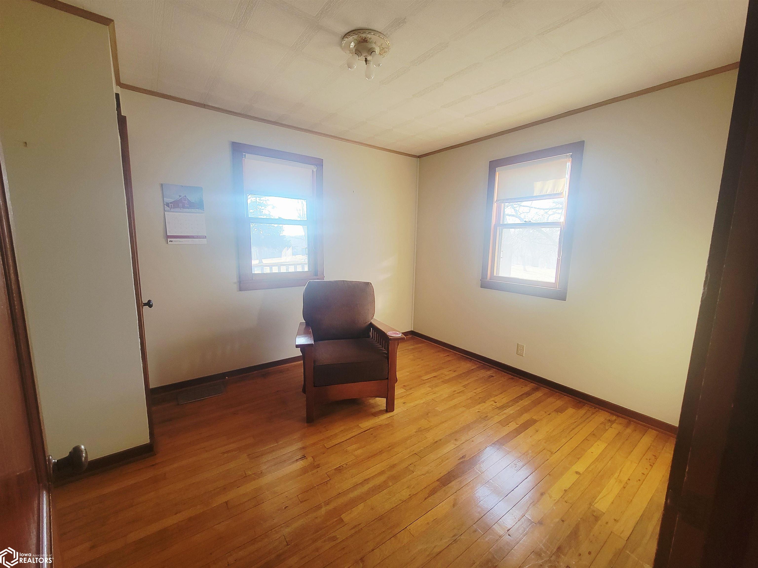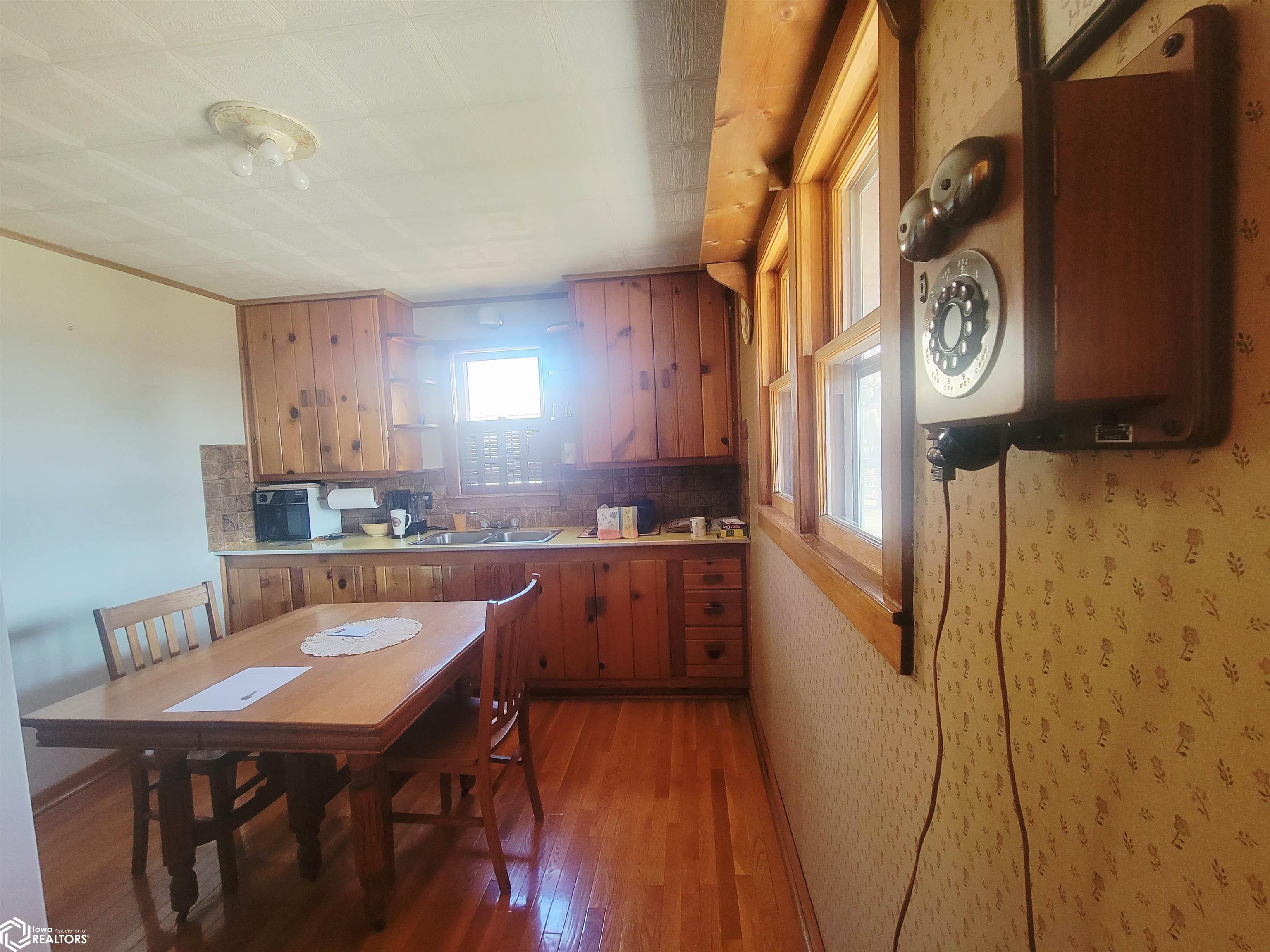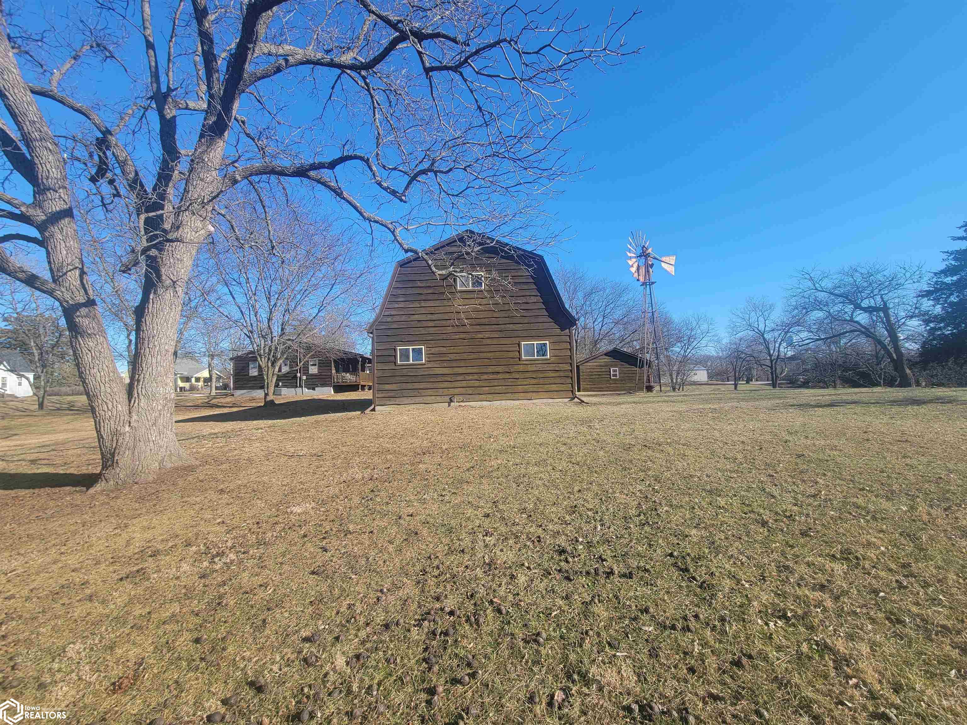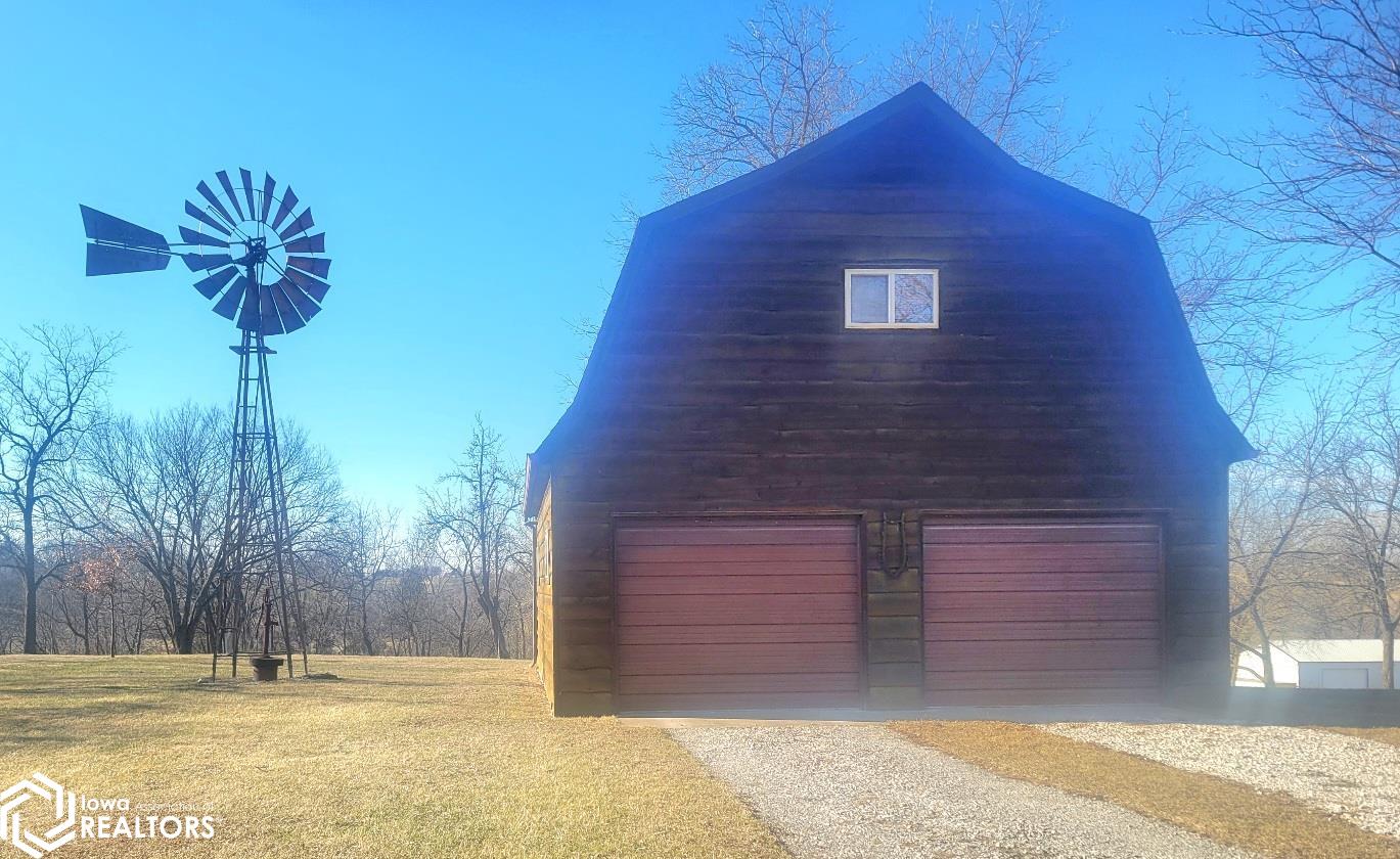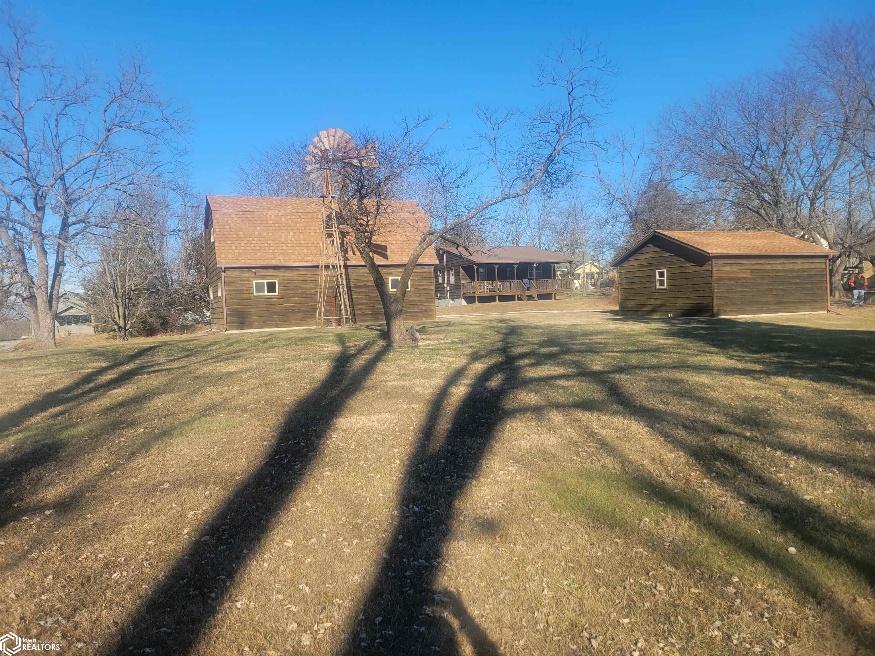 Your 2026 New Year's resolution of owning an acreage can be realized with this complete package of home, barn and seven acres of land which can be utilized for most any purpose. The park-like setting is your personal space but has close connections to Leon Golf & Country Club and Little River Recreation Area. At the edge of town, you'll appreciate city utilities and its close enough to amenities for utmost convenience. The rustic-feel, one level home, has original hardwood floors, metal roofing and wood siding which needs very little maintenance. Small spaces work whether you use it as your permanent residence or weekend getaway. The barn is home to additional garage spaces on ground level and finished flexible space in the attic/loft which has central heating and cooling. This space is so versatile you won't have any trouble finding uses. In addition, there's a detached garage for vehicle and other small sheds for lawn and garden. The owner has taken great care with this property for over 50 years and offers it to be another owners' desire for the great outdoors. There is railroad right of way which is owned and being conveyed which runs along the western edge and continues north/south for several hundred yards. As spring approaches, the trees will sprout their beauty and frequent wildlife will have a better haven for nurturing. The owner has planted several personal favorites which adds to the already awesome landscape! Its an opportunity seldom matched in southern Iowa!