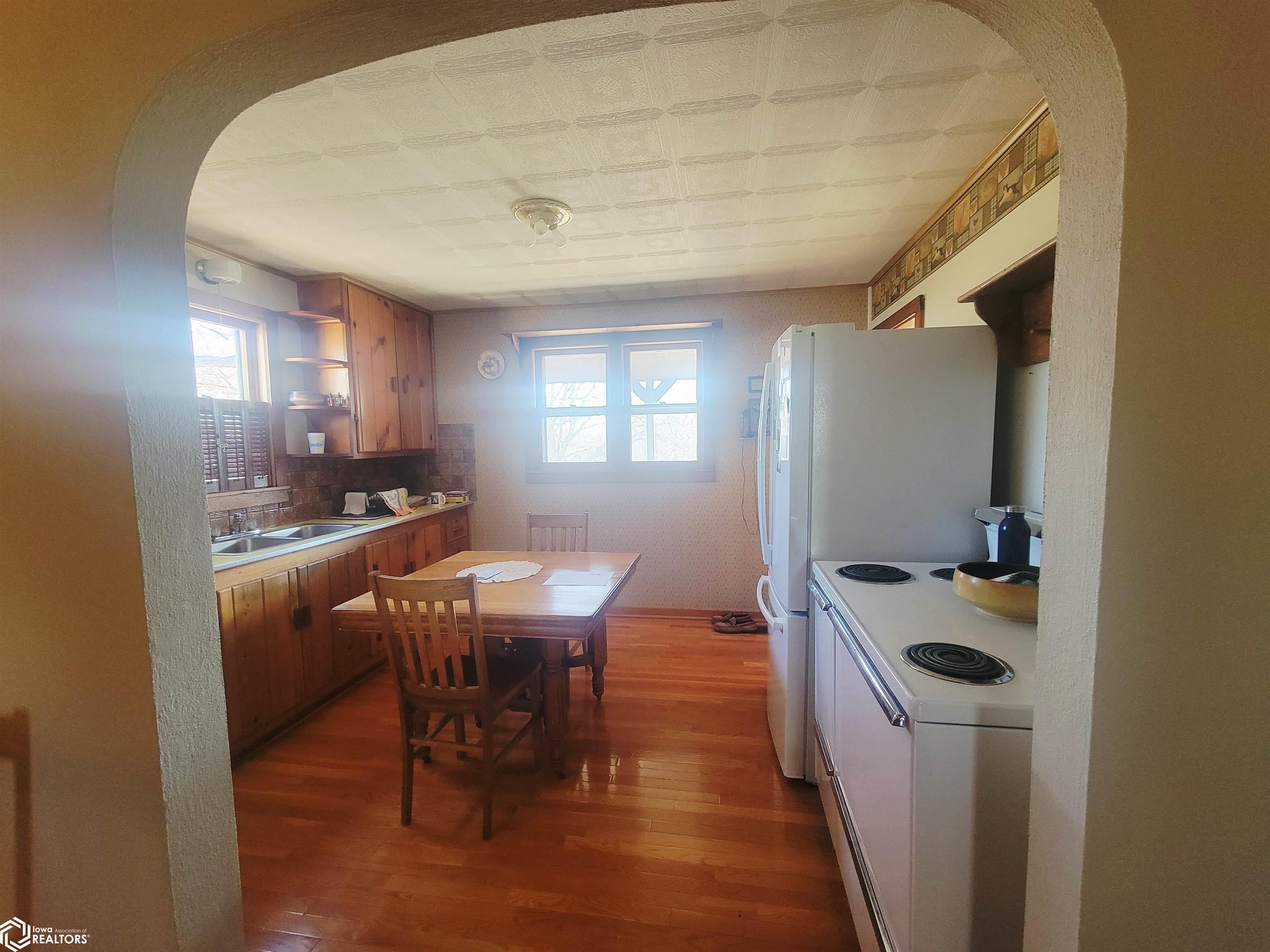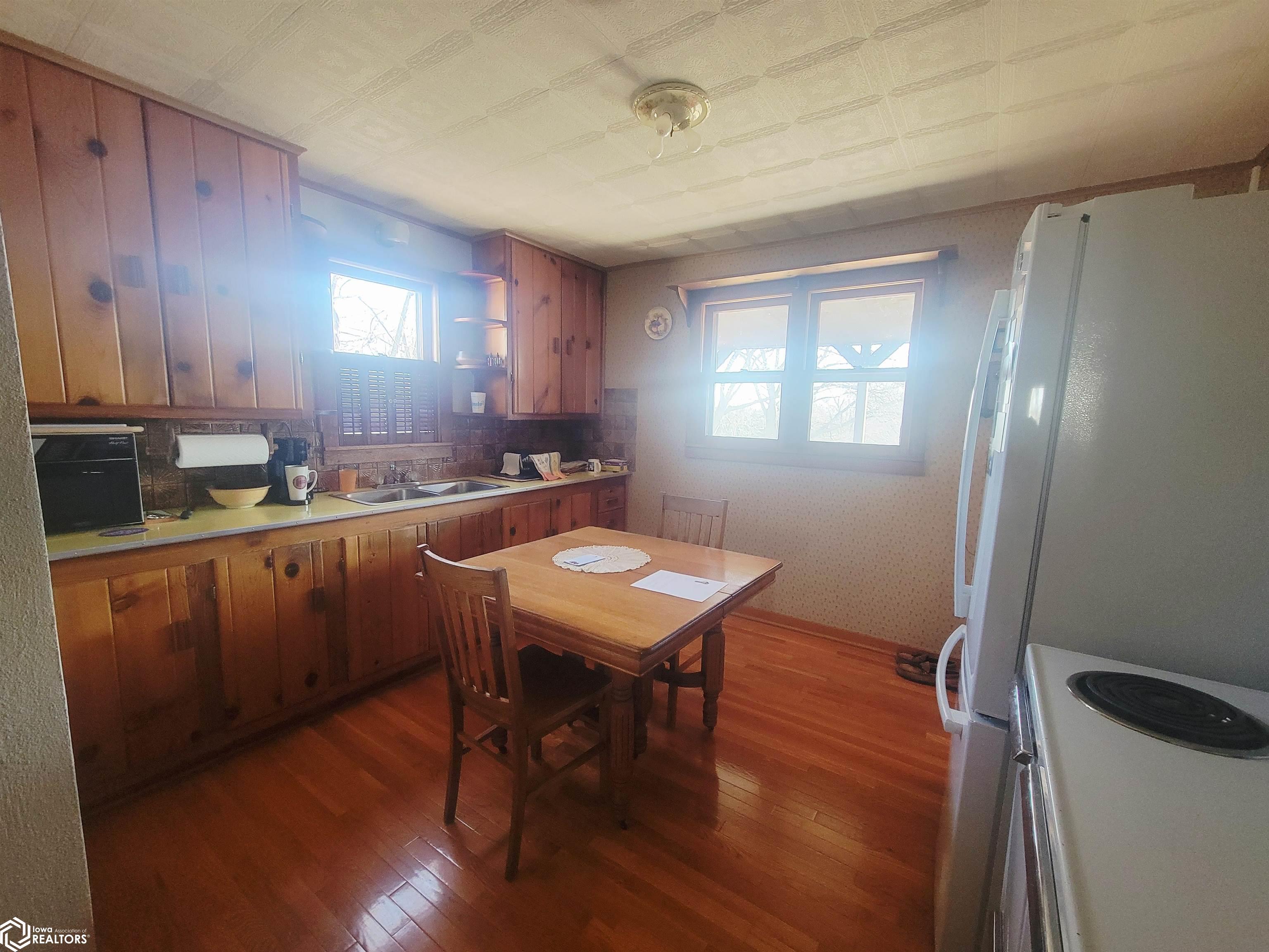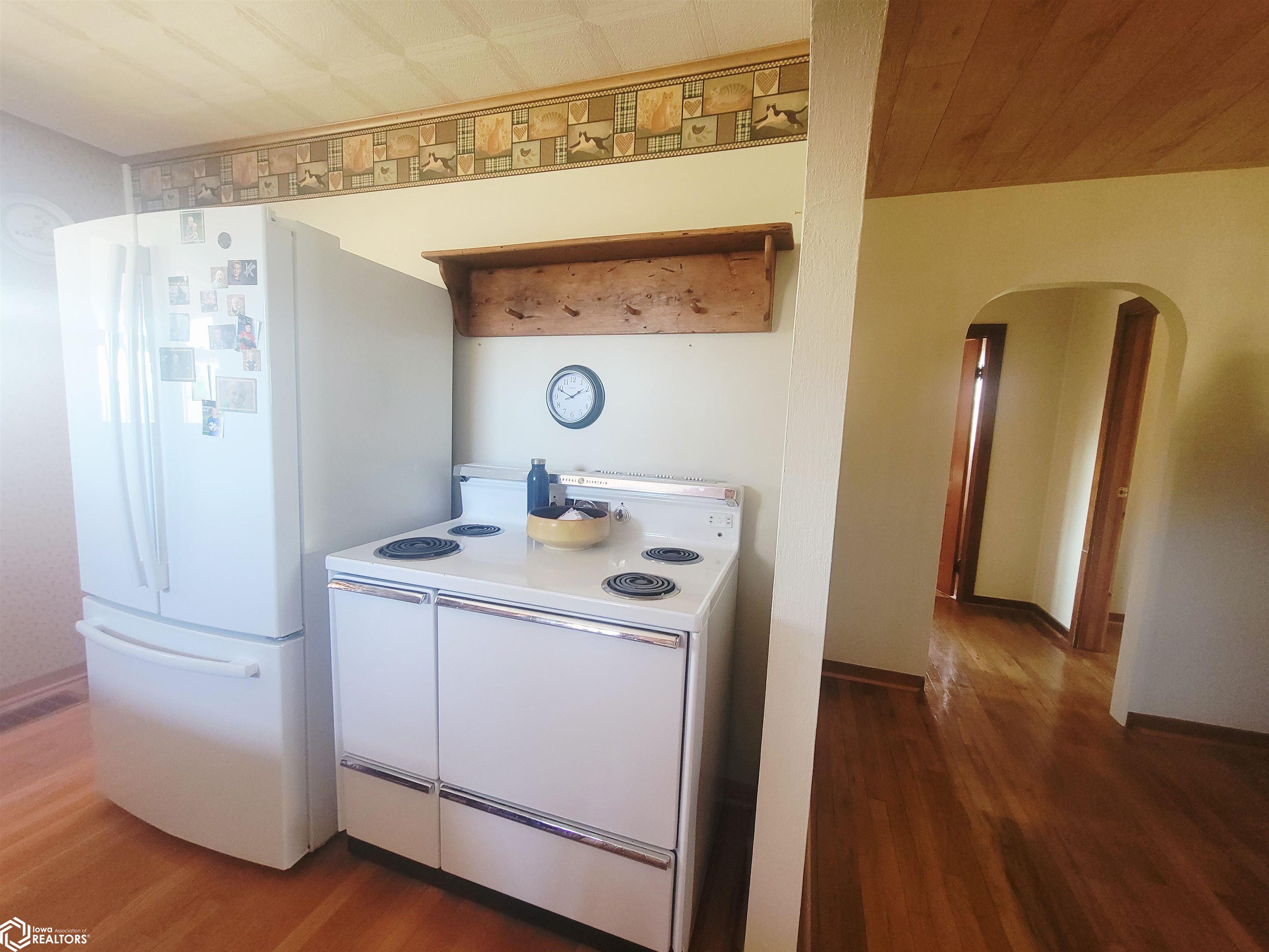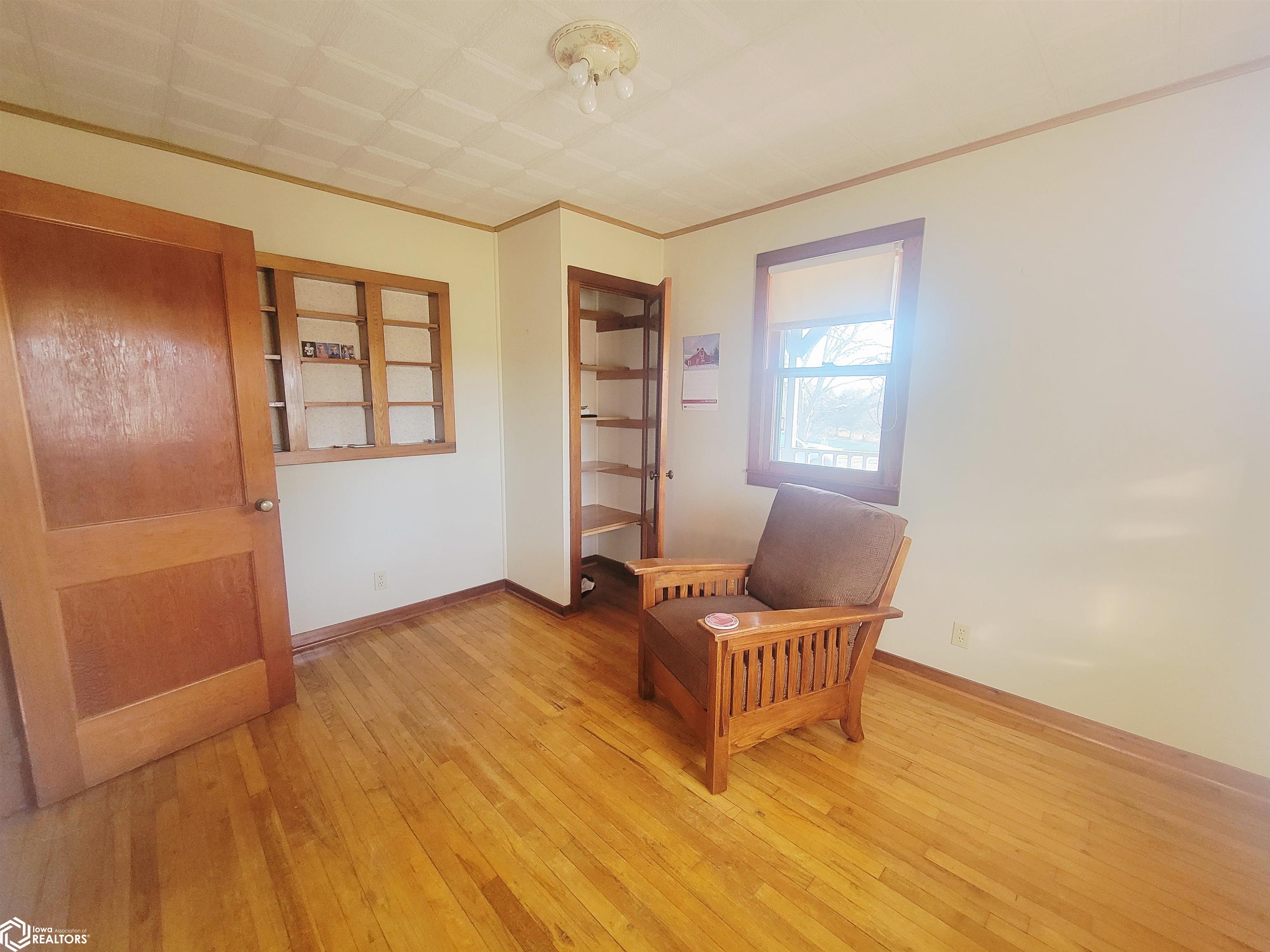 Your 2026 New Year's resolution of owning an acreage can be realized with this complete package of home, barn and seven acres of land which can be utilized for most any purpose. The park-like setting is your personal space but has close connections to Leon Golf & Country Club and Little River Recreation Area. At the edge of town, you'll appreciate city utilities and its close enough to amenities for utmost convenience. The rustic-feel, one level home, has original hardwood floors, metal roofing and wood siding which needs very little maintenance. Small spaces work whether you use it as your permanent residence or weekend getaway. The barn is home to additional garage spaces on ground level and finished flexible space in the attic/loft which has central heating and cooling. This space is so versatile you won't have any trouble finding uses. In addition, there's a detached garage for vehicle and other small sheds for lawn and garden. The owner has taken great care with this property for over 50 years and offers it to be another owners' desire for the great outdoors. There is railroad right of way which is owned and being conveyed which runs along the western edge and continues north/south for several hundred yards. As spring approaches, the trees will sprout their beauty and frequent wildlife will have a better haven for nurturing. The owner has planted several personal favorites which adds to the already awesome landscape! Its an opportunity seldom matched in southern Iowa!