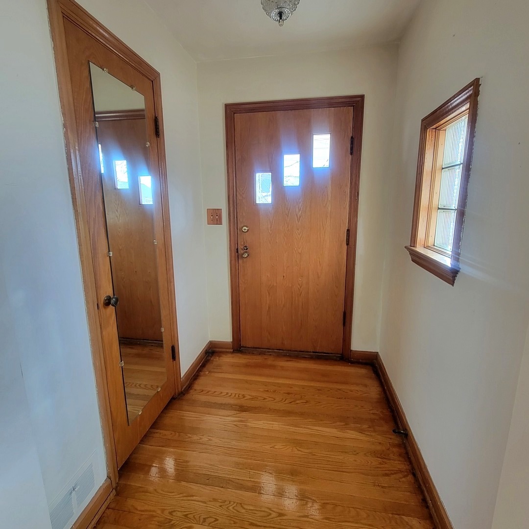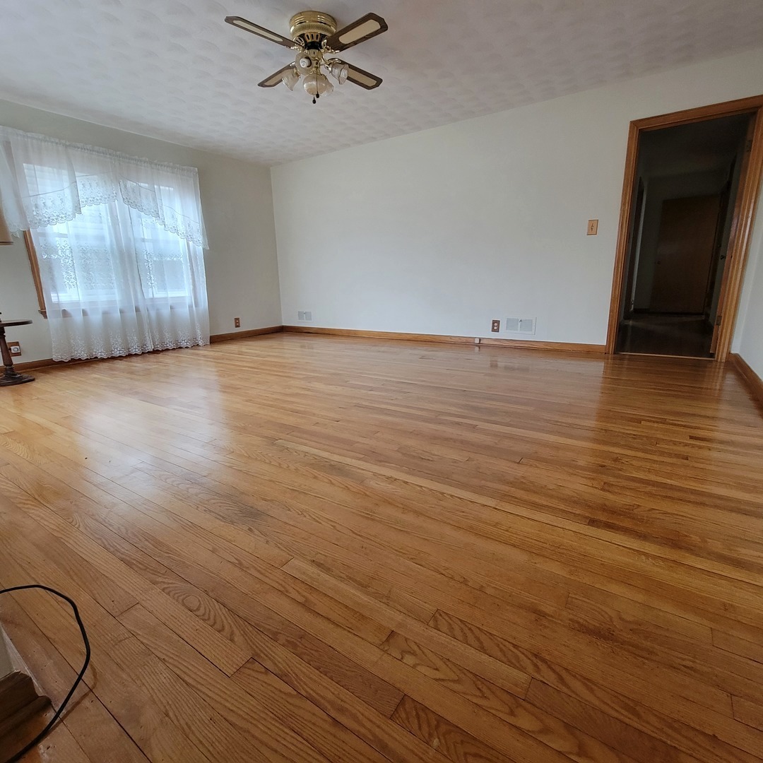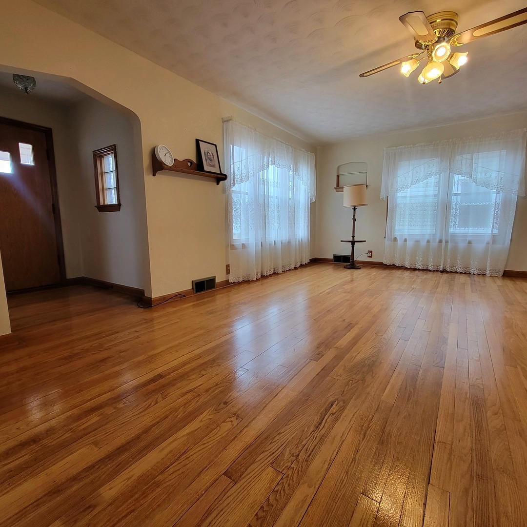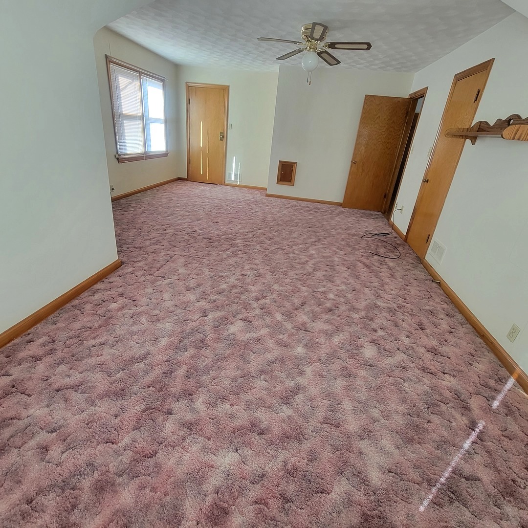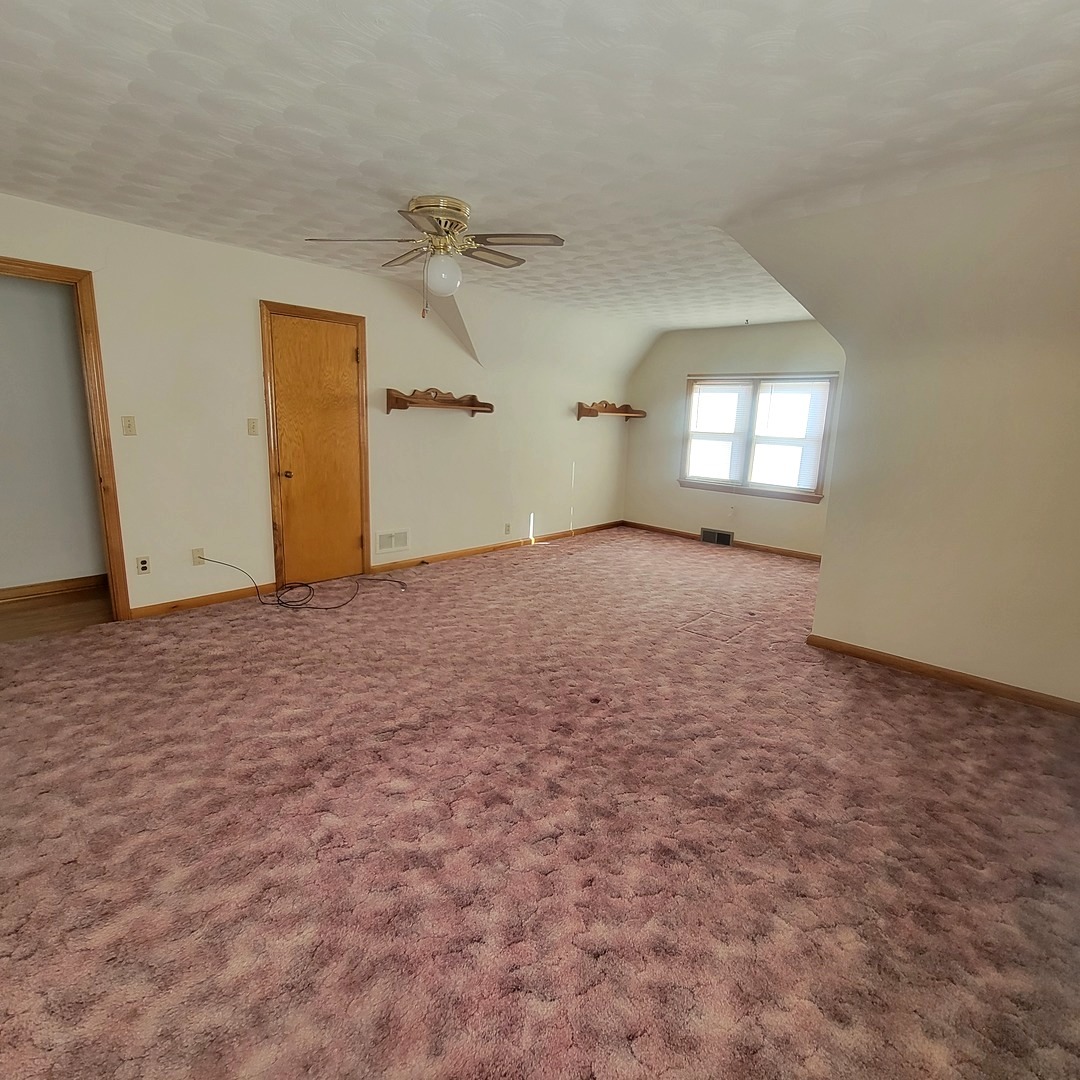 Charming, Well-Maintained Brick Home with Spacious Living Areas. Move right into this beautifully maintained brick home filled with character and timeless charm. Original hardwood floors, detailed woodwork, and classic built-ins create warmth and style throughout. The main level offers a spacious living room and dining area that flows seamlessly into the kitchen, complete with ample cabinetry, generous counter space, and a convenient built-in breakfast bar. Also on the first floor you'll find a full bath with walk-in shower, a comfortable bedroom, and main-floor laundry for added convenience. Upstairs features two additional bedrooms, a half bath, and an expansive walk-in storage area. The large primary bedroom includes two closets, with hardwood flooring preserved beneath the carpet. The partially finished basement expands your living space with a family room, additional bath, office space, and a dedicated workshop complete with shelving and workbench - perfect for hobbies or projects plus an unfinished area perfect for that future rec room or play area. Outside, enjoy a large yard in a quiet rural community. The two-car garage includes extra storage above and an oversized garage door to accommodate larger vehicles. Conveniently located near the local school and downtown, this home offers small-town charm with everyday practicality. Schedule your showing today and see all this home has to offer!