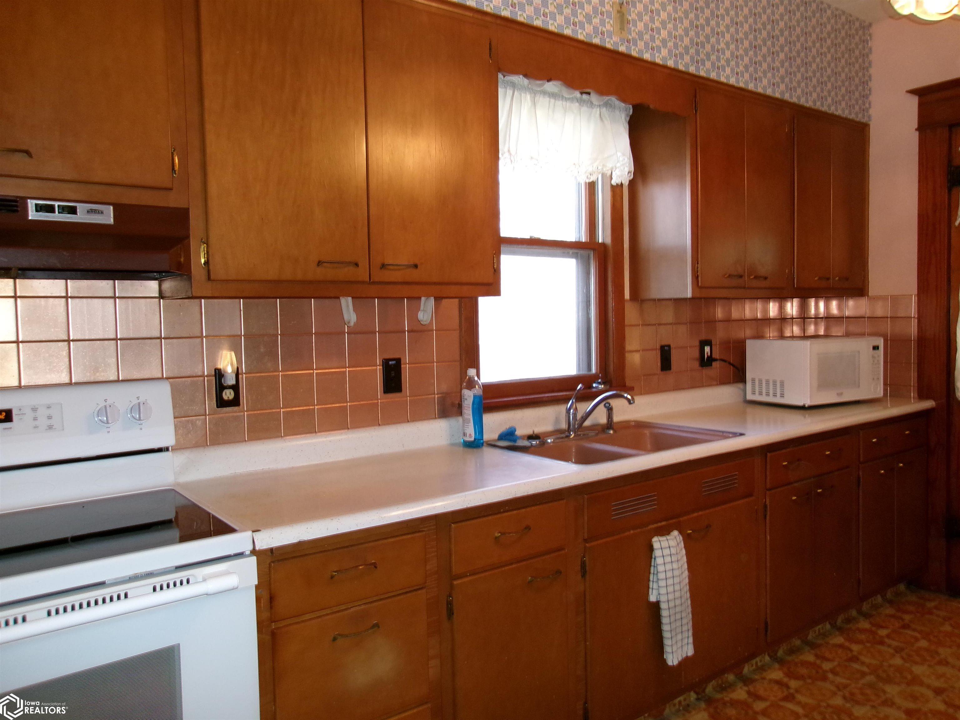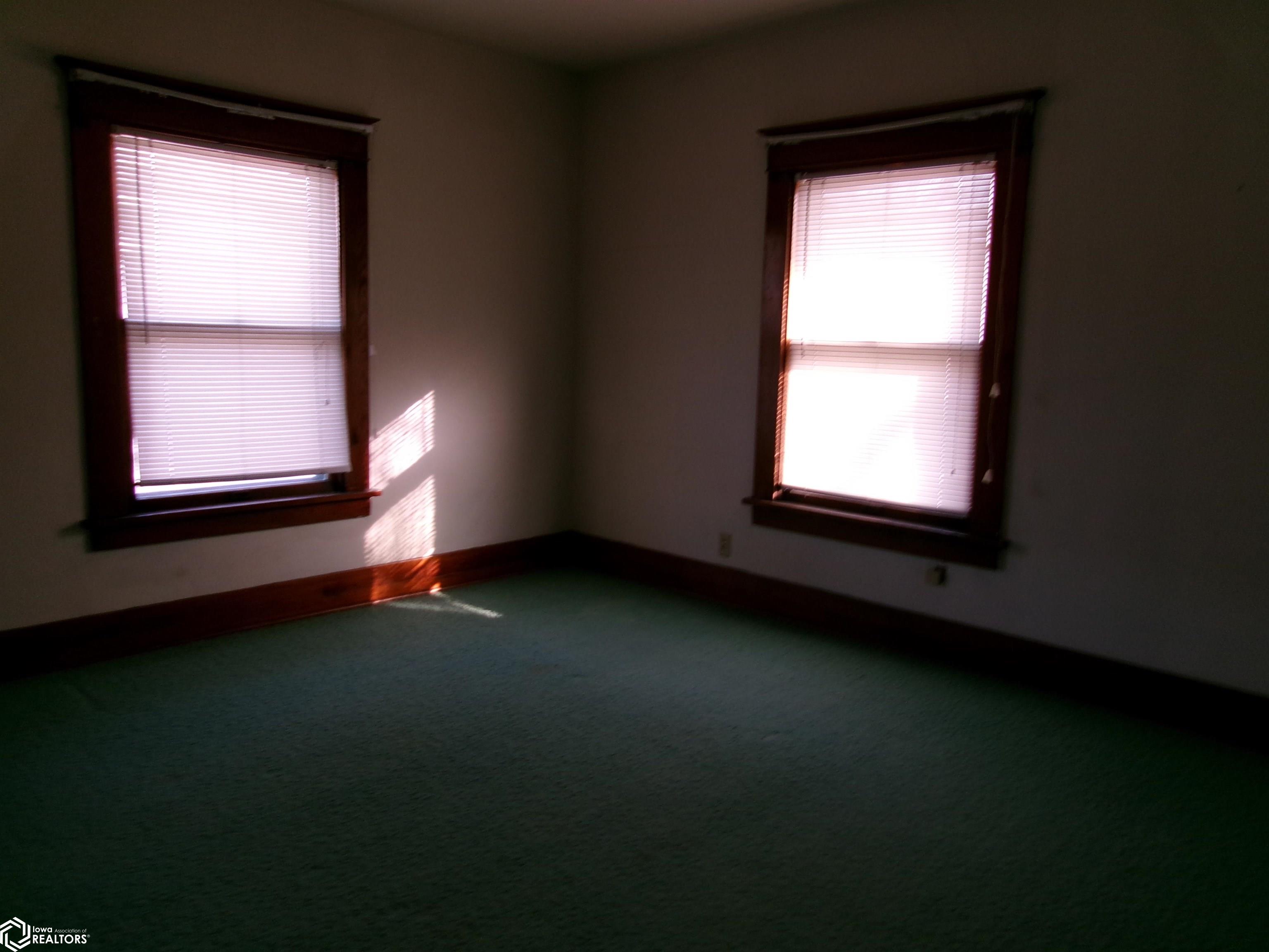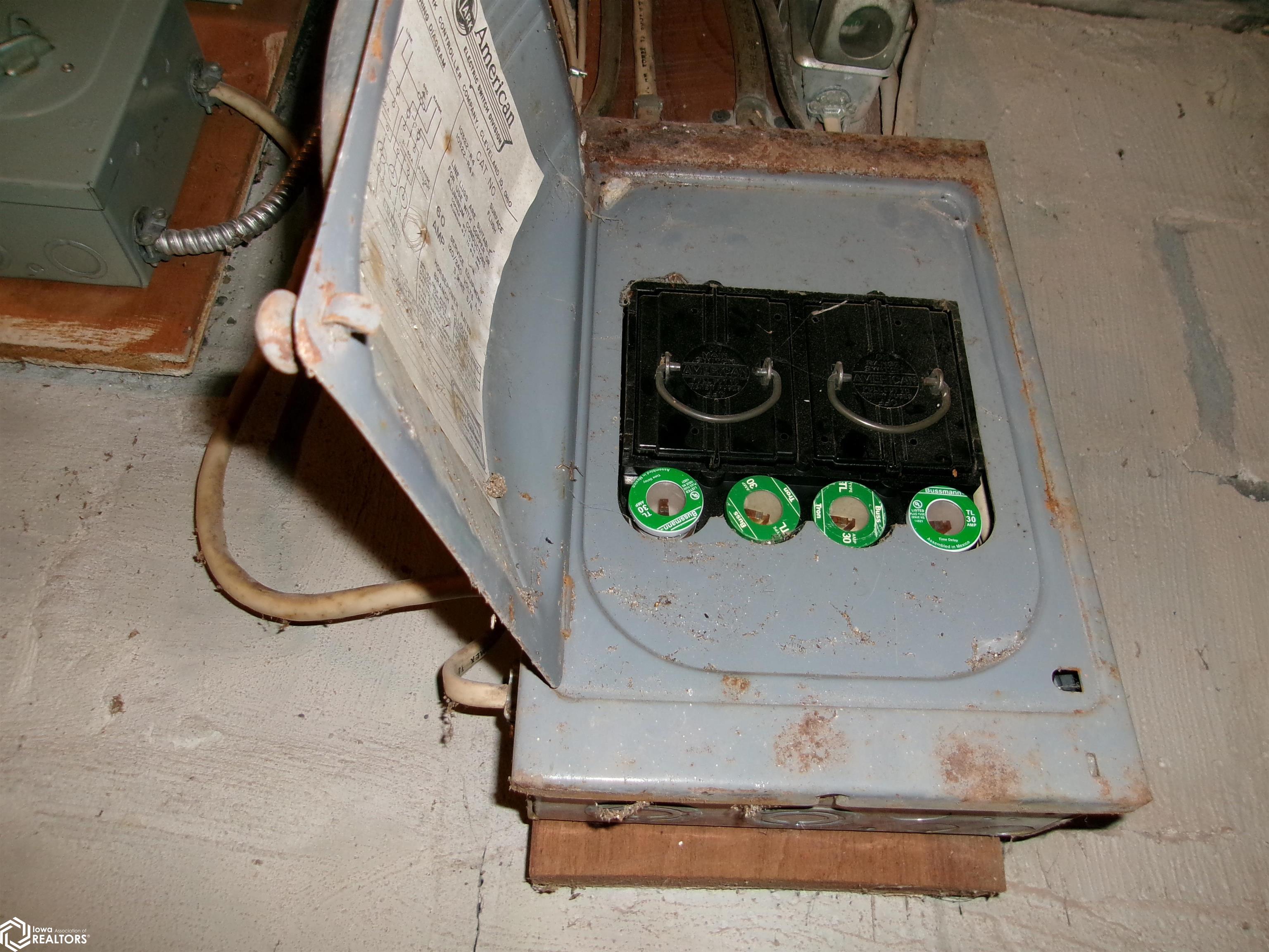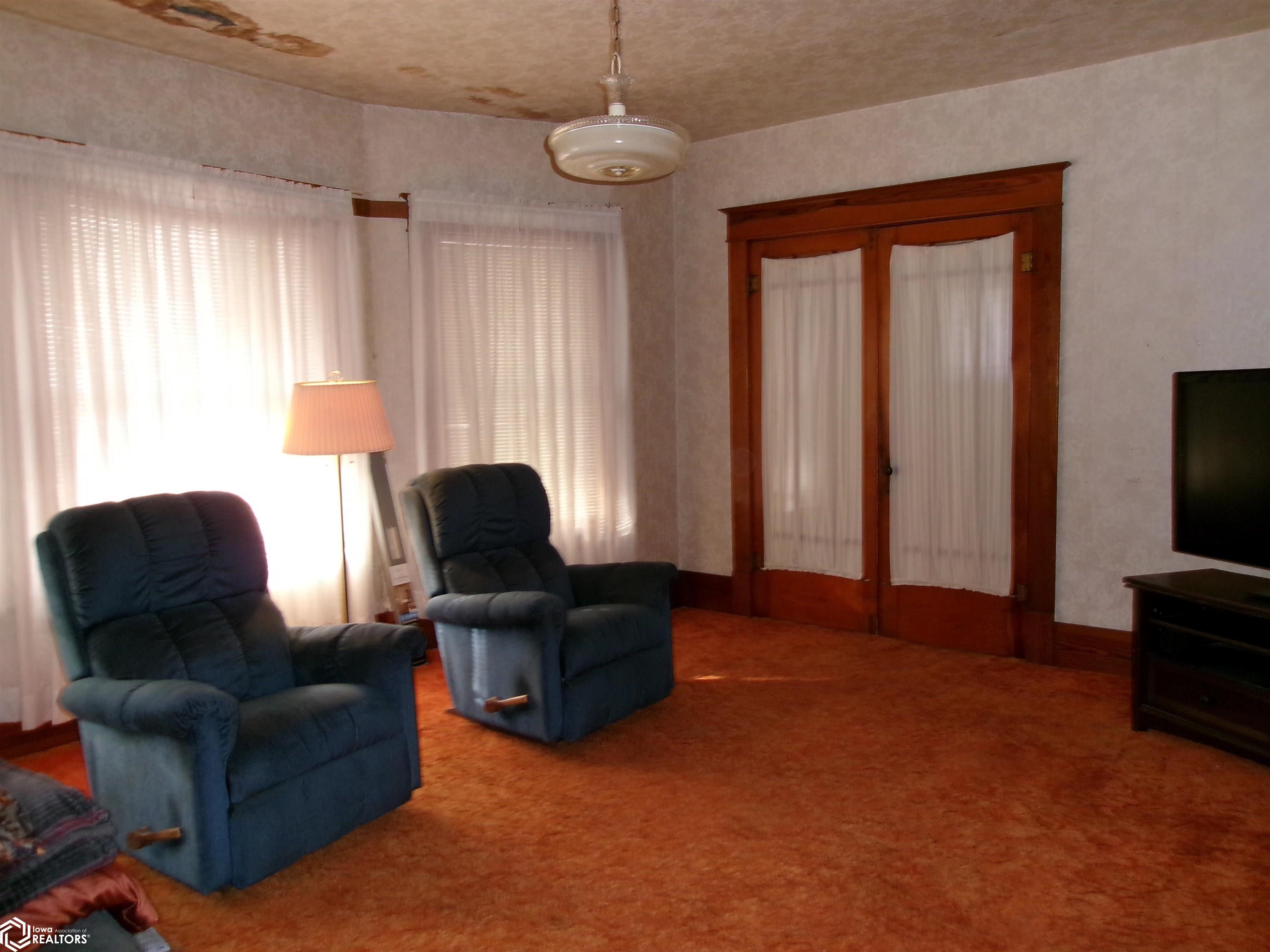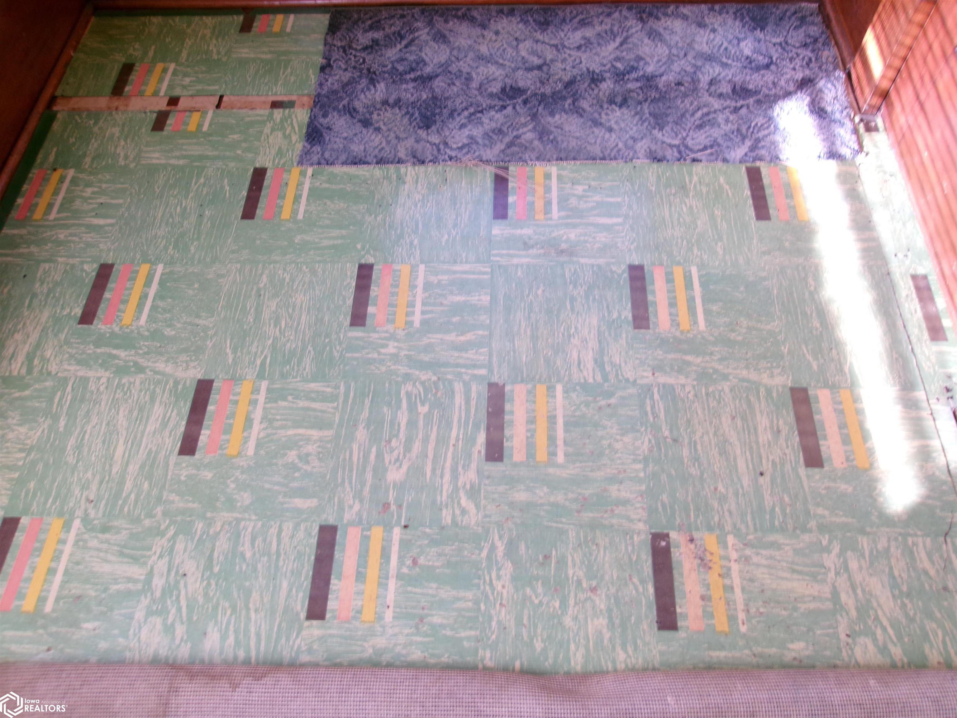 Sturdy 4 square home with a full width open front porch. Separate entry way with open stair case. Hardwood under old carpet throughout. All the wood trim is in excellent condition. Kitchen has had some renovations. Room for a small kitchen table. Between living and dining room are bookcase dividers with glass on the dining room side. Also a window seat in dining room. 1 main floor bedroom and 3/4 tub bath. 4 upstairs bedrooms with hardwood under carpets. Upstairs bath is missing the sink. Hallway features unusual 4 ft. wide linen closet with shelves and drawers. Garage is accessed through the basement. Newer Rheem furnace. 1 wall has been redone. Enclosed back porch only accessed from inside is great storage or pantry.