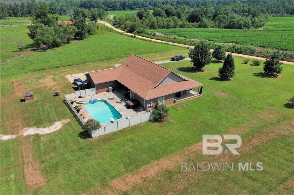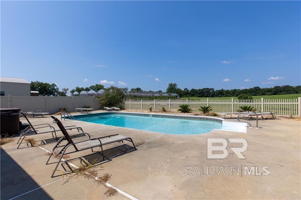 Welcome to this rare opportunity to purchase a one of kind large active farm in Florala. Plenty of room to entertain or get away. Bring your green thumb for gardening and enjoy the quite rural life. Beautiful custom home, built in 2006, sits on 40+/- acres and features a great floor plan. Almost 2800 sq ft 3 bedroom, 3 bath home with split floor plan. Features an open concept design. With a gourmet kitchen complete with a Jenn Aire 48-inch gas cooktop with griddle, double convection wall ovens and large pantry, with view of the living room and dining. Nice stone fireplace and bonus bar/entertainment room just off the saltwater pool and patio. Plenty of room for a cookout and entertain large crowds. Bar area features plenty of sitting area, ice machine, and beverage refrigerator. New roof in 2023. Farm features six 20,000 sq ft green houses with water hook ups for fertilizing as well. Plenty of room to grow a huge garden and bring some cows or horses. Land is relatively flat. As if that wasn't enough, this listing also features a huge workshop that houses a kitchen, bath and living quarters, laundry. Barn has a large roll up door for RV and boat storage and tons of work bench space and storage. Also attached is a lean too for tractor and mower storage. Too many extras to mention! Come see this one before its gone! Buyer and Buyers agent to confirm square footage and all info deemed important. Home and additional structures are all SOLD AS IS. Additional 38 Plus/minus acres available (Separate MLS number address is 0 Eason Rd) contains 4 chicken houses Broilers in production until recently 40 x 500 feet long and a 2 bed one 1 bath adjoining. Buyer to verify all information during due diligence.