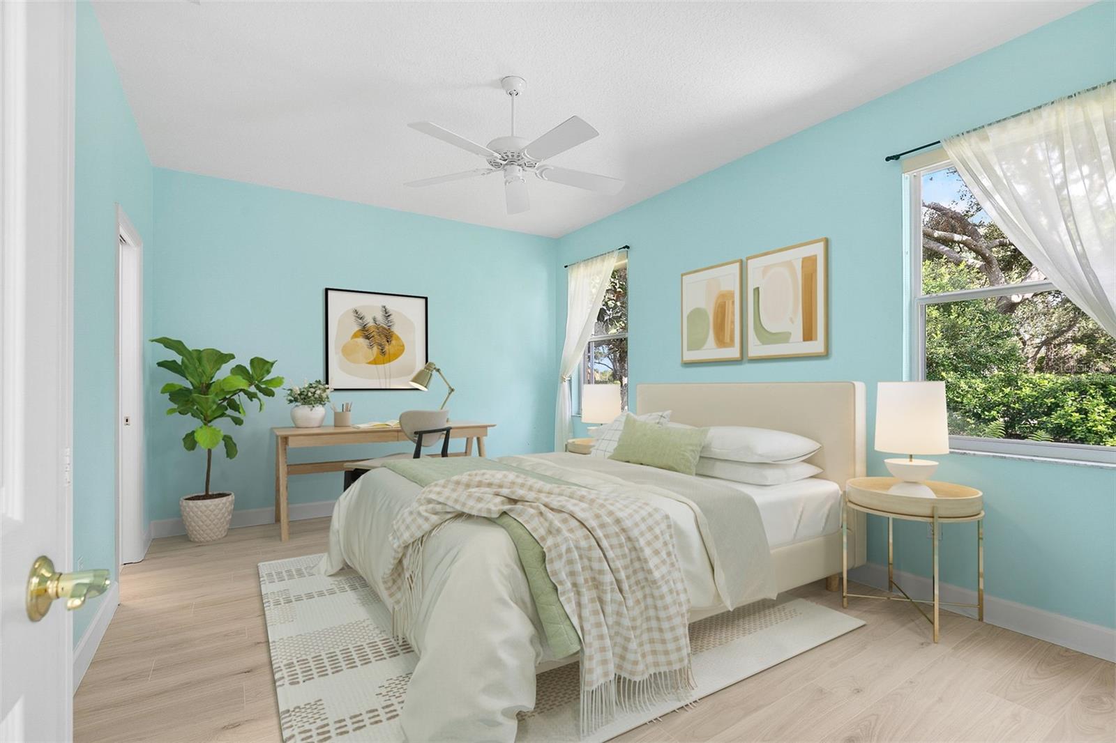 PRICE IMPROVEMENT!! The Cottages of Rivendell are highly desirable residences, offering an exclusive community with only 84 homes. Each home is surrounded by lush landscaping and tree-lined streets, contributing to the area's charm and appeal. This home features 2 bedrooms and 2 bathrooms, as well as a versatile den or office space. It is an ideal choice for those seeking a seasonal residence in Florida, or for anyone looking to downsize without sacrificing comfort or style. Residents enjoy the best of the Florida lifestyle, with close proximity to beautiful beaches-just 2 stoplights away. Additionally, the community is near parks, arts venues, shopping, and restaurants, making it perfect for both active living and peaceful retreat. This home has been thoughtfully updated with new porcelain "wood-look" tile throughout most of the living space, a renovated guest bathroom featuring a walk-in shower, fresh interior paint, and a new roof installed in 2021. The neighborhood is located in one of Sarasota County's top school districts, with Pine View School just a few minutes away. Just a short walk up the street, the community clubhouse offers a generously sized pool, perfect for swimming and social gatherings. Whether you're seeking tranquil relaxation or active outdoor adventures, this exceptional property and community provide the perfect balance.Notice- Some photos of the property have been Virtually Staged.