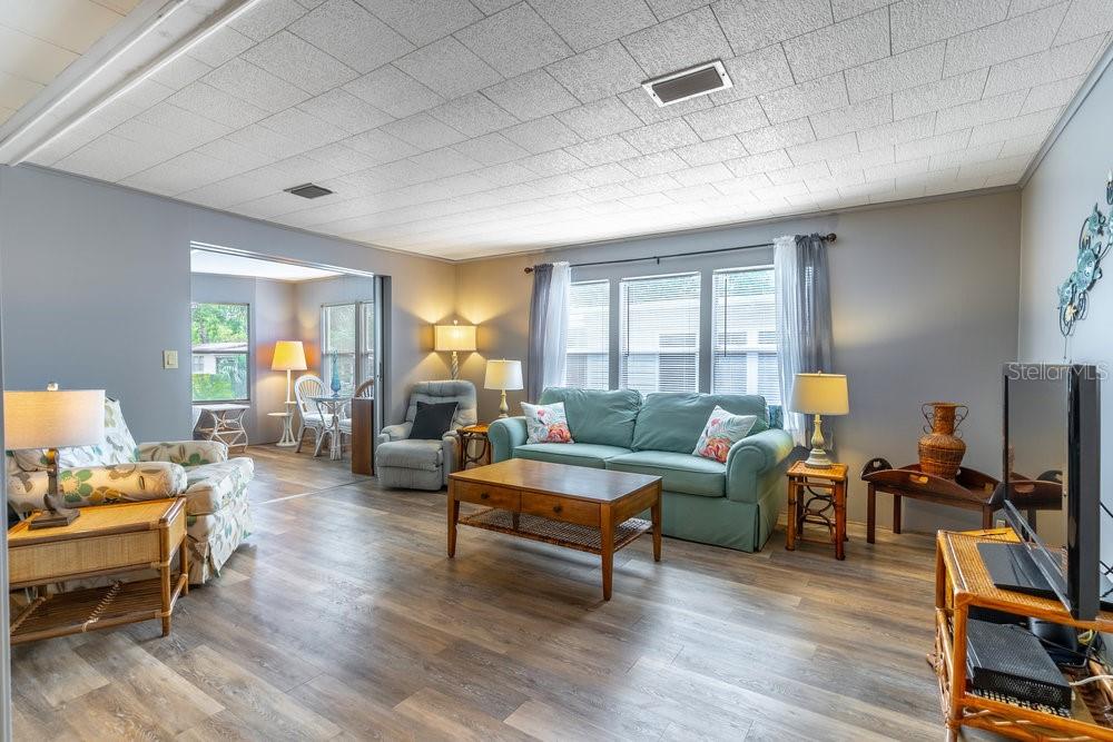 Welcome home to this beautifully maintained 2-bedroom, 2-bath residence located in The Forest, a highly sought-after **55+ community in the heart of Lake Mary. This inviting home offers a comfortable and functional floor plan with vinyl plank flooring throughout, creating a clean, cohesive look thats easy to maintain. The spacious living room flows seamlessly into a Florida room that can be closed off with sliding glass doorsperfect for additional living space, a hobby room, or entertaining guests. A charming screened-in front porch provides the ideal spot to enjoy morning coffee or evening breezes. Both bedrooms are generously sized. The primary suite features a large bathroom with a relaxing garden tub, while the oversized second bedroom includes a door leading directly to the backyardideal for pet owners. The fully fenced backyard offers privacy and convenience, making this home especially appealing for those with pets. This home is perfectly situated within the community, offering a wonderful balance of privacy and easy access to amenities. The Forest is known for its lush landscaping, mature trees, and strong sense of community, making it easy to meet neighbors and stay socially connectedall while being centrally located near shopping, dining, and major roadways. Residents enjoy an impressive array of amenities, including a stunning two-story clubhouse with architectural charm reminiscent of Frank Lloyd Wright design, featuring floor-to-ceiling windows, warm wood ceilings, a large stage, and an attached kitchen. The clubhouse hosts monthly social events and is also available for resident rental for private gatherings. Outdoor amenities are equally impressive with two swimming poolsone heated year-round and the other Olympic-sizesurrounded by resort-style lounging areas, palm trees, and a hot tub. Additional features include ample parking behind the clubhouse and golf-cart-friendly living throughout the community. A separate gathering building offers even more amenities, including a large club room, billiard room, poker room, library, craft room, resident laundry facilities, and mens and womens locker rooms with saunas and showers. Community mailboxes are centrally located, and expansive green spaces around the clubhouse add to the serene, park-like setting. There are tennis courts, pickleball courts and several shuffleboard courts. This is more than just a homeits a lifestyle. If youre looking for comfort, community, and a prime Lake Mary location, this one is a must-see.