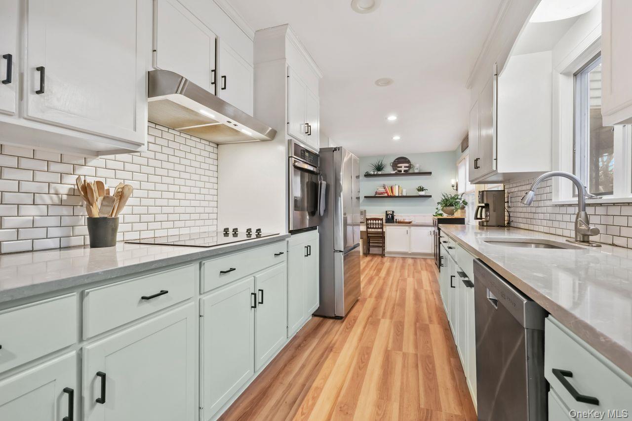 Welcome to this beautifully updated, one-level sprawling ranch that blends classic charm with modern comfort. Set on a level 1+ acre lot in a quiet neighborhood, this home offers 4 Bedrooms and 3 Full Bathrooms with 2,268 sq ft of one level living space! Inside, youll find a thoughtfully designed layout featuring a Cozy Living Room with wood burning fireplace, open to the Updated Galley Kitchen with coffee bar or work area and door to patio, the oversized yet charming dining room can accommodate the largest of gatherings. The fantastic living space continues into the Family Room with wet bar, beverage fridge and sliders to patio. The unique layout of this home offers 2 primary suites. One is conveniently located next to the 3rd and 4th bedrooms while the other is off the family room making it ideal for extended family, guests, or a private secondary living space. All bathrooms have been tastefully updated, offering fresh finishes and timeless appeal. This home is filled with charming details and has been nicely updated throughout, making it move-in ready. Ample storage in the walk up attic, 2 sheds, and the two-car heated garage! Stepping outside you will enjoy the Amazing Fully fenced Yard with flag stone patio, gardens and beautiful perennials! Great for relaxation or entertaining. Perfectly located close to the train, major highways, schools, and shopping, this home offers the best of quiet suburban living with easy access to everything you need. A rare opportunity to enjoy space, flexibility, and comfort all on one levelthis home is truly a must-see.