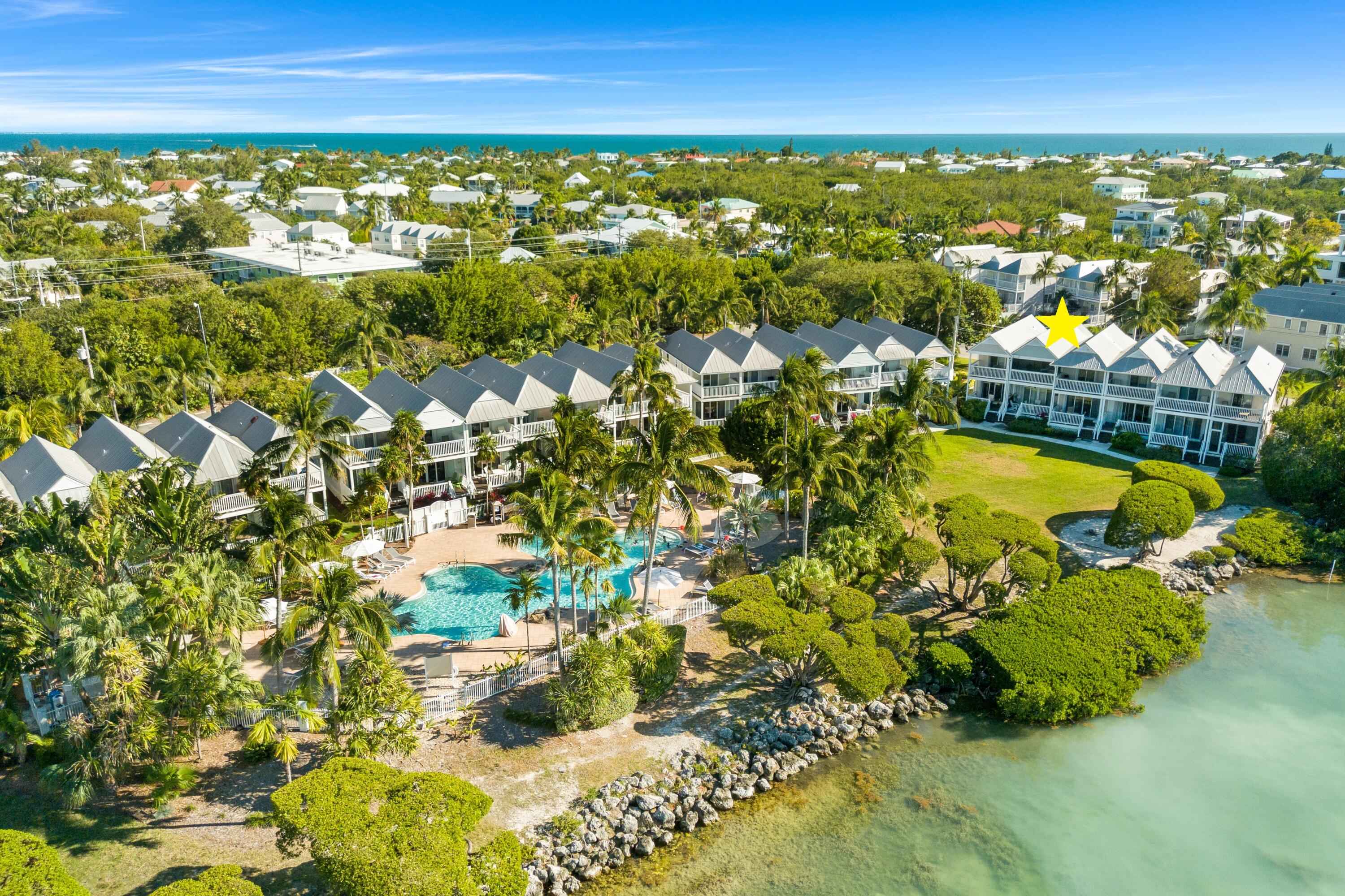 Live the Florida Keys Lifestyle in Sunset Village! This unique 2-bedroom, 2.5-bath townhouse offers something you don't see often, ocean views from both the front and the back of the villa. Whether you're enjoying your morning coffee or winding down at sunset, the water is always part of the view. Located just steps from the ocean and the Sunset Pool, the home sits in a quiet, private corner of Sunset Village, making it ideal for both relaxation and family fun. A small beach area directly across the street is perfect for swimming, paddleboarding, kayaking, and all water activities the whole family can enjoy. Sunset Village is a great spot for kids and guests of all ages, with the pool right out the back door, open green spaces, walkable paths and endless opportunities to explore the island life. Inside, the villa features stainless steel appliances, granite countertops, impact sliding glass doors, a convenient lower-level half bath, and a screened second-level porch which makes a great place to sit back, unwind and enjoy ocean breezes. The property has been very lightly used as a second home and shows beautifully, but it also offers excellent flexibility. Daily rentals are allowed, making it easy to convert into a resort rental or private vacation rental when you're not using it. Whether you're looking for a family getaway, a Keys lifestyle home, or a property with strong rental potential, this one truly checks all the boxes. Priced to sell and ready to be enjoyed. All offers are welcome!Note that all new owners have the opportunity to enroll into the resort rental program which will allow access to enjoy all 61 acres of the exceptional resort amenities, including a freshwater sandy beach lagoon, a full-service marina, 5 food and beverage outlets, tennis and pickleball courts, a luxurious spa, a children's park, multiple pools and an endless array of watersports right at your doorstep. Yes, you can actually live like you are on vacation!