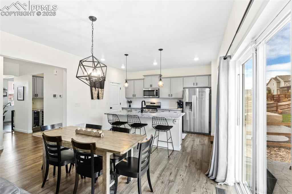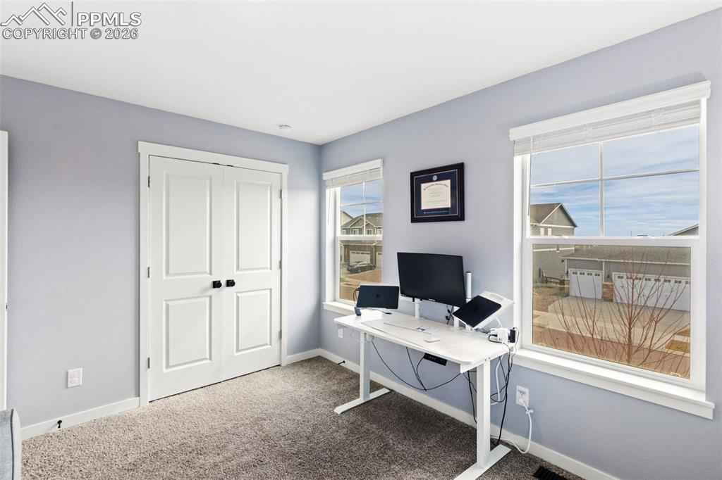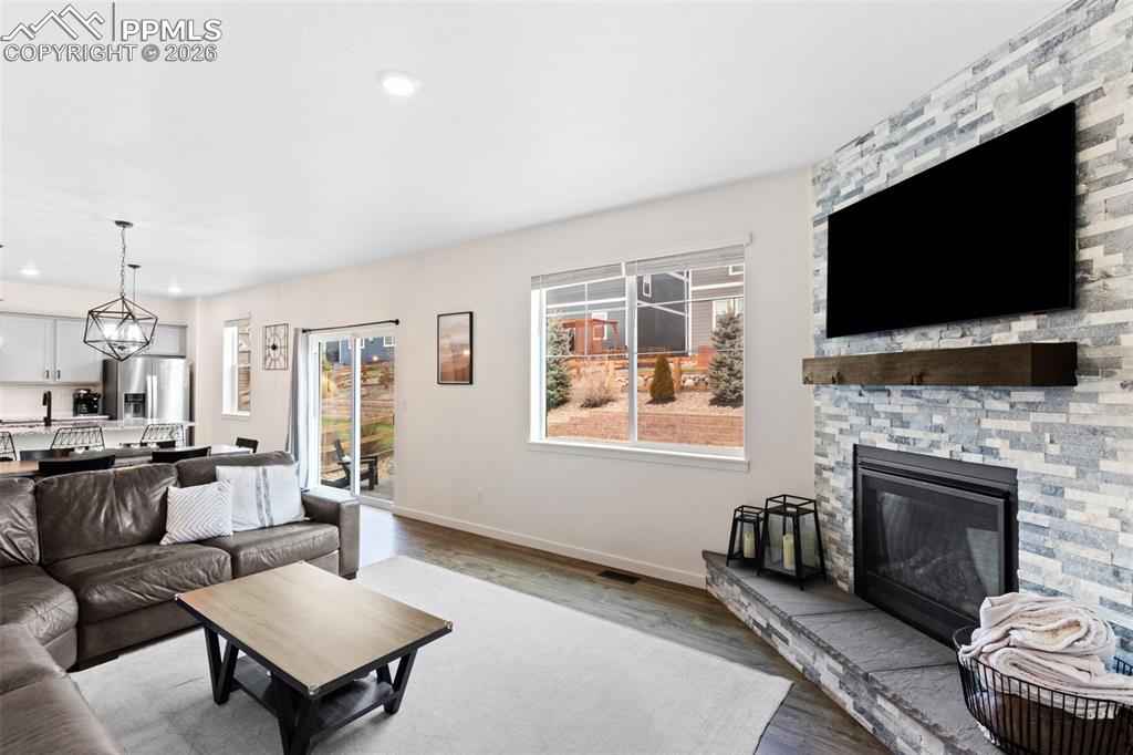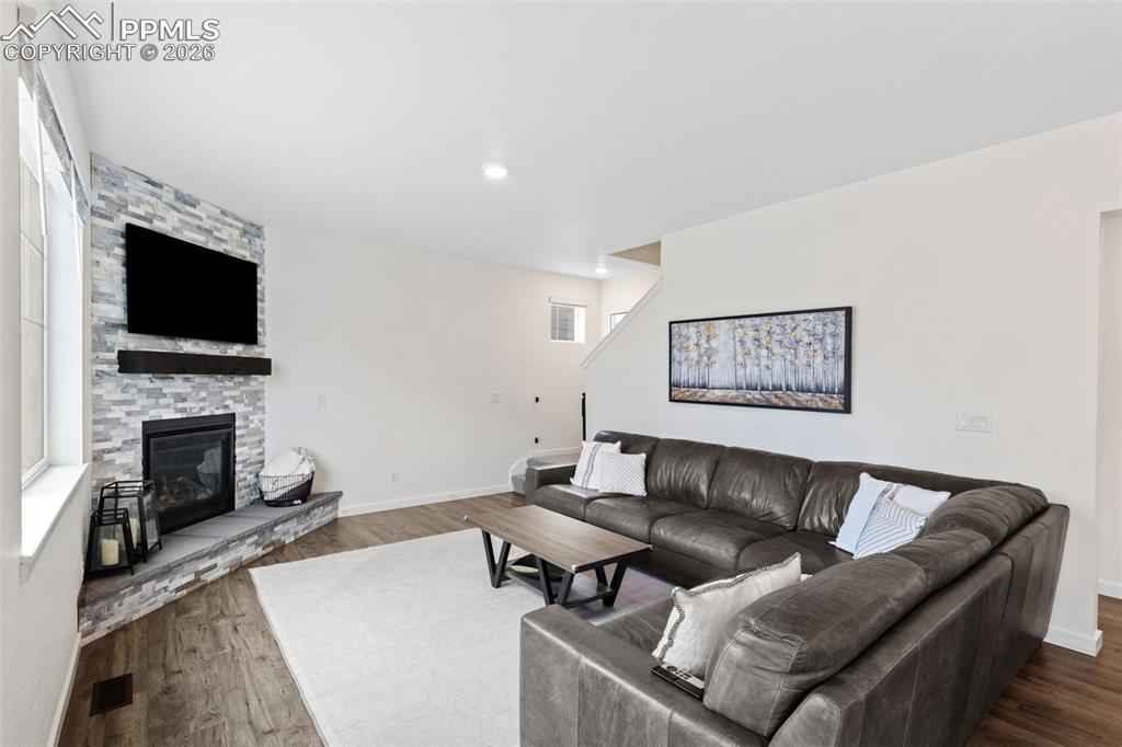 Beautiful move in ready home located in the quiet Bradley Ranch community in award winning school district 20! Perched above the city by Black Forest you will soon forget you are just minutes away from all that the north side has to offer from restaurants, to shopping, the gym, hospitals, schools and more. Upon entering the home you notice the luxury plank vinyl flooring through out as well as upgraded lighting, fixtures and door handles that have been changed over the standard builder grade offerings. The main level is open and ready to host with an upgraded kitchen with granite counters and stainless steel appliances as well as a large family room with a gas fireplace and custom rock surround. Another custom touch will be noticed when you walk by the perfect coffee/drink bar that was added to further increase the functionality of the main level space. Upstairs you have 3 total bedrooms and an oversized loft ready for even more creative ideas on how it can best be used! The primary bedroom is large and oversized with a generous walk in closet and attached upgraded bathroom. The finished basement has barely been used and is perfect for your guests or to be used as a teenagers haven featuring a family room, bedroom and 3/4 bathroom. Topping the basement off is a usable storage space for all your extra items and Christmas decorations! The custom feel continues in the garage with professionally epoxied floors and finished and painted walls. The backyard was professionally landscaped and ready to enjoy the Colorado weather with a huge stamped concrete patio and plenty of grass for your pets or to play ball! Extra comforts round the home out in the form of air conditioning for those hots days and a tank less water heater for endless warm showers! You won't want to miss your chance at securing this amazing home as your own!