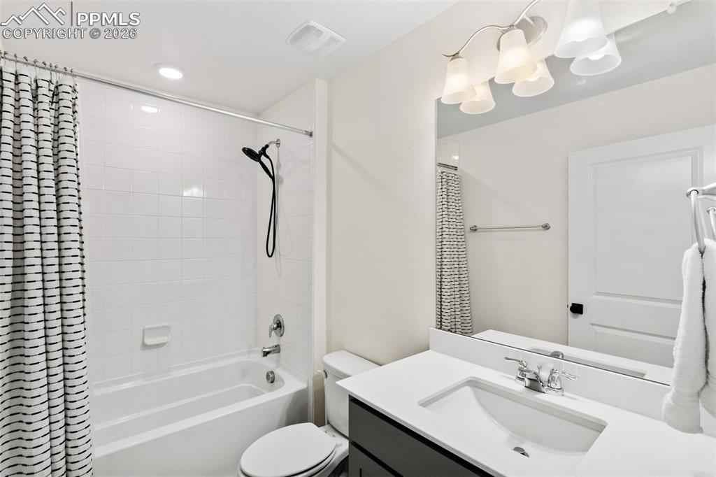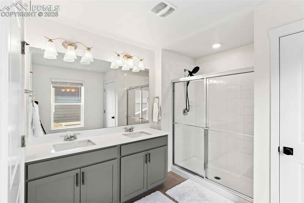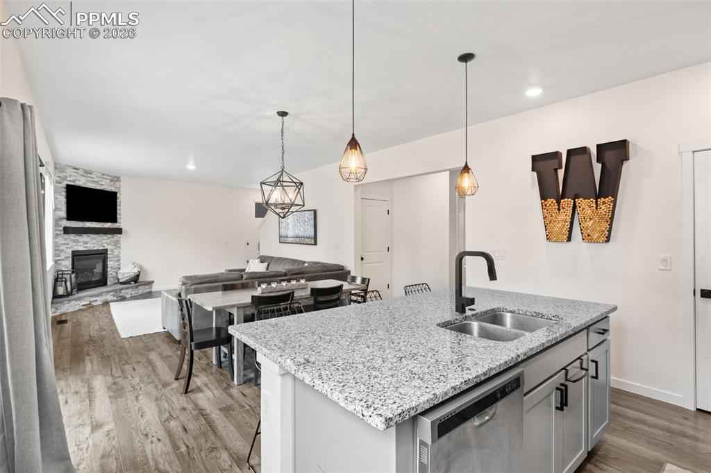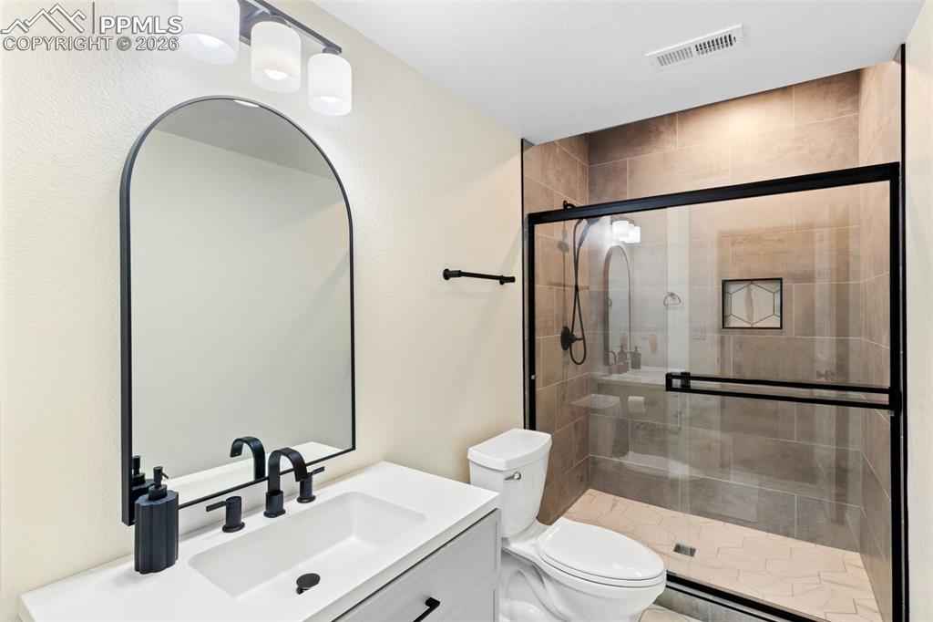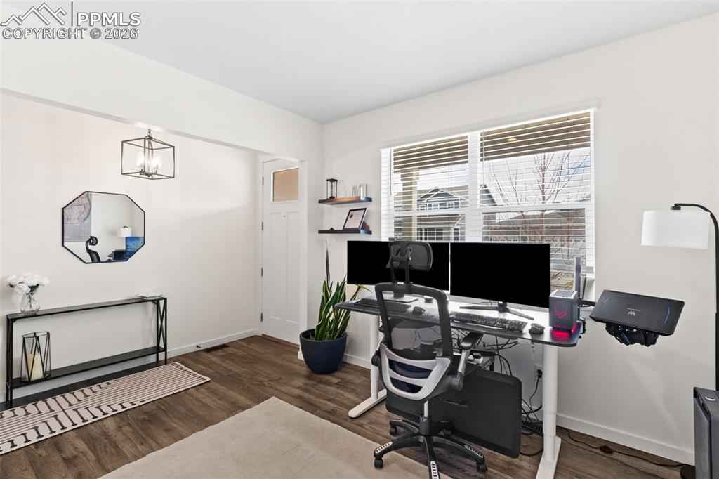 Beautiful move in ready home located in the quiet Bradley Ranch community in award winning school district 20! Perched above the city by Black Forest you will soon forget you are just minutes away from all that the north side has to offer from restaurants, to shopping, the gym, hospitals, schools and more. Upon entering the home you notice the luxury plank vinyl flooring through out as well as upgraded lighting, fixtures and door handles that have been changed over the standard builder grade offerings. The main level is open and ready to host with an upgraded kitchen with granite counters and stainless steel appliances as well as a large family room with a gas fireplace and custom rock surround. Another custom touch will be noticed when you walk by the perfect coffee/drink bar that was added to further increase the functionality of the main level space. Upstairs you have 3 total bedrooms and an oversized loft ready for even more creative ideas on how it can best be used! The primary bedroom is large and oversized with a generous walk in closet and attached upgraded bathroom. The finished basement has barely been used and is perfect for your guests or to be used as a teenagers haven featuring a family room, bedroom and 3/4 bathroom. Topping the basement off is a usable storage space for all your extra items and Christmas decorations! The custom feel continues in the garage with professionally epoxied floors and finished and painted walls. The backyard was professionally landscaped and ready to enjoy the Colorado weather with a huge stamped concrete patio and plenty of grass for your pets or to play ball! Extra comforts round the home out in the form of air conditioning for those hots days and a tank less water heater for endless warm showers! You won't want to miss your chance at securing this amazing home as your own!