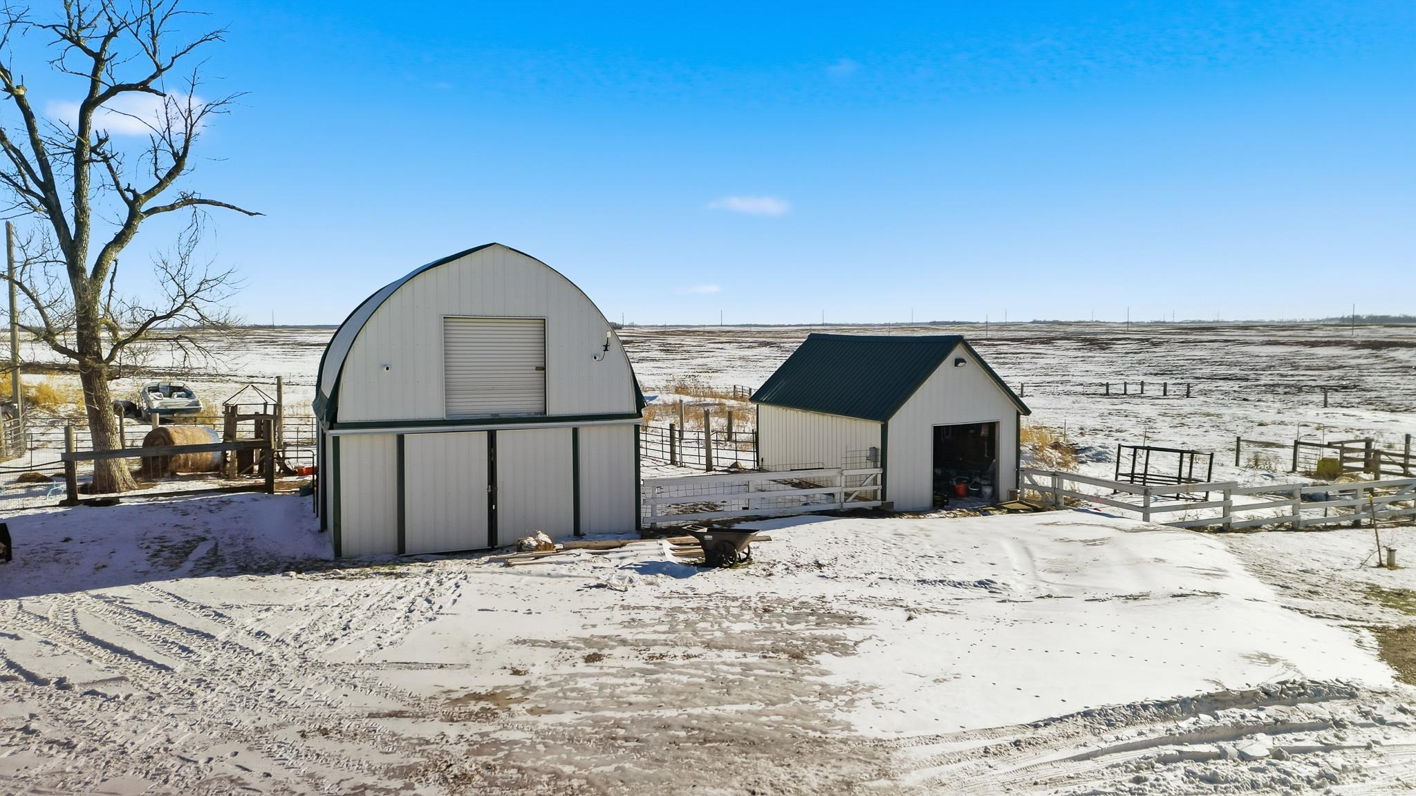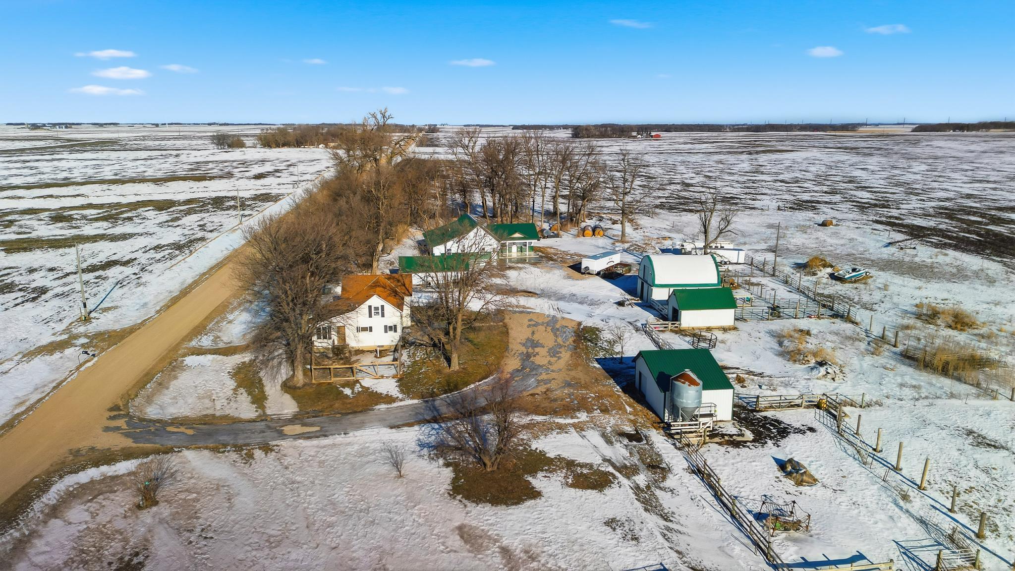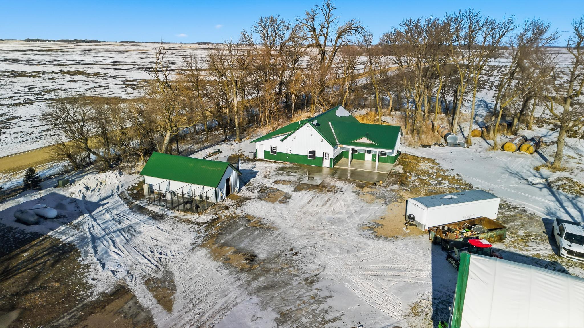 Rare opportunity: two separate homes on 4.99 acres with fenced pasture, multiple outbuildings, and full smart-home integration. NEWER HOME (3BR / 2.5BA)Modern, energy-efficient home featuring full in-floor heat, on-demand hot water, central A/C, and hard-surface flooring throughout (carpet only in the theater). Large 22' x 30' great room with 16' vaulted ceiling and spacious kitchen with seating for eight and new cabinetry. Primary suite includes a private covered patio (24' x 10' with epoxy floor) and tiled walk-in shower. Second-story theater updated in 2020. Property-wide URC Total Control smart-home system provides app, keypad, touchscreen, and voice-activated control of lighting, audio, and video. Additional features include whole-home audio, extensive camera coverage, and a 20KW Cummins standby generator.ORIGINAL HOME (3BR / 1BA)Move-in ready secondary residence or rental with updated furnace and A/C (2010), roof (2008), and shared well.PROPERTY & OUTBUILDINGS4.99 acres with full perimeter fencing and pasture areas, two heated automatic livestock waterers, multiple outbuildings with Wi-Fi and camera access, and a heated dog-kennel building with indoor runs. New septic system installed in 2013. Smart-home network extends across the entire property for remote control and monitoring.