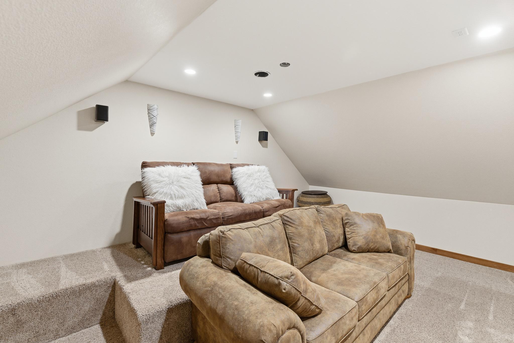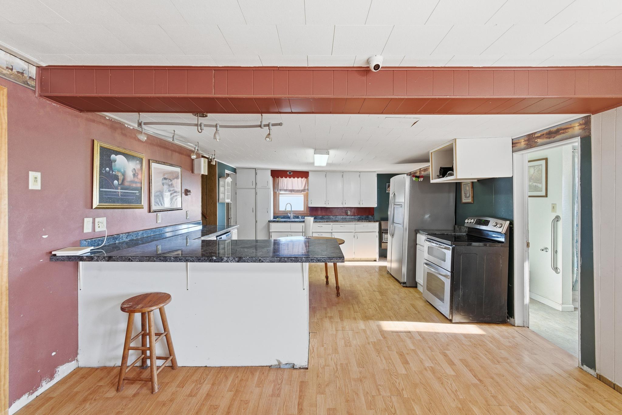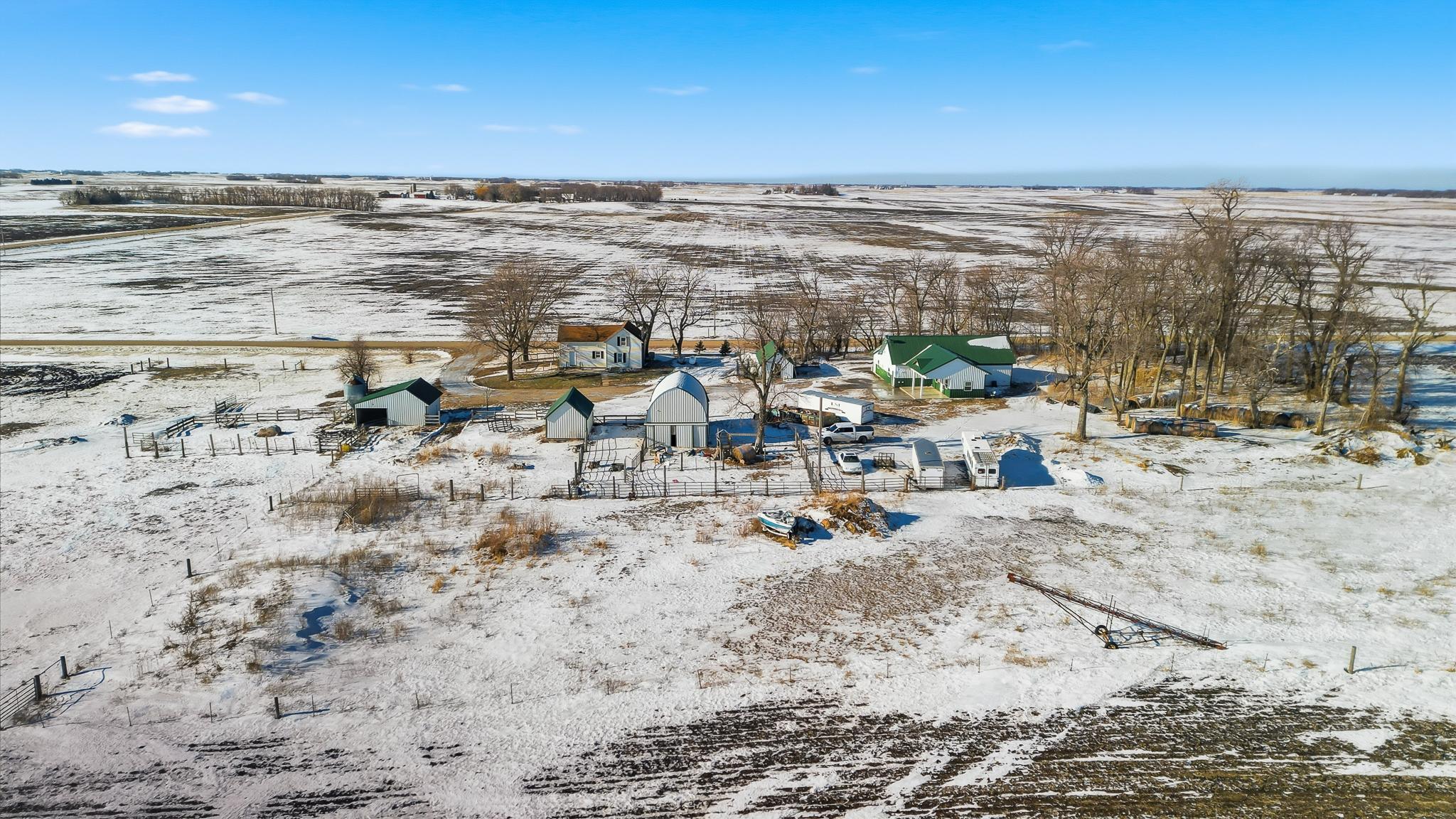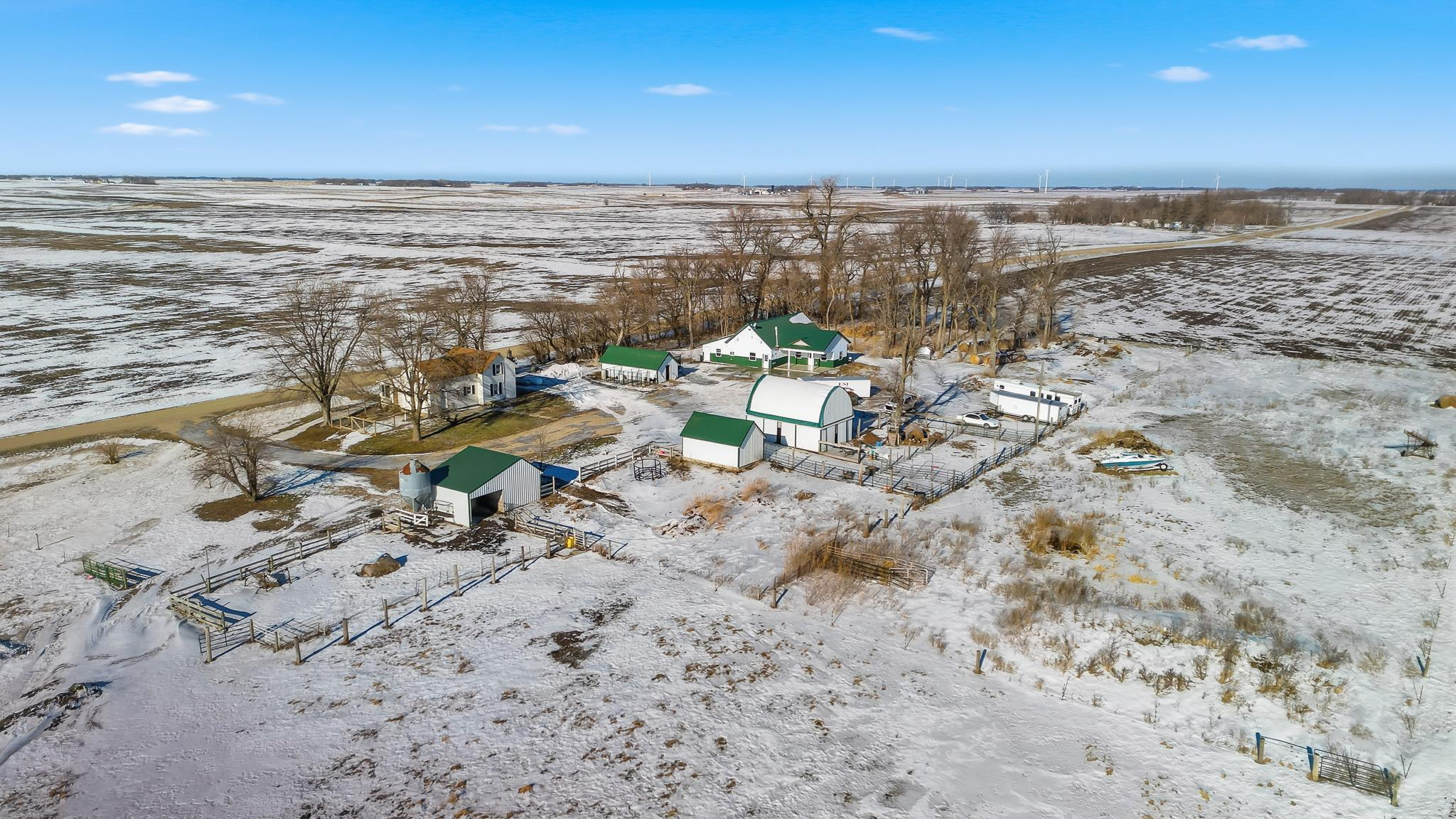 Rare opportunity: two separate homes on 4.99 acres with fenced pasture, multiple outbuildings, and full smart-home integration. NEWER HOME (3BR / 2.5BA)Modern, energy-efficient home featuring full in-floor heat, on-demand hot water, central A/C, and hard-surface flooring throughout (carpet only in the theater). Large 22' x 30' great room with 16' vaulted ceiling and spacious kitchen with seating for eight and new cabinetry. Primary suite includes a private covered patio (24' x 10' with epoxy floor) and tiled walk-in shower. Second-story theater updated in 2020. Property-wide URC Total Control smart-home system provides app, keypad, touchscreen, and voice-activated control of lighting, audio, and video. Additional features include whole-home audio, extensive camera coverage, and a 20KW Cummins standby generator.ORIGINAL HOME (3BR / 1BA)Move-in ready secondary residence or rental with updated furnace and A/C (2010), roof (2008), and shared well.PROPERTY & OUTBUILDINGS4.99 acres with full perimeter fencing and pasture areas, two heated automatic livestock waterers, multiple outbuildings with Wi-Fi and camera access, and a heated dog-kennel building with indoor runs. New septic system installed in 2013. Smart-home network extends across the entire property for remote control and monitoring.