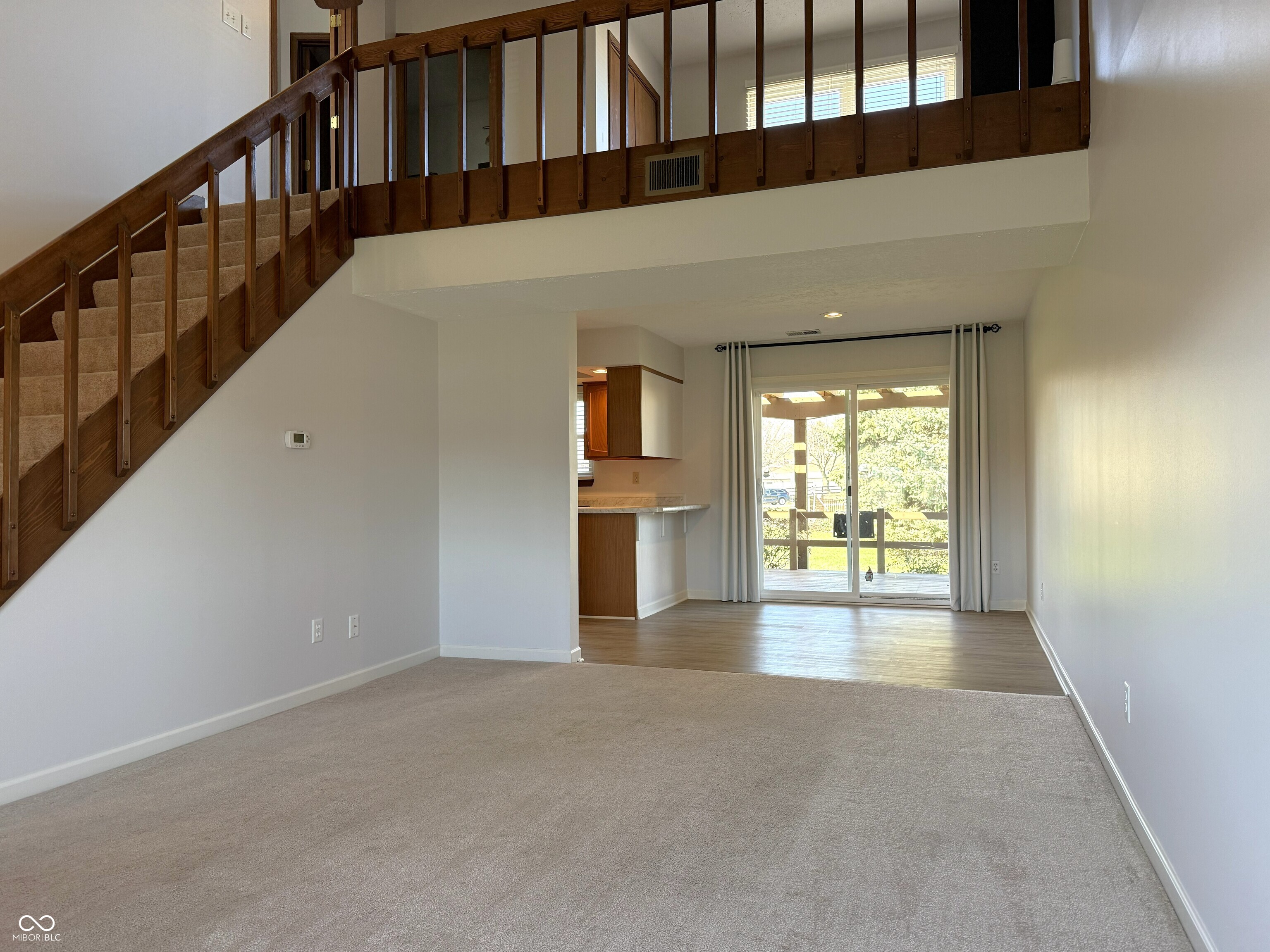 Situated at 526 Paradise WAY Unit # B in GREENWOOD, IN, USA, this condominium presents itself as an inviting home, thoroughly ready for immediate enjoyment. The living room creates an expansive and airy ambiance, distinguished by its high ceiling and a vaulted ceiling, providing an ideal setting for daily comfort and welcoming visitors. Culinary preparations find a delightful environment within the kitchen, thoughtfully appointed with a practical kitchen bar and a versatile kitchen peninsula, beautifully complemented by classic shaker cabinets, all designed for ease of use and aesthetic appeal. The full bathroom provides a refreshing experience, featuring a spacious walk in shower that offers both comfort and modern convenience. Beyond the interiors, the property extends its appeal outdoors with a charming patio, a delightful pergola, and a welcoming deck, providing serene spots for outdoor enjoyment. Practicality is enhanced by the dedicated laundry room, while the two bedrooms and one half bathroom offer comfortable living arrangements within this 1270 square foot condominium, thoughtfully designed with 1.5 stories. This condominium offers a balanced blend of comfort, style, and practical living, promising a fulfilling lifestyle.