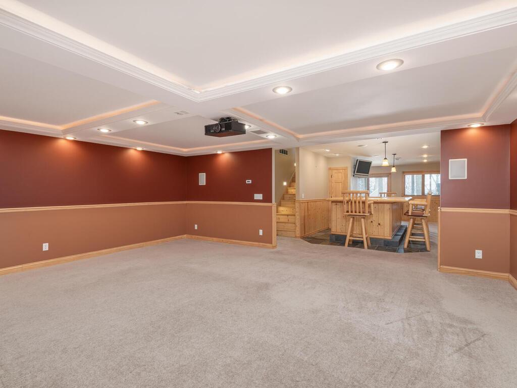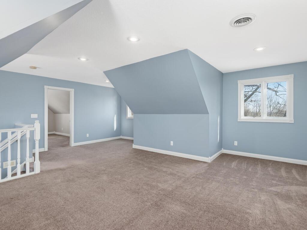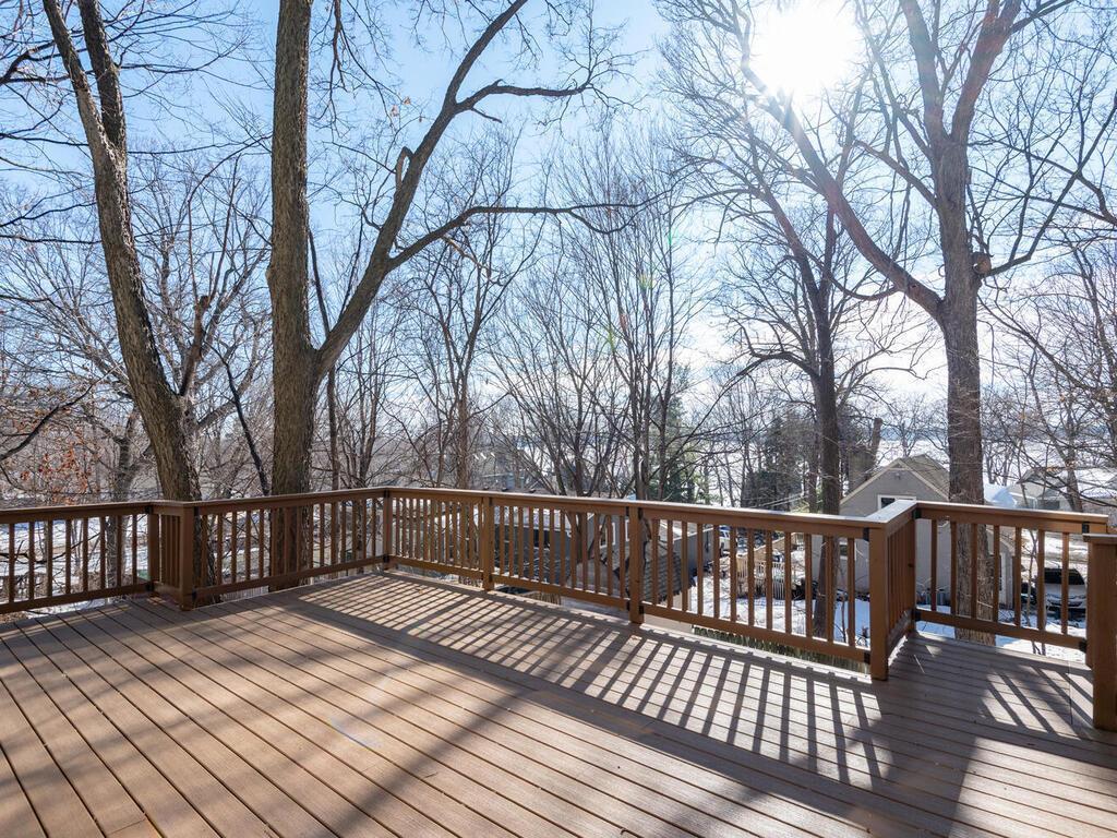 Stunning Custom-Built, One-Owner Home Just Steps from Lake Minnetonka! Nestled in Minnetrista and offering southwest lake views, this exceptional home showcases a bright, open floor plan accented by rich hickory hardwood floors. The gourmet kitchen is designed to impress, featuring stainless steel appliances including double ovens and a gas cooktop with pot filler, granite countertops, custom tile backsplash, center island with seating, built-in speakers, and abundant cherry cabinetry. The living and dining areas are filled with natural light from expansive windows and a sliding glass door that opens to a spacious maintenance-free deck with views of the lakeperfect for relaxing or entertaining. Upstairs, the inviting primary suite offers serene lake views and a large walk-thru closet that connects directly to the convenient upper-level laundry room. The private primary bath features a dual sink vanity, corner whirlpool tub, and separate glass-enclosed tiled shower. Two additional generously sized bedrooms and a full bath with dual sinks complete the second level. The 'tree top' third floor provides incredible flexibility with a large bonus room and 2 more bedrooms. The walk-out lower level is built for entertaining, featuring in-floor heat, a media room with 6.1 surround sound, a rustic pine bar with matching bar stools, and a bath with tiled shower. Step outside to the expansive paver patio, pre-wired with 50-amp service for a future hot tub and enjoy the fenced backyard with a built-in paver fire pit area. Additional highlights include James Hardie siding, Pella windows, custom wood blinds thru-out, and a newer high-efficiency zoned furnace (2022) for optimal comfort on every level. Ideally located just minutes from lakeside dining & Shoreline Drive that meanders along the Lake to access Hwys 12/394 & 494.
