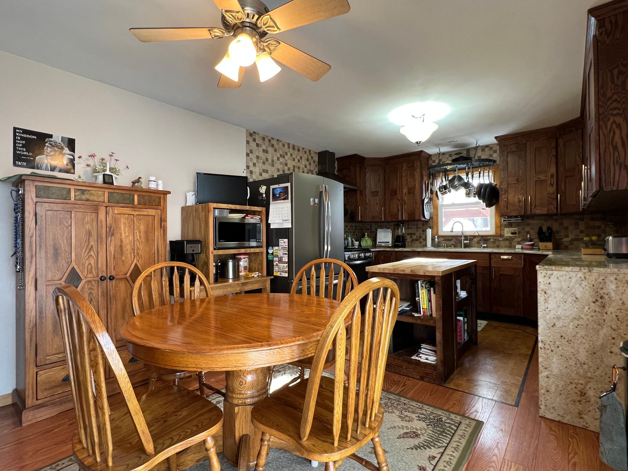 Very well maintained three-bedroom home conveniently located near the hospital. This inviting property features numerous updates, abundant storage, and a bright kitchen with newer appliances and updated flooring. The partially finished basement offers additional living space with plenty of room for future expansion. Step outside to a beautifully fenced backyard complete with a storage shed and a charming gazeboperfect for enjoying your morning coffee. An attached heated garage adds year-round comfort and convenience. This move-in ready home offers privacy, comfort, and great outdoor living.