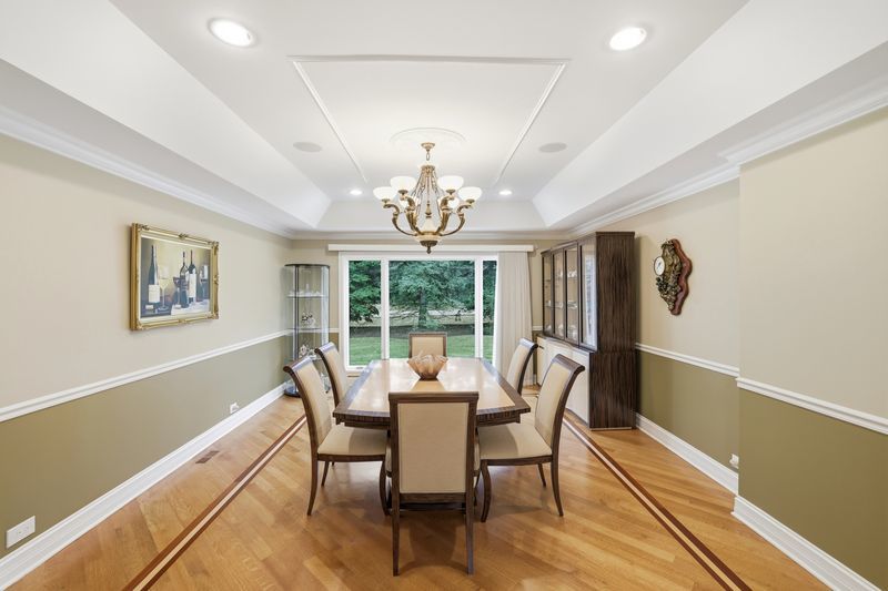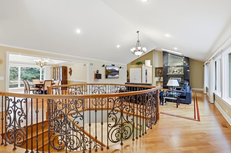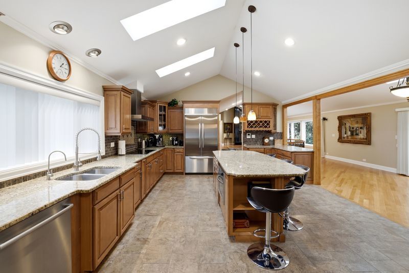 Custom brick home on a private, wooded 1-acre lot featuring 6 bedrooms plus an office and 4.5 baths with 4,000 sq ft of living space. Hardwood floors throughout, vaulted ceilings, and a granite fireplace. Spacious kitchen with large island and 42" cabinets. Oversized primary suite with generous closet space. Finished 2,000 sq ft basement includes 2 bedrooms, large bath with sauna, and additional living space. New roof with 9 skylights (May 2025). Located in the highly desirable Stevenson High School District and close to shopping, restaurants, and schools.