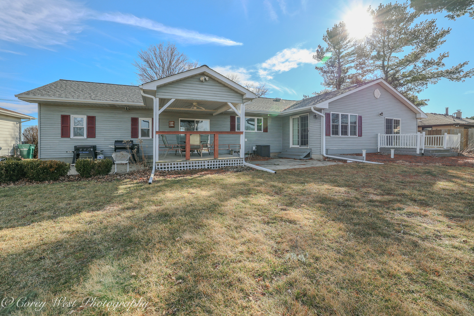 Welcome to a home where every detail has been thoughtfully considered! This meticulously maintained property offers a true move-in-ready experience, combining peaceful country living with unbeatable convenience. Situated on a generous .59-acre lot on the edge of Sycamore, you'll enjoy a tranquil setting while remaining just moments from dining, shopping, and schools. The covered front porch invites you into a bright living room showcasing soaring ceilings, gleaming hardwood floors, a dramatic bay window, and a warm wood-burning fireplace. The completely renovated kitchen impresses with luxury vinyl plank flooring, designer lighting, and premium finishes including quartz countertops, a sleek undermount sink, custom backsplash, and stainless steel appliances. A striking wood-beamed ceiling elegantly defines the dining space, while sliding doors open to a paver patio and covered deck-perfect for seamless indoor-outdoor entertaining. The primary suite serves as a private retreat with bamboo flooring, abundant closet space, volume ceilings, and direct access to an intimate 15x7 deck ideal for evening relaxation. The en-suite bath features a convenient pocket door for privacy. Two additional bedrooms offer hardwood floors and generous closet space, served by an updated guest bath. Practical luxury continues with a sunlit laundry room off the kitchen, complete with washer, dryer, and ample cabinetry. The connecting breezeway provides sheltered access to both the two-car garage and an expansive 14x11 covered deck-an exceptional space for hosting gatherings or quiet afternoons with a book. The finished basement delivers exceptional space with a sprawling recreation room, third full bath, dedicated storage areas, and a handy workshop. A rear yard shed offers additional storage for seasonal equipment. Recent Improvements: 2025: Brand-new gutters with gutter guards; master bath refresh with new paint and shower fixtures 2024: Fully renovated garage with spray foam insulation, new electrical throughout using conduit, sub-panel installation, and added outlets; all new outlets, switches, and covers installed throughout the home. 2023: New well pressure tank. 2022: Roof replacement. 2020: Complete kitchen renovation. 2019: Water heater. Approx. 7 years: A/C & HVAC system. 2009-2010: Windows, vinyl siding, and master bedroom addition. This is more than a house-it's the backdrop for your next chapter.