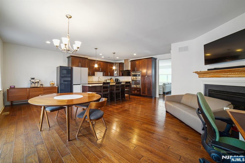 Located in the heart of Livingston Town Center, 54 Carillon Cir offers a rare opportunity to live in the top-ranked school District, with direct access to Town Centers shops, restaurants, and everyday services, and within just a 3-minute walk to the NYC bus stop. Built in 2015, this townhome offers comfortable living areas, approximately 3000 sqft including basement. The entry level welcomes you with a gracious foyer and a private home office with access to a two-car garage offering secure and convenient parking. The 2nd floor features a spacious living room, an open dining room/family room with a gas fireplace. The gourmet kitchen is equipped with granite countertops, center island, and stainless steel appliances. The third floor includes the primary suite with walk-in closet, ensuite bath. Two additional bedrooms share a hall bathroom. A laundry room completes the 3rd floor. The finished basement provides a recreation room and a full bath. Located in prestigious Livingston Town Center, residents enjoy resort-style amenities including an indoor heated pool, fitness center, rooftop terrace, billiard room, business center, concierge service, and a variety of shops and dining just outside the door.