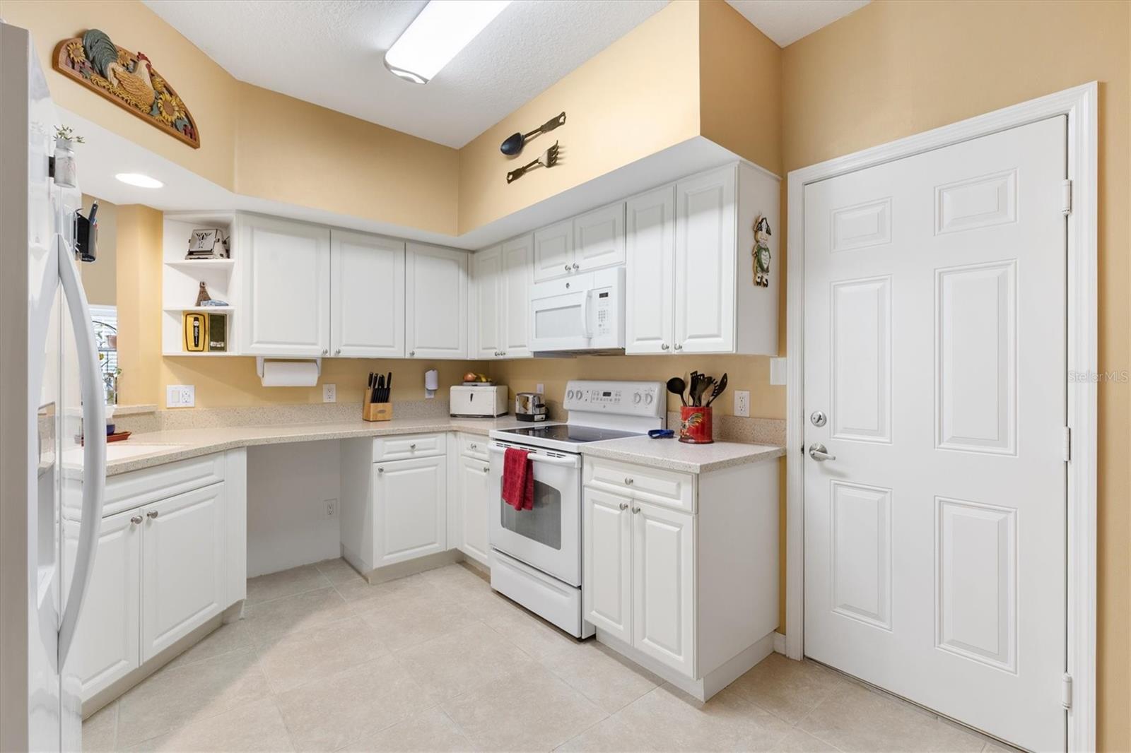 This beautifully maintained 2-bedroom, 2-bath FIRST-FLOOR corner unit offers privacy, natural light, and an open, airy layout youll love coming home to. Featuring high ceilings and a spacious open floor plan, this condo lives larger than its square footage.The eat-in kitchen is designed for both functionality and style, showcasing Corian countertops, a breakfast nook, and generous cabinet spaceperfect for casual mornings or entertaining guests. Triple sliding glass doors flood the living area with light and lead to a private 16 x 9 screened porch, creating seamless indoor-outdoor living.The primary suite offers durable laminate flooring, double vanities, a walk-in shower, and a spacious walk-in closet. A full-size washer and dryer are conveniently located just off the kitchen for everyday ease. The attached garage adds valuable storage and convenience.Major updates include:Corian Countertops (2017),Laminate Flooring in Bedrooms (2017),New AC 2025Located in a NON age-restricted, gated community loaded with amenities: two pools, two spas, cabana, putting green, dog park, fishing pier, basketball, pickleball, tennis courts, and regular community events. Low maintenance living with resort-style amenitieswithout age restrictions. Schedule your showing today.