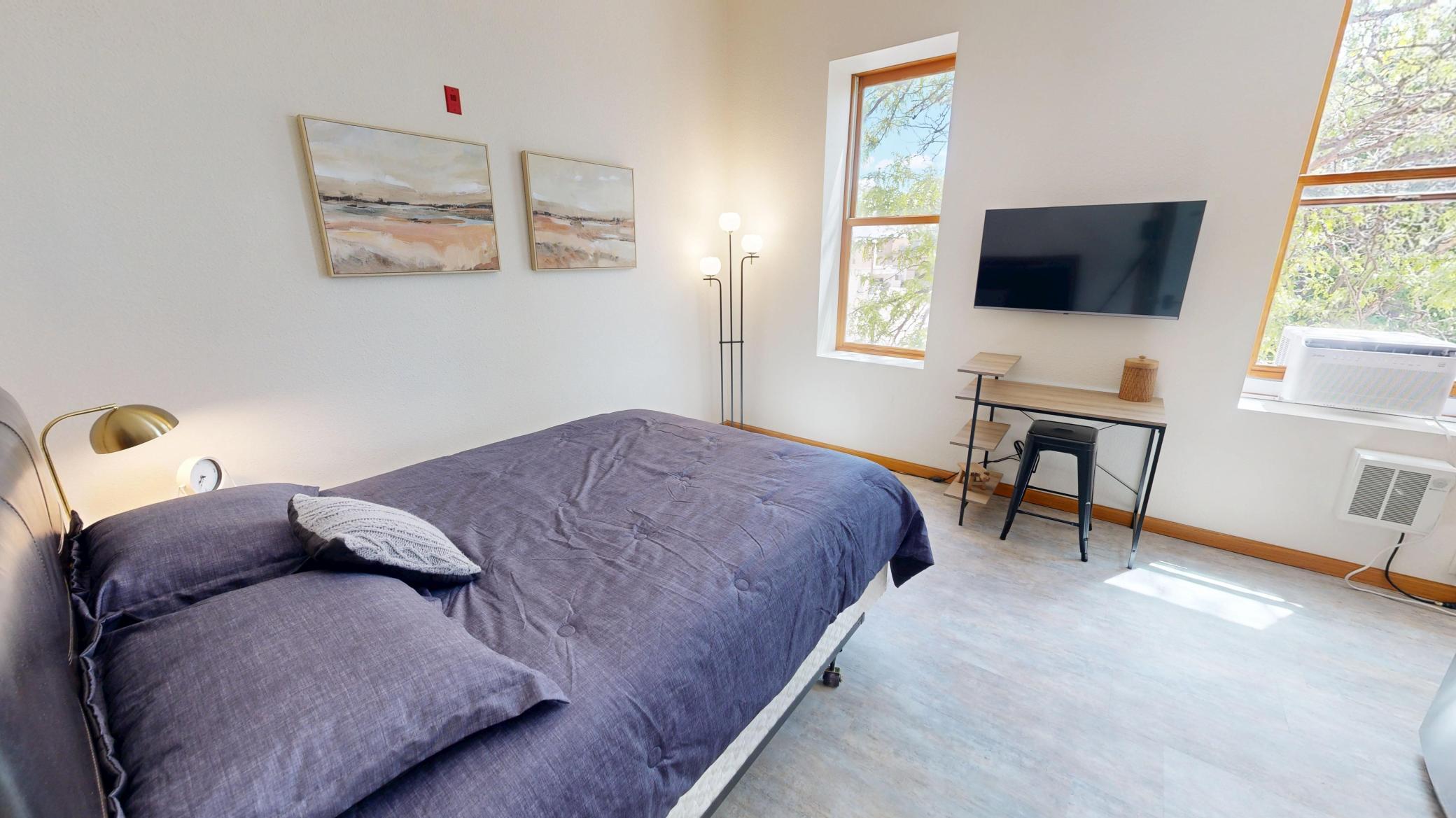 FURNISHED Efficiency apartment procured to meet refined expectations. Two-story property centrally located downtown features several types of dwelling spaces. This layout includes one spacious bedroom suite with a kitchenette and one large 3/4 bathroom. Fulls size fridge and microwave. Use a hot plate and air fryer or other such appliances for your culinary needs. Two Large windows provide natural light enhancing the overall ambiance of the space. All utilities plus trash and wifi included. Available short or long term. Compare to the math of a hotel or motel nightly rates... Coin operated laundry on site. Be sure to find the virtual 3D tour and call to schedule your private viewing and obtain an application today.