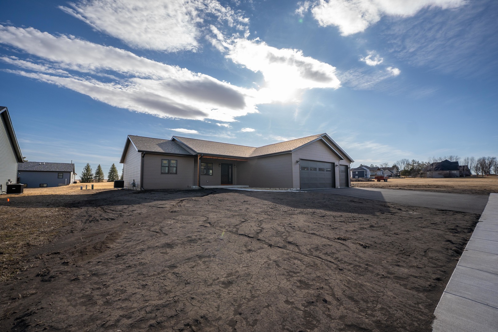 Move-in ready and located in the desirable Homestead Subdivision in Stillman Valley, this brand-new construction home offers the perfect balance of small-town living and modern comfort. Featuring 4 bedrooms, 3 full bathrooms, and a 3-car garage, this home sits in a great location with close proximity to Stillman Valley Schools and downtown while still holding onto the rural charm the area is known for. The main level offers 1,870 square feet of thoughtfully designed living space, with an additional 1,500 square feet in the finished lower level that provides plenty of room for everyday living and entertaining. Step up onto the oversized covered front porch that adds both curb appeal and everyday practicality as you enter the home. Inside, the open concept layout connects the kitchen and spacious family room, creating a welcoming space that is perfect for gathering with friends and family. The kitchen is designed with both style and function in mind, featuring quartz countertops, an oversized island, beautiful hickory cabinets, and a generously sized pantry that provides excellent storage. The thoughtfull designed split bedroom floor plan offers privacy with the master suite set on one side of the home, while the other two bedrooms sit on the opposite wing. The master suite is a true retreat featuring a spacious bedroom and a luxurious en suite bathroom complete with a double vanity and a walk-in tile shower that includes multiple shower heads and a rainfall feature. The additional bedrooms share a full bathroom that is ideal for family or guests. The finished lower level provides excellent additional living space. The large open area can easily serve as a game room, home theater, or second family room. Off to the side is additional space that can function as a fourth bedroom, office, or home gym. With an egress window bringing in natural light, this area offers flexibility to meet a variety of needs. Out the back of the home, you will find space to enjoy the backyard and quiet surroundings of the neighborhood, offering a great setting for relaxing evenings or gatherings with friends and family. Additional highlights include a wide blacktop driveway, energy-efficient Marvin windows, and a well-designed three-car garage that includes a 9x8 third overhead door, offering extra clearance for larger vehicles or equipment. Located within the Meridian 223 School District, this property combines the benefits of new construction with the welcoming feel of the Stillman Valley community.