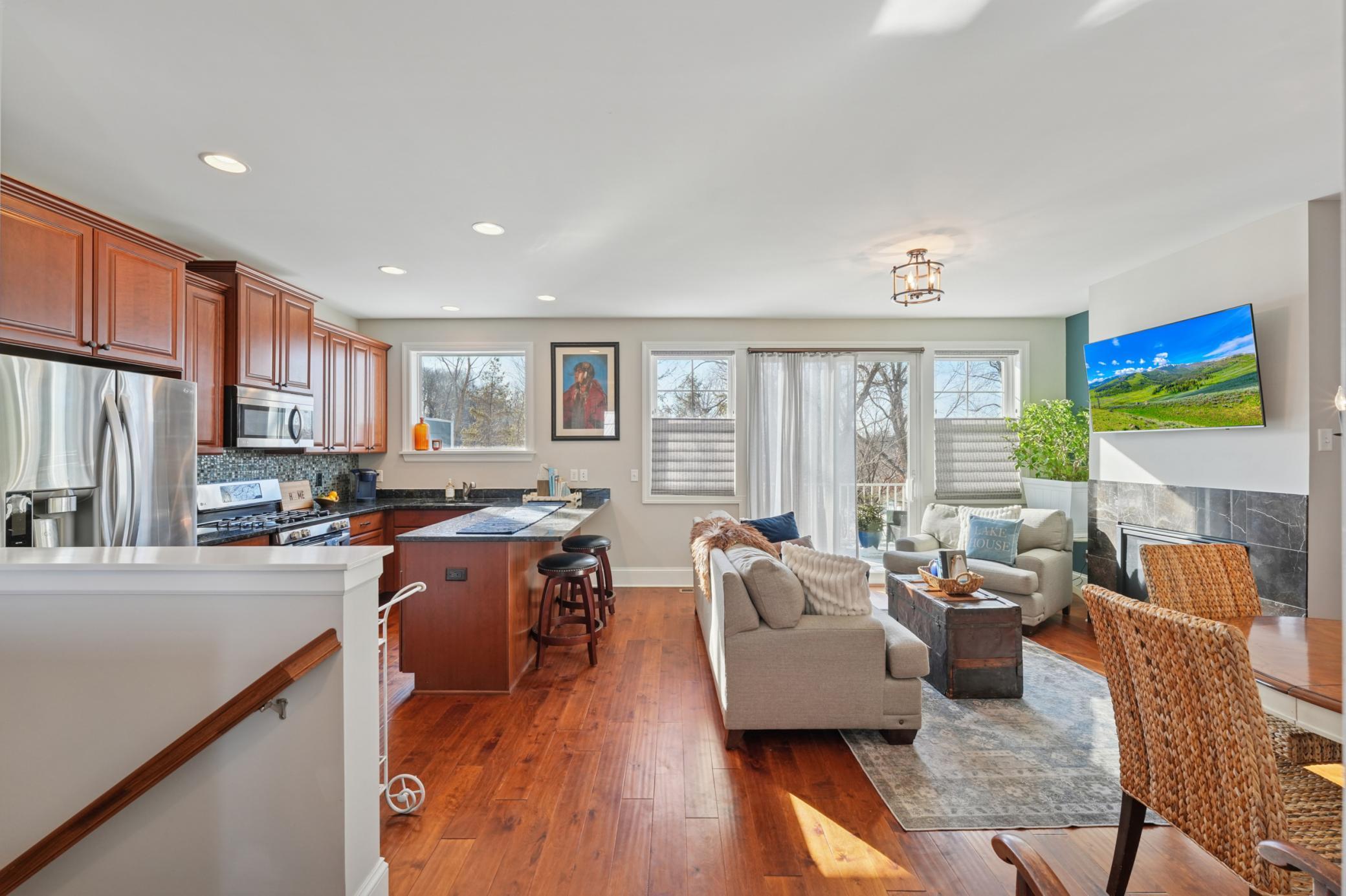 Welcome to 5449 Lost Lake Lane, offering maintenance-free living with Lake Minnetonka access in the heart of Mound. This 2-bedroom, 2-bathroom townhouse features 1,154 square feet of well-designed living space, a 2-car garage, quality finishes including hardwood floors and granite countertops, and an open floor plan that opens to a spacious deck for outdoor enjoyment.The association provides shared amenities including a pool, hot tub, and cabana with kitchen for seasonal use. The lower-level second bedroom offers flexible space suitable for a guest room, home office, exercise area, or hobby room.The property includes a city-issued dock slip through the City of Mound dock program, currently held by the seller and transferable to the new owner at closing. The slip accommodates boats up to approximately 30 feet, includes power and water, and is accessed via a dredged channel suitable for a variety of watercraft. Dock fees are paid annually and are offered at a significantly reduced rate for Lost Lake Villas owners at just $1,500.Enjoy convenient access to an extensive network of nearby walking and biking trails, including the Greenway to Wayzata, the Andrew Sisters Trail, and connections to the Dakota Junction Trail in Mound, providing access west toward local destinations for dining, wineries, farms, and seasonal events. City-maintained trail access also provides seasonal lake connectivity for winter recreation.Lost Lake Channel offers a natural setting with regularly observed local wildlife and year-round activity. Summer views often include waterfowl and shoreline wildlife, while winter months commonly bring cross-country skiers and seasonal trail users passing through the channel toward Lake Minnetonka.A well-maintained community, flexible living spaces, trail connectivity, and included dock access make this home a unique Lake Minnetonka opportunity.