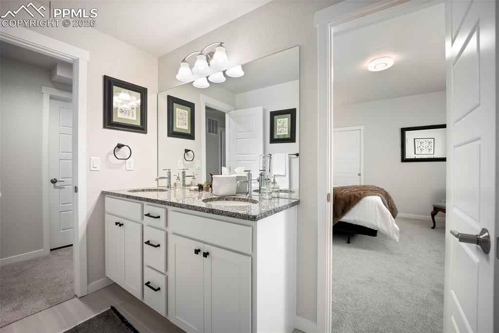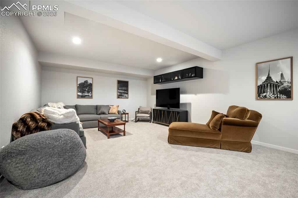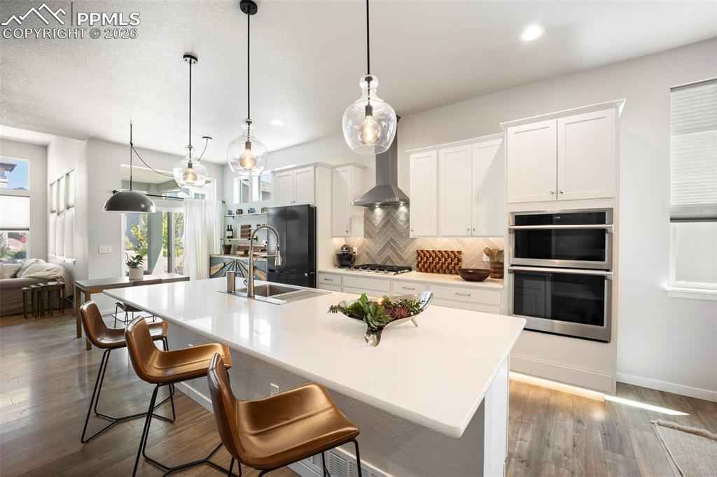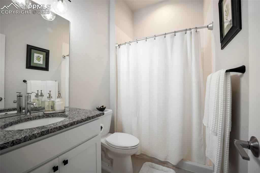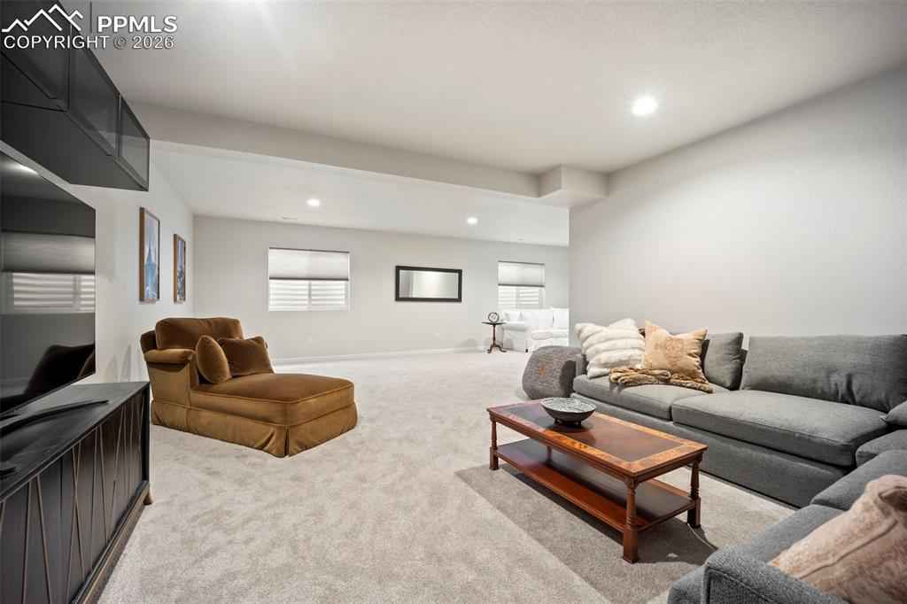 Built in 2022 & named the Parade of Homes Peoplex2019;s Choice, this meticulously maintained Wolf Ranch home offers the feel of new construction with the bonus of completed upgrades. Unlike new builds that require a significant investment in landscaping & finishes after closing, this home has every detail complete. Additionally, the basement offers a versatile unfinished room with an egress window and pre-plumbing, making it simple to add a 5th bedroom with private bath if desired. Highlights of this home include modern light fixtures, smart-home features throughout, upgraded Samsung appliances, Levolor blinds, and high-end professional landscaping with a top-of-the-line drainage system, native plants & trees, flagstone patio, fire pit, a bubbling boulder, backyard fountain, & patio lighting x2013; all enabled from your phone. The open-concept great room welcomes you with 12-foot ceilings, oversized windows, & a gas fireplace with custom mantle. The gourmet kitchen features a 12-foot quartz island with overhang, 42x201D; upper cabinets, range hood, under cabinet & island lighting, & custom cedar shelving. Every appliance has been upgraded to Samsung smart models, including a 4-door flex refrigerator, dual ovens with microwave combo, & 5-burner gas cooktopx2014;all controlled from your phone. The primary suite features a 5-piece bath with freestanding tub, dual vanities, & a walk-in closet enhanced with custom wood shelving to maximize storage. The laundry room, designed for convenience, has a built-in pulley system for hanging clothes. The basement, with its 9-foot ceilings, includes a large family room, and 2 oversized bedrooms with Jack-and-Jill bath. Additional features include: tankless water heater, ManaBloc plumbing, radon mitigation & 220V outlet in the garage for welding or EV charging. With its open-concept layout and stunning backyard oasis, youx2019;ll have the ideal space to entertain both indoors & out. This home truly has it all.