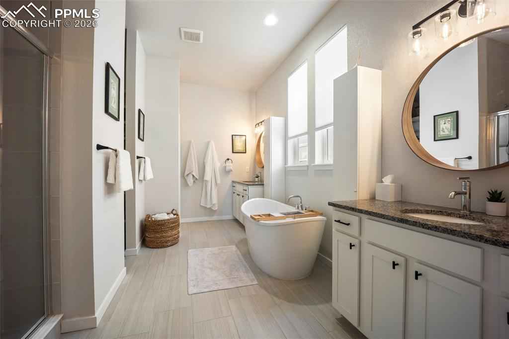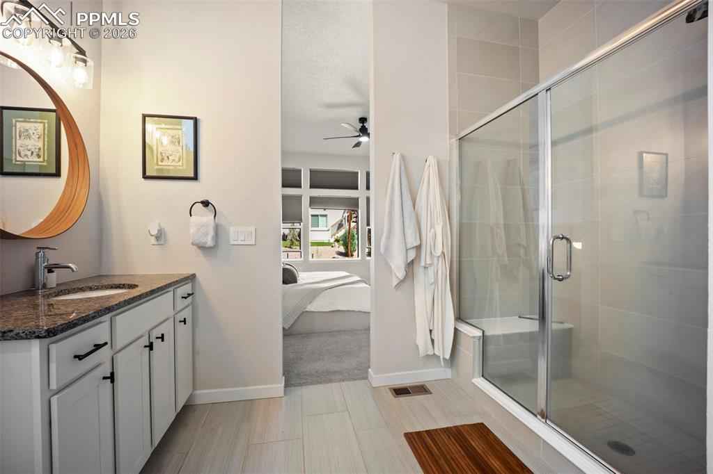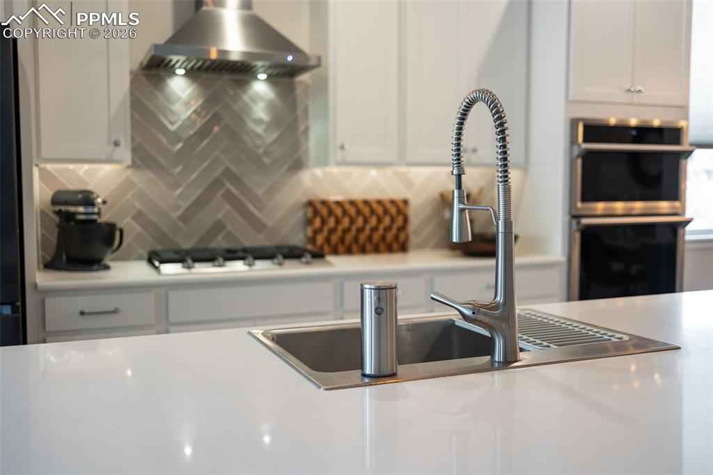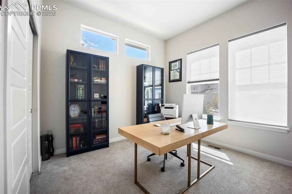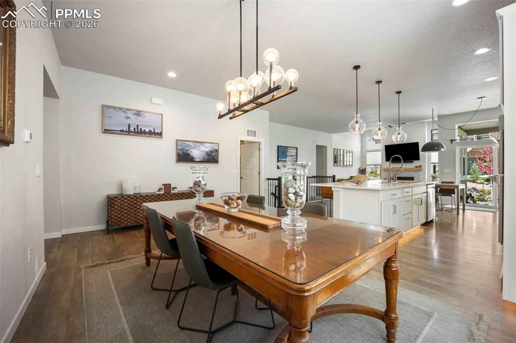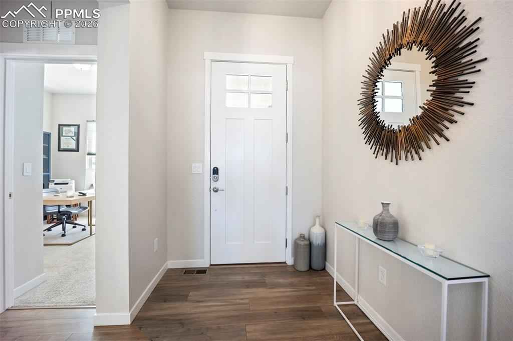 Built in 2022 & named the Parade of Homes Peoplex2019;s Choice, this meticulously maintained Wolf Ranch home offers the feel of new construction with the bonus of completed upgrades. Unlike new builds that require a significant investment in landscaping & finishes after closing, this home has every detail complete. Additionally, the basement offers a versatile unfinished room with an egress window and pre-plumbing, making it simple to add a 5th bedroom with private bath if desired. Highlights of this home include modern light fixtures, smart-home features throughout, upgraded Samsung appliances, Levolor blinds, and high-end professional landscaping with a top-of-the-line drainage system, native plants & trees, flagstone patio, fire pit, a bubbling boulder, backyard fountain, & patio lighting x2013; all enabled from your phone. The open-concept great room welcomes you with 12-foot ceilings, oversized windows, & a gas fireplace with custom mantle. The gourmet kitchen features a 12-foot quartz island with overhang, 42x201D; upper cabinets, range hood, under cabinet & island lighting, & custom cedar shelving. Every appliance has been upgraded to Samsung smart models, including a 4-door flex refrigerator, dual ovens with microwave combo, & 5-burner gas cooktopx2014;all controlled from your phone. The primary suite features a 5-piece bath with freestanding tub, dual vanities, & a walk-in closet enhanced with custom wood shelving to maximize storage. The laundry room, designed for convenience, has a built-in pulley system for hanging clothes. The basement, with its 9-foot ceilings, includes a large family room, and 2 oversized bedrooms with Jack-and-Jill bath. Additional features include: tankless water heater, ManaBloc plumbing, radon mitigation & 220V outlet in the garage for welding or EV charging. With its open-concept layout and stunning backyard oasis, youx2019;ll have the ideal space to entertain both indoors & out. This home truly has it all.