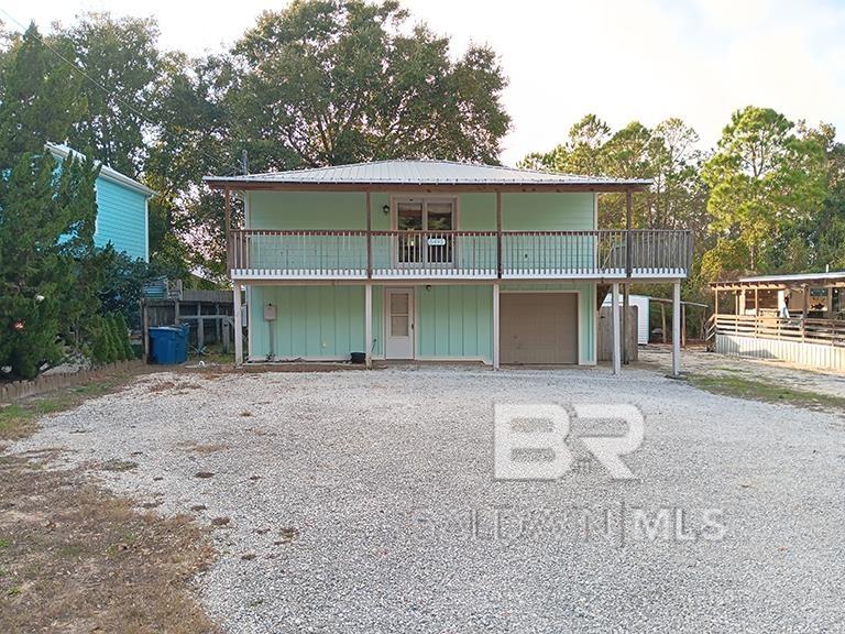 Charming Bear Point Cottage Updated and boat-friendly! Enjoy coastal living in this classic raised Bear Point cottage featuring a total of two bedrooms, two bathrooms and modern upgrades. Hardie Plank siding and durable metal roof. Large gravel driveway with plenty of space for boats and vehicles. Single-car or cart garage with extra storage for beach gear plus an external storage shed. Interior features an open-concept kitchen and living area. Two spacious bedrooms and a full bath upstairs. Bonus downstairs space (approx. 450 sq ft not included in sq ft on listing) with private entrance, bath, and kitchenetteideal for guests and entertaining. You can also relax and entertain in the backyard with a covered gathering space. Laundry connection in is in the garage. Optional membership ($350/year) includes gated boat ramp, beaches and parks. X flood zone no flood insurance required. Seller is a licensed real estate agent in the State of Alabama. Buyer to verify all information during due diligence.