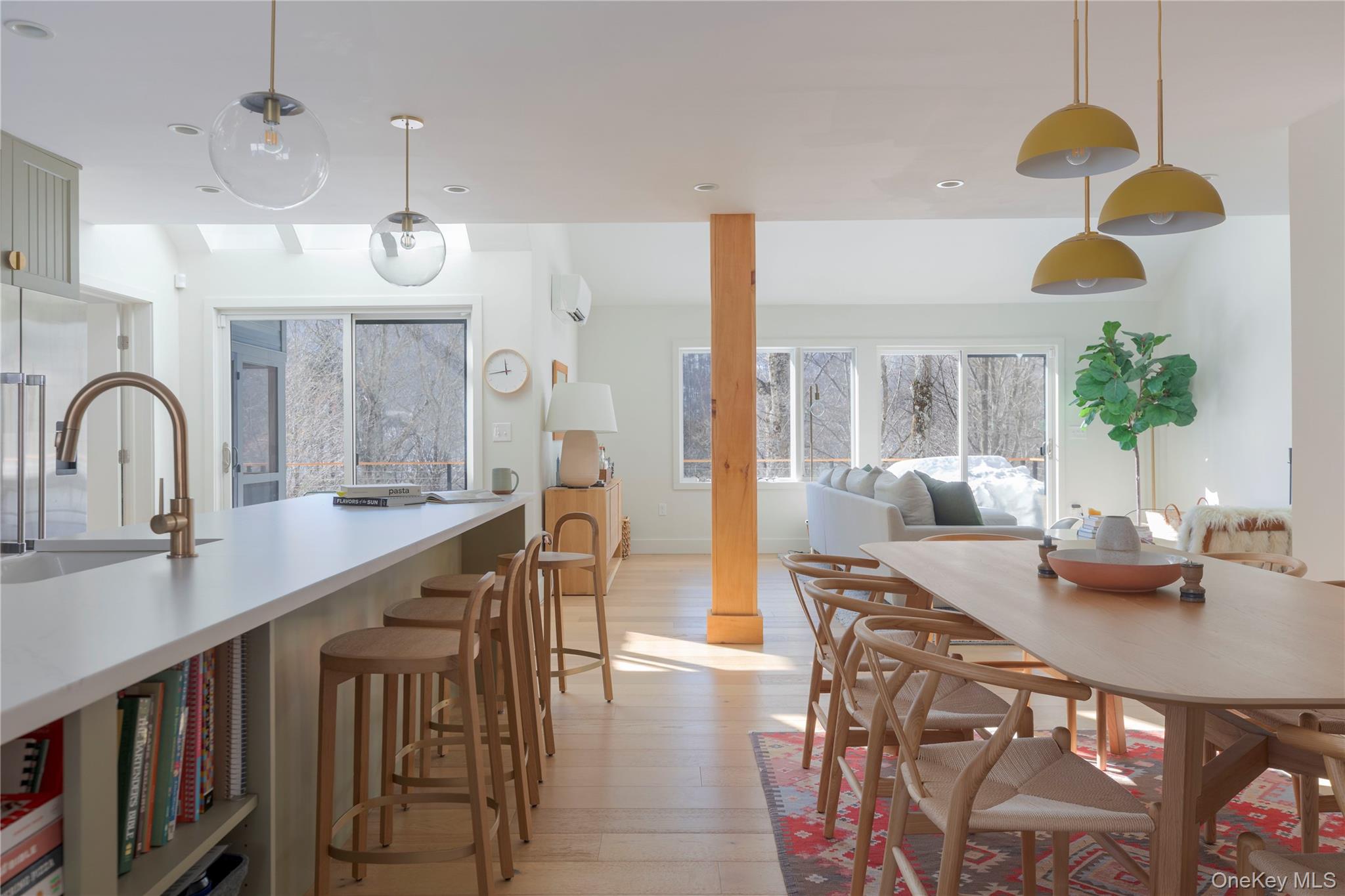 Light-Filled Modern Mountain Home Near Phoenicia & BelleayreFully renovated and reimagined, this stunning mountain home feels immersed in the landscape offering expansive views and rare privacy. Completely transformed with all-new systems and high-end finishes, the home has been curated with intention, balancing clean design, comfort, and functionality.Flooded with natural light and framed by high ceilings, the open-concept living creates an effortless flow for both everyday life and entertaining. A wood-burning fireplace anchors the main space, creating a cozy atmosphere, while oversized Marvin windows and doors showcase breathtaking views from nearly every angle.The chefs kitchen opens seamlessly to the dining and living areas, creating a cohesive, light-filled space designed for connection. Sleek Silestone countertops and custom cabinetry perfectly balance clean lines with warmth. Engineered hardwood flooring runs throughout the lower level, complemented by Murano glass light fixtures in the entry and upper hallway that add an artful touch.Each bedroom is generously sized, offering a comfortable setting for rest and relaxation. The primary suite is a true sanctuary, featuring vaulted ceilings, a dramatic floor-to-ceiling window overlooking the mountains, and sliding glass doors that lead out to a private balcony. The beautifully appointed ensuite bath completes this serene, light-filled retreat.A spacious second-floor flex room offers additional versatility, while a large open bonus room on the main level provides even more flexible space - perfect as a second living area, home office, media room, or game room.All three full baths feature Kohler fixtures and heated floors, adding comfort and a touch of luxury. Mini-split systems provide efficient heating and cooling throughout, ensuring year-round comfort, while a durable standing seam metal roof and whole-house generator add both architectural appeal and long-term peace of mind. The home is also equipped with Hunter Douglas blinds and a comprehensive Ring security system.Step outside and youll find exceptional outdoor living: expansive decking, professional landscaping and stonework, a custom pizza oven perfect for hosting under the stars, and a screened-in porch ideal for relaxed mornings and summer evenings. A detached two-car garage completes this property and provides plenty of space for vehicles, outdoor gear, workshop, or additional storage - a valuable amenity in this mountain setting.This home is privately situated on one of the area's most sought-after quiet dead-end roads and ideally located just 5 minutes to Phoenicia, 20 minutes to Woodstock, 30 minutes to Kingston, and only 20 minutes to Belleayre Mountain for skiing. Hiking trails and year-round outdoor adventure are right at your fingertips, along with excellent dining, shopping, farmers markets and more!