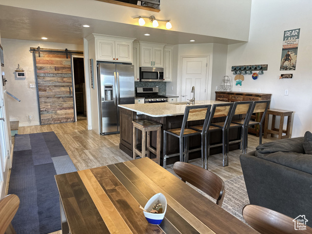New Price! Seller Offers up to $30,000. for Buyer's Closing Costs on Acceptable Offer. Experience beachfront living in this Long Beach-style front-row beach house at Bear Lake. Enjoy exclusive lake access right from your patio and close proximity to East Shore Marina. This 5-bedroom retreat features a spacious great room with a cozy fireplace for relaxation. The kitchen features a custom beach-inspired design, ideal for entertaining guests. Enjoy the large family/game room in the daylight basement. Upper deck with breathtaking views of Bear Lake-perfect for creating cherished family memories. Seize this opportunity to make it yours!