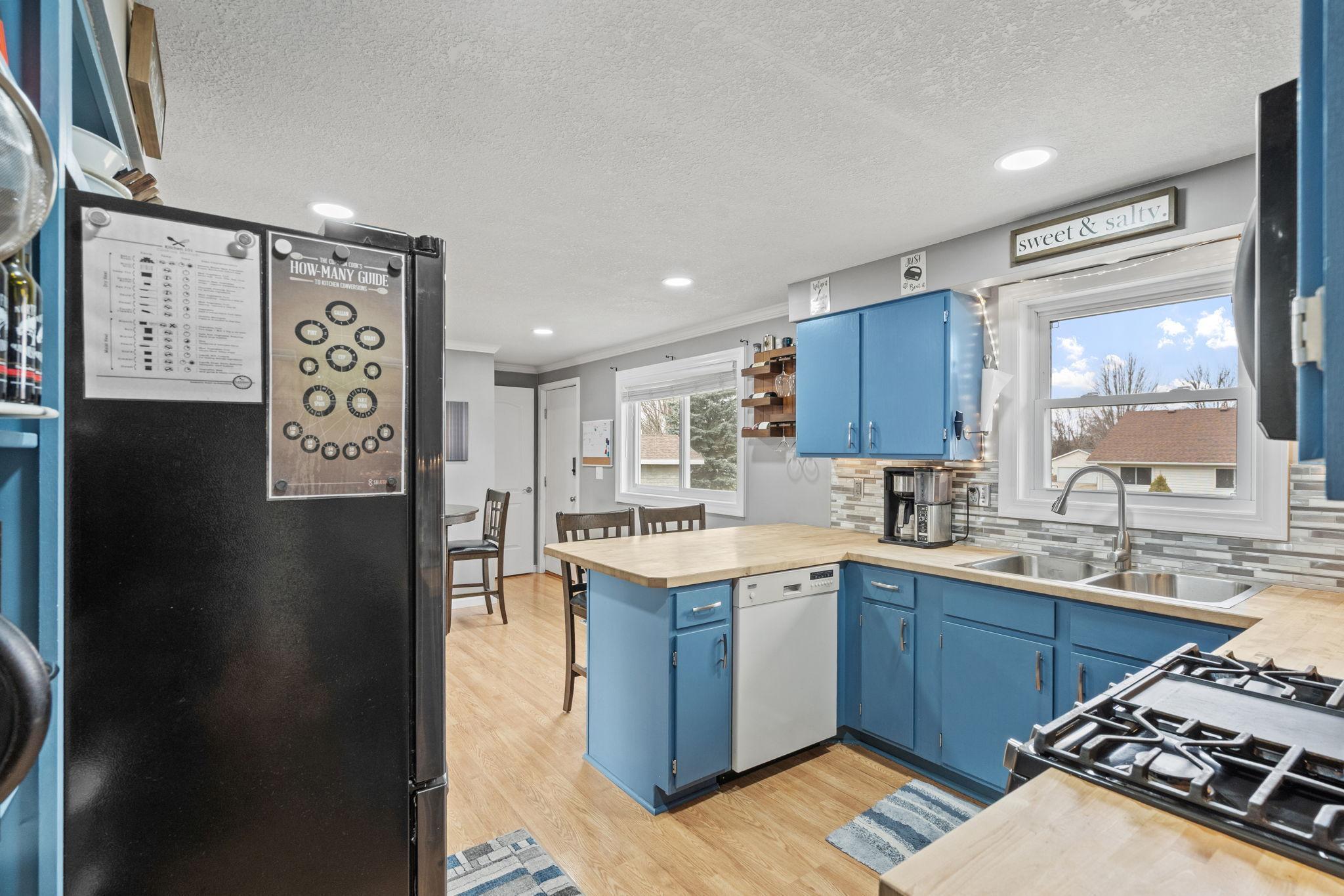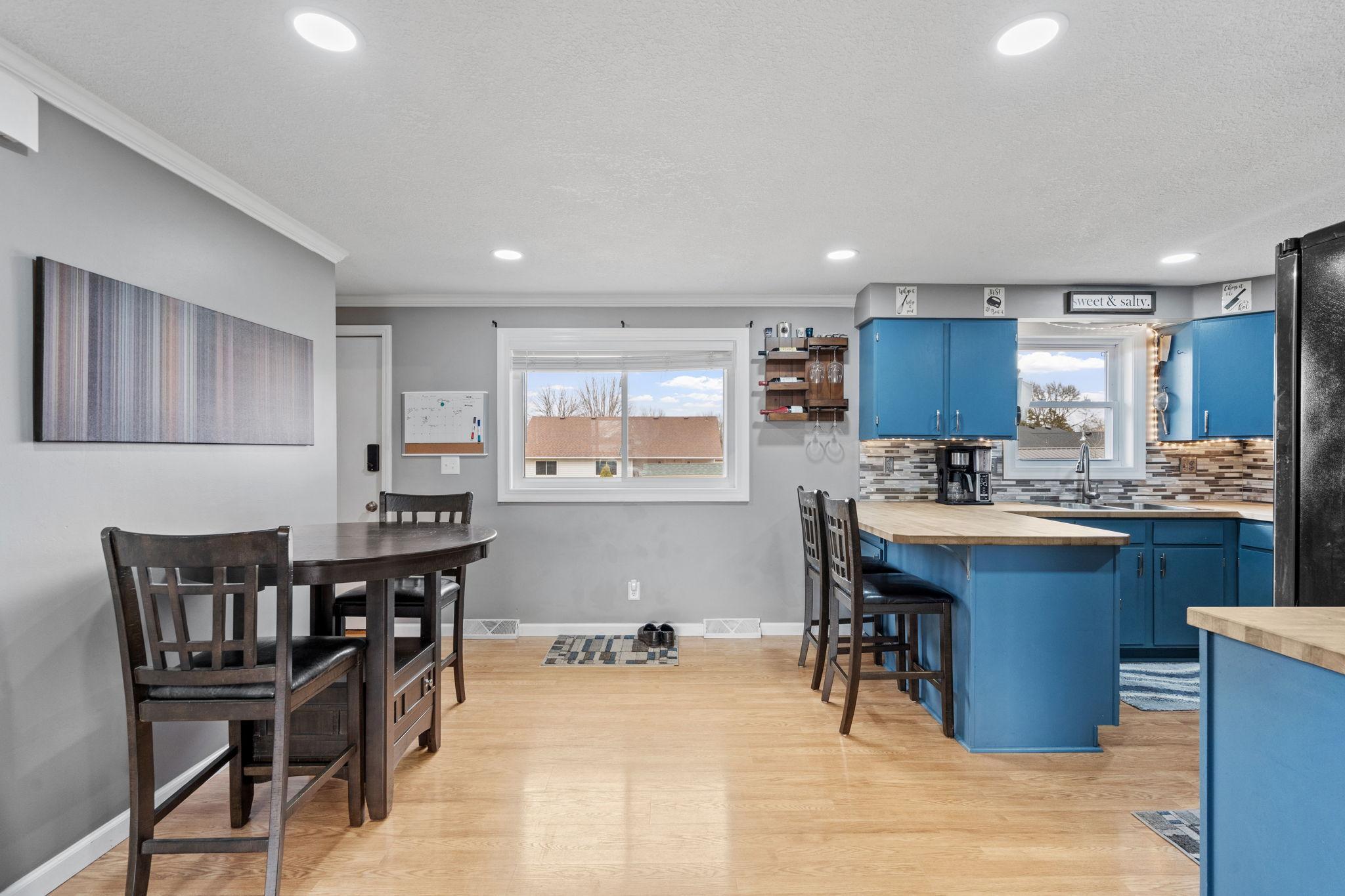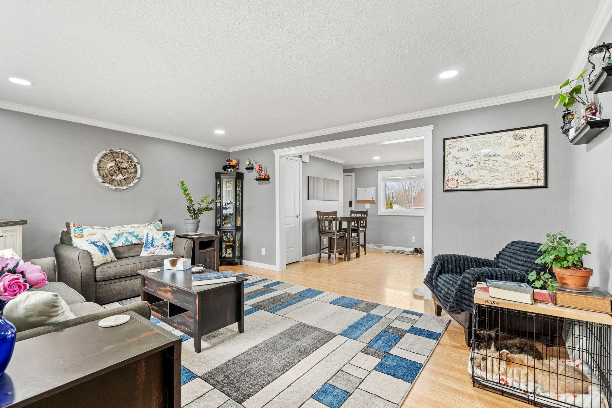 This south-facing rambler has been extremely well-kept. The main floor has it all with an open concept layout highlighted by big bright windows, hardwood floors and large spaces. Kitchen boasts tons of storage, butcher block countertops and a breakfast bar. The main floor is finished with a full bathroom and 3 Bedrooms Lower level is partially finished to include huge family room with unlimited potential, full bathroom and future 4th bedroom (currently an exercise room, easily add an egress window to complete the 4th bedroom). Large backyard gets tons of sunlight making it great for gardening or those summertime BBQ's. Enjoy the benefits of the extra storage space provided by the shed. Top it all off with a heated attached garage! Welcome home!