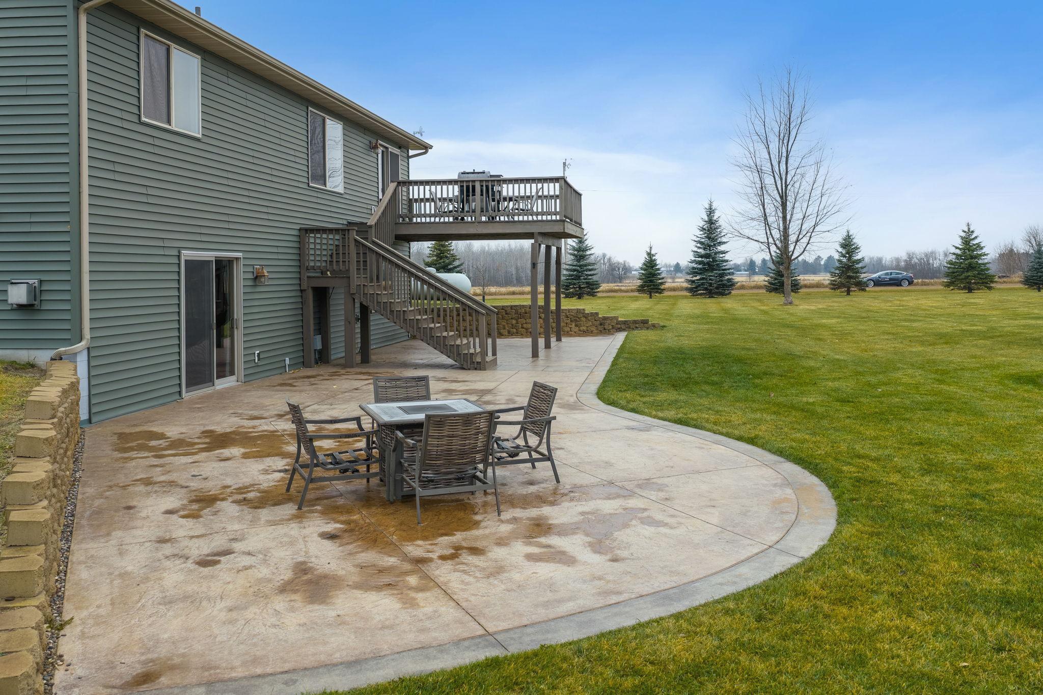 This inviting 4-bedroom, 2-bath home welcomes you with a large entryway and a finished walk-out basement. Step outside to a stamped concrete patio and a large deck overlooking a spacious yard, ideal for gatherings, play, or quiet evenings outdoors.