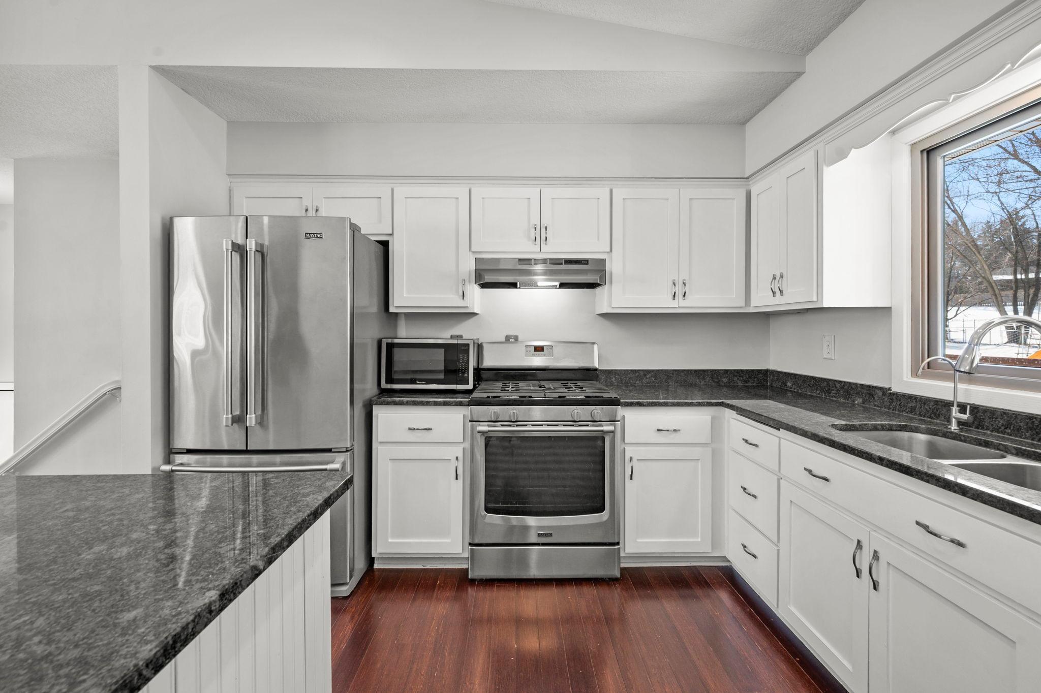 Vaulted ceilings, hardwood floors, and a beautiful brick fireplace create a warm and inviting atmosphere on the main level, which also includes a bright bonus sunroom perfect for relaxing or enjoying morning coffee. The updated kitchen features white cabinetry, granite countertops, stainless steel appliances, and a generously sized center islandideal for everyday living and entertaining.Both the main and lower levels offer spacious living areas, providing plenty of room to host gatherings or simply spread out and enjoy the home.Step outside to a multi-level deck overlooking a large fenced backyardperfect for outdoor entertaining, gardening, or play.The location is exceptional, just minutes from shopping, restaurants, scenic parks, and the highly sought-after Minnetonka School District. Walk to both the elementary school and Minnetonkas VANTAGE Advanced Professional Studies program. Purgatory Park is just half a block away, offering beautiful trails and natural spaces for walking, relaxing, and enjoying the outdoors.