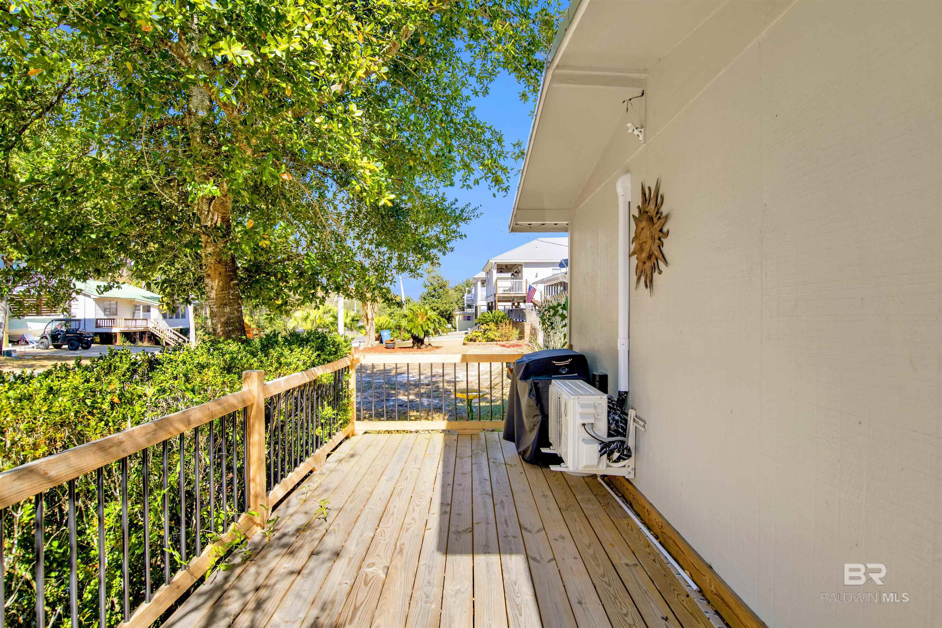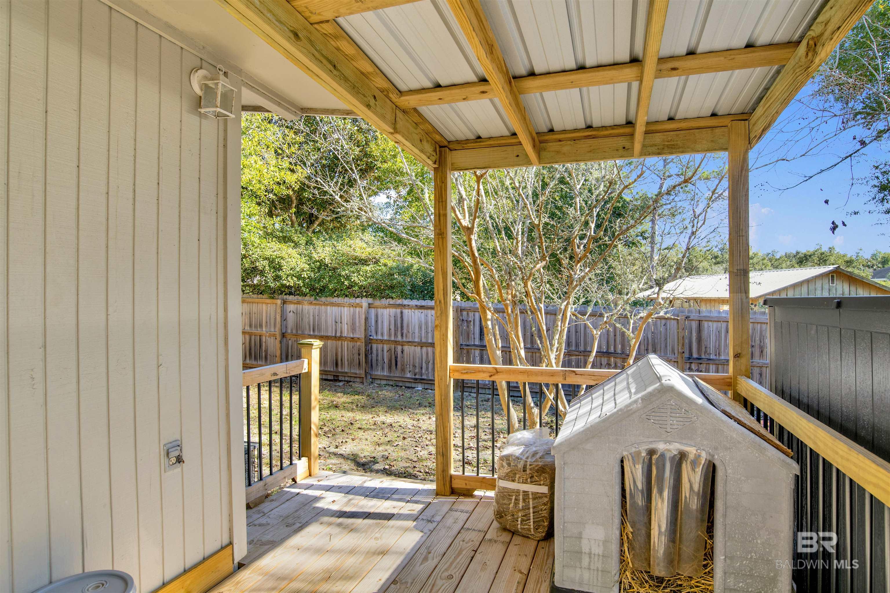 Charming 2-bedroom, 2.5-bath cottage located on a quiet dead-end street in the desirable Bear Point neighborhood. Situated OUT OF FLOOD ZONE, this home offers peace of mind along with thoughtful updates throughout. This is a golf cart community. Enjoy NEW flooring featuring luxury vinyl plank and tile, freshly painted interior, and a welcoming wrap-around porch perfect for relaxing. The kitchen shines with new stainless appliances, new countertops, sink and faucet. Major upgrades include a new metal room (2020), new 3.5 Ton Heat Pump, and a new privacy fence. A well-maintained, move-in-ready cottage ideal for full-time living, a second home, or investment. Bear Point offers a voluntary COA for $300 per year. It includes a fenced beach, playground, club house, and boat ramp. Buyer to verify all information during due diligence.