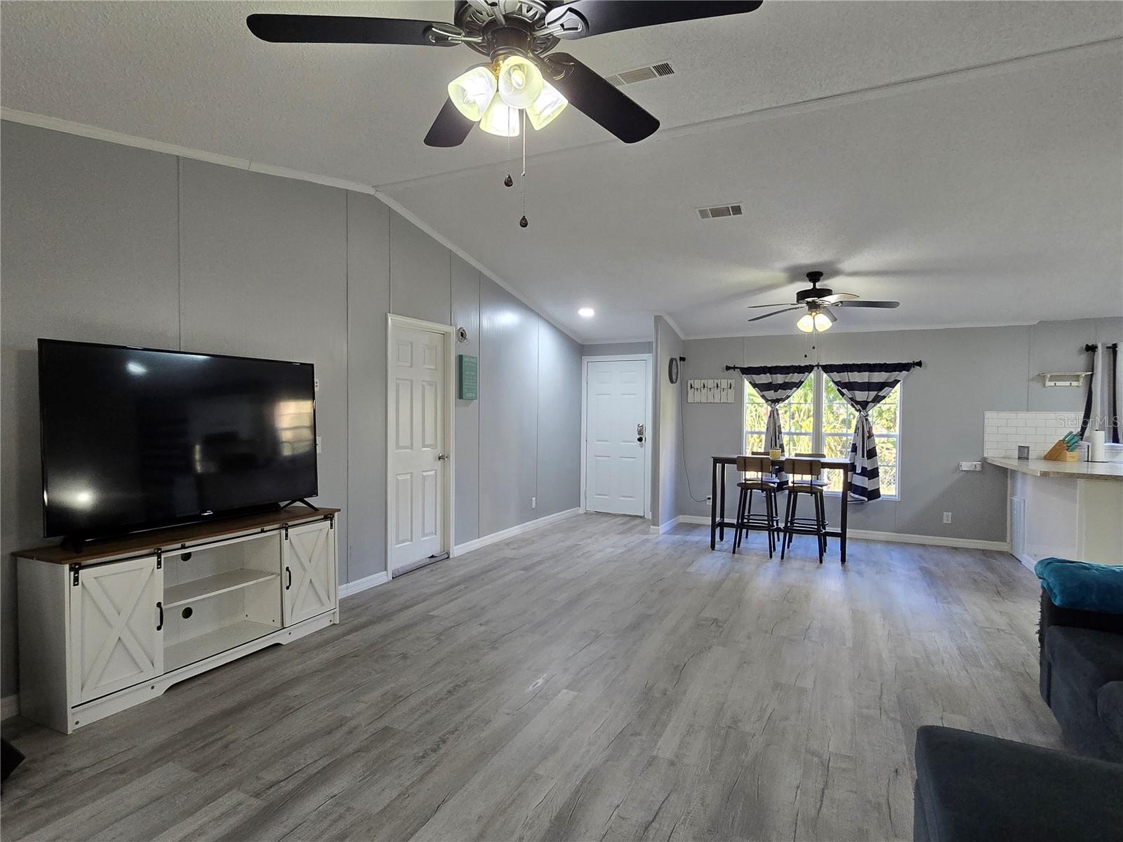 Beautifully updated 3-bedroom, 2-bath home offering approximately 1,456 square feet of comfortable living space, situated on a spacious, chain link fenced double lot with several storage buildings for all your toys. This home features a desirable split floor plan and new modern vinyl flooring throughout. The large open kitchen includes an eat-in dining area, breakfast bar, built-in cabinetry, and abundant natural light from numerous windows. Updated kitchen cabinets and bathroom vanities blend contemporary finishes with classic charm.The primary suite offers a spacious ensuite bath with dual sinks, a garden soaking tub, walk-in shower, and walk-in closet.Enjoy the screened-in back porch perfect for morning coffee, grilling, or evening gatherings. The property also features a newly added millings driveway, two carports for ample parking, and two storage sheds for added convenience.Located just minutes from the St. Johns River and a public boat ramp, with no HOA, this home offers the ideal balance of convenience and outdoor living in the heart of Astor. For $40.00 a year tenants may enjoy access to a private boat ramp off Blue Creek Road.