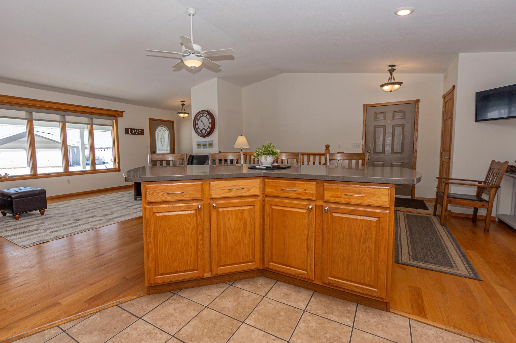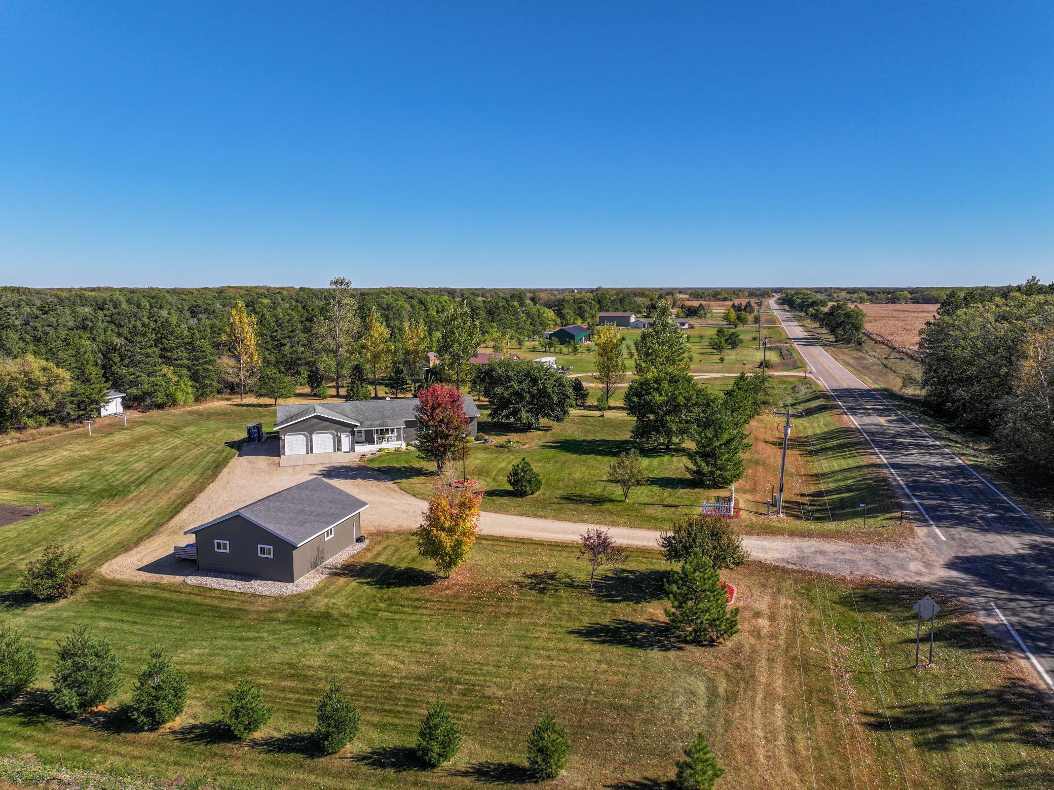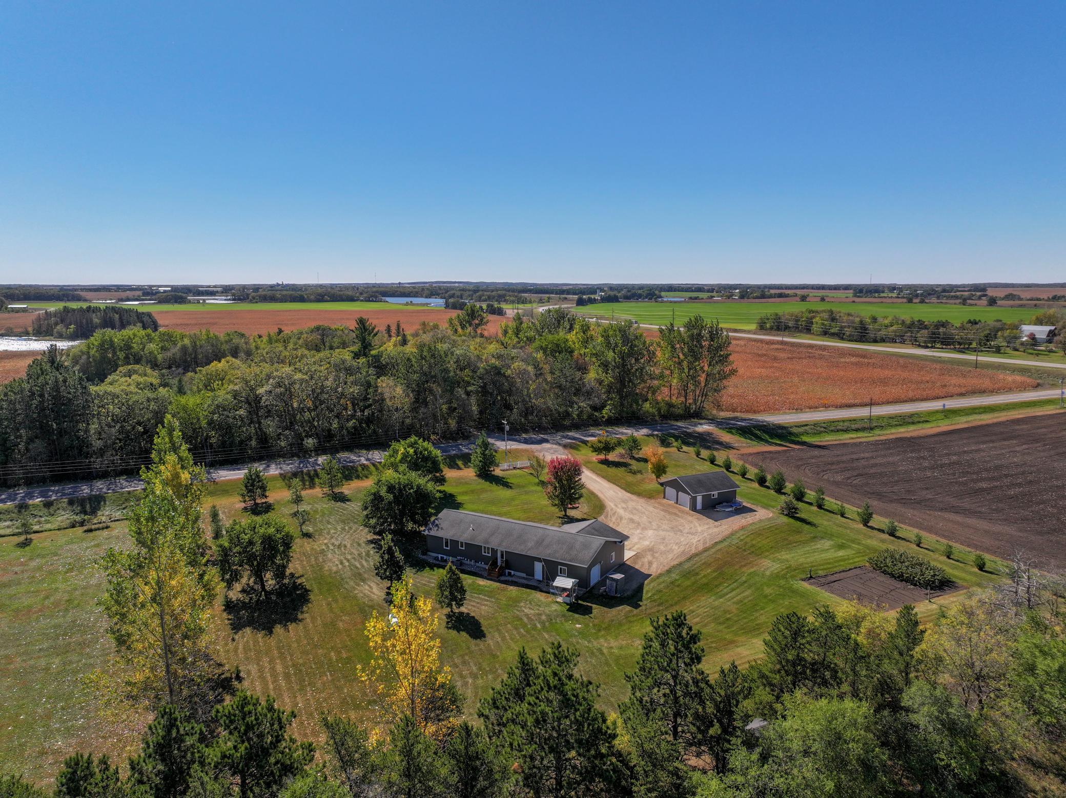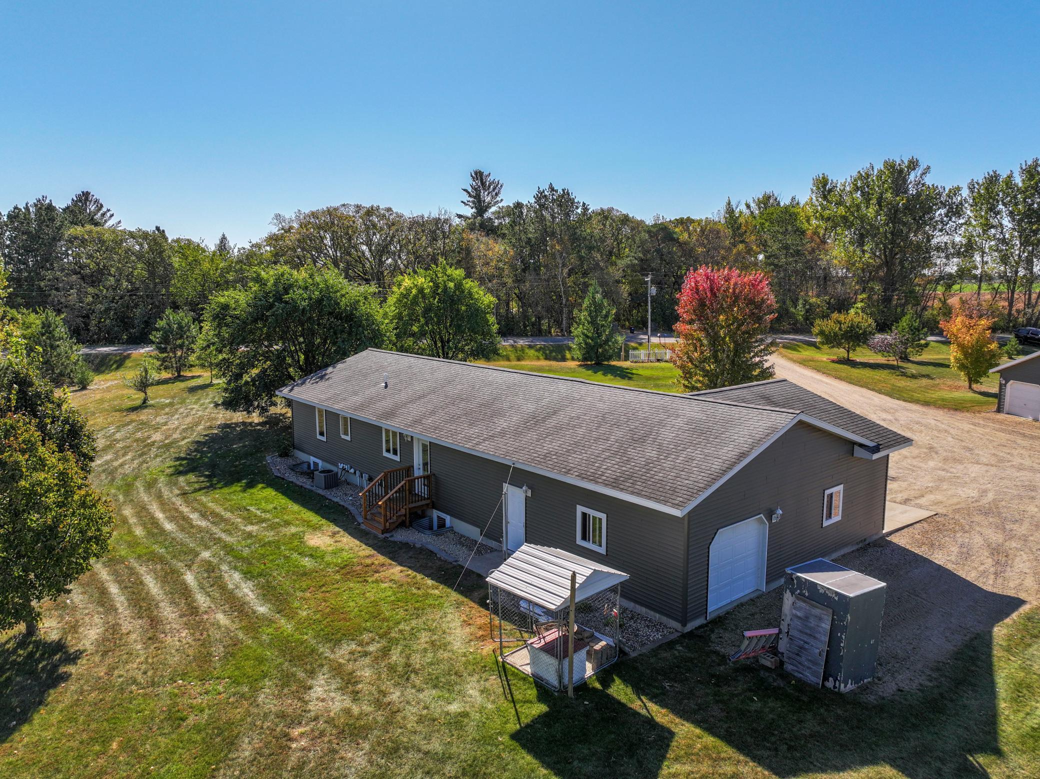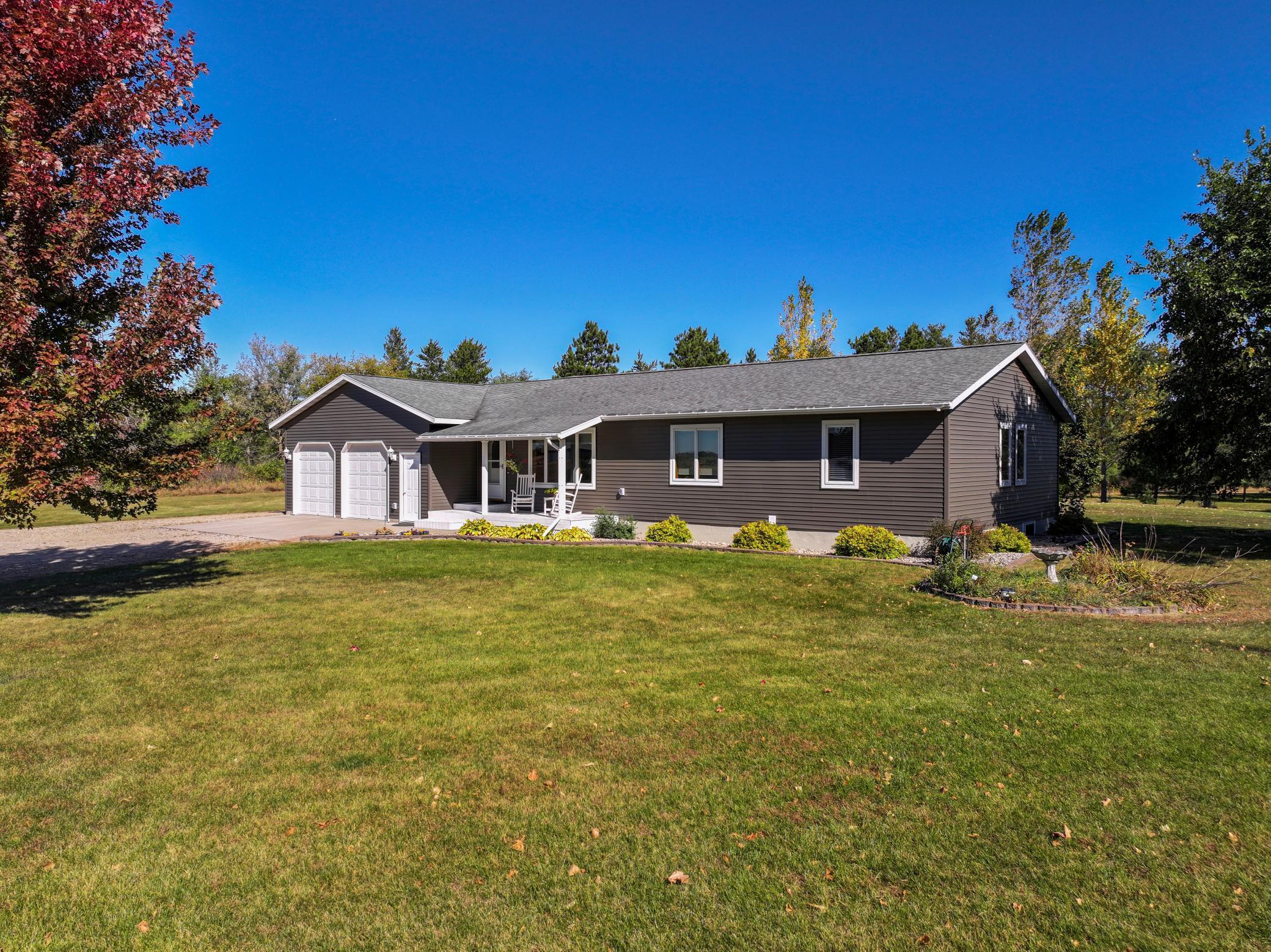 Some things are just about right, and that would be this property. This house is seated on 2.5 acres. It has been meticulously maintained throughout ownership and pride of the owners shines through here. This updated rambler resonates of charm and care. The kitchen has been updated with trendy backsplash, solid surface countertops, and stainless steel appliances. It offers bar seating and vaulted ceilings that give an open, airy, living and dining concept. The first room offers flexibility to be a home office, formal dining room, or playroom. The main floor features an owner's suite, additional bedroom, guest bath and main floor laundry. The basement offers tall ceilings, warm cozy floors with in-floor heat, lots of natural light, two additional flex spaces, one that could be a toy room or office, exercise room, or additional bedroom. Whether youre looking for a three bedroom-three bath or a five bedroom- three bath, this home has the flexibility to fit your needs in all the ways you need. Have I mentioned it has an oversized two stall garage, arguably a three stall and an additional two stall detached garage? If youre looking for space, low-maintenance living, and the perfect spot in the country, this charmer is a must see.