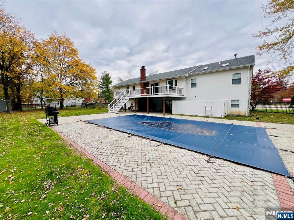 This spacious and well-maintained 4-bedroom, 4-bathroom home offers over 3,000 sq ft of living space in the heart of Franklin Lakes. The first floor features a welcoming family room with a fireplace and built-in bar, a versatile bonus room, full bathroom, laundry room, and an attached 2-car garage. Upstairs, enjoy an open-concept living room and kitchen with access to the deck - ideal for entertaining. The luxurious primary suite includes a gas fireplace, walk-in closet, and a large en-suite bathroom with soaking tub and separate shower. Three additional bedrooms and two more full bathrooms complete the second floor. Step outside to a private backyard with a spacious deck, in-ground pool, and large fenced yard. Located in a highly desirable neighborhood close to top-rated schools, parks, and amenities.