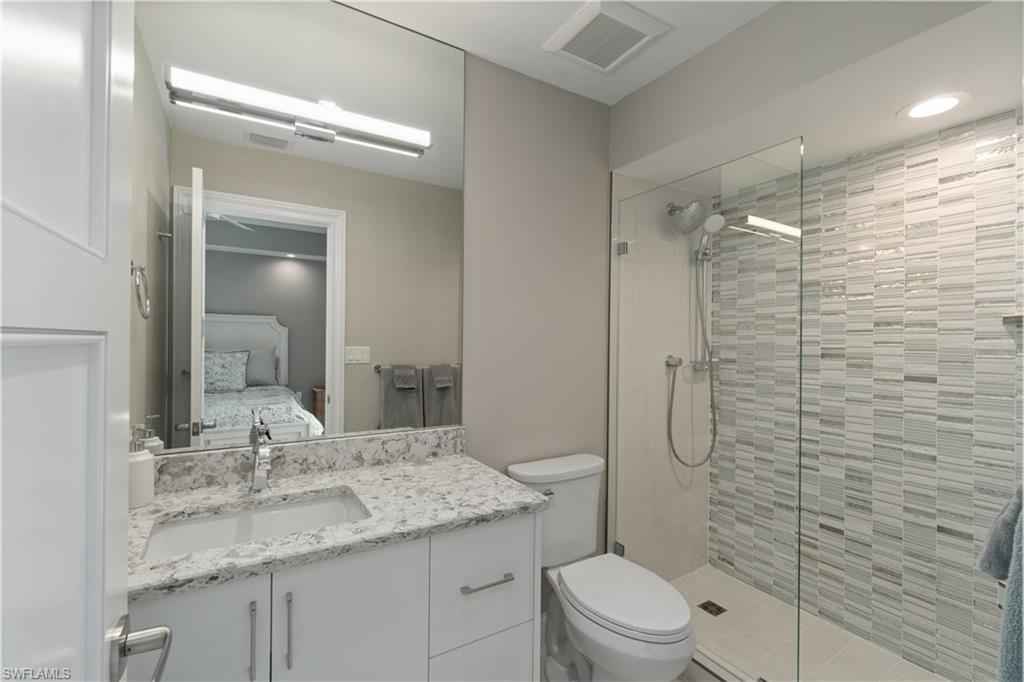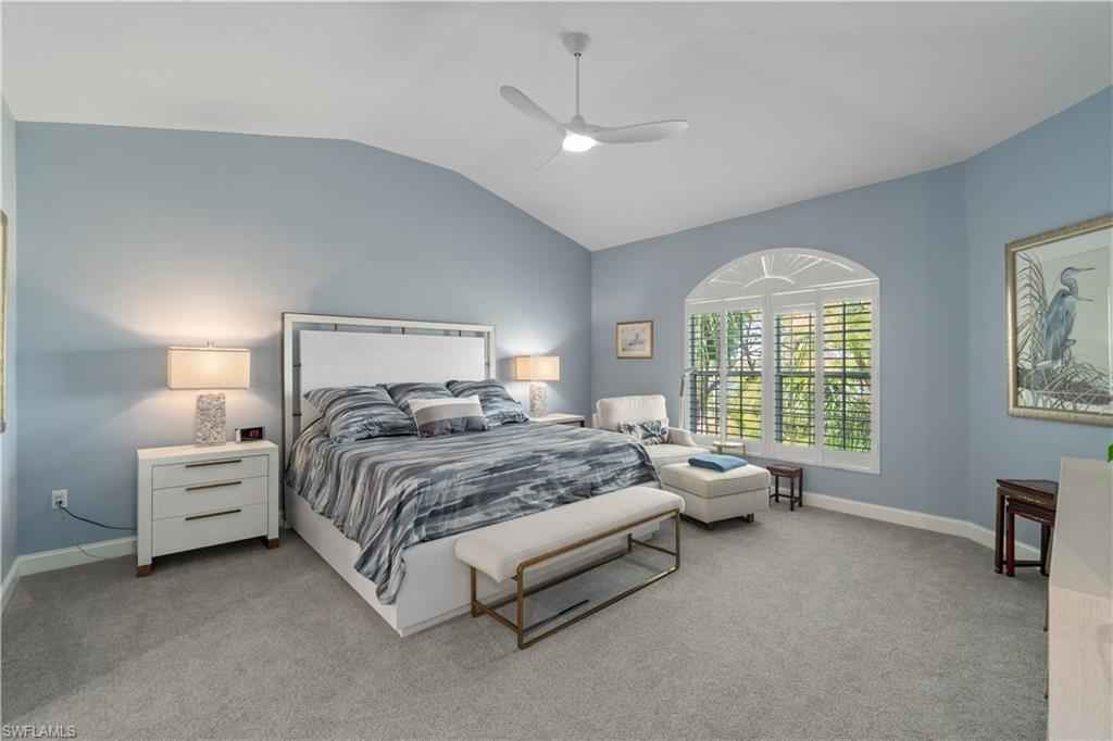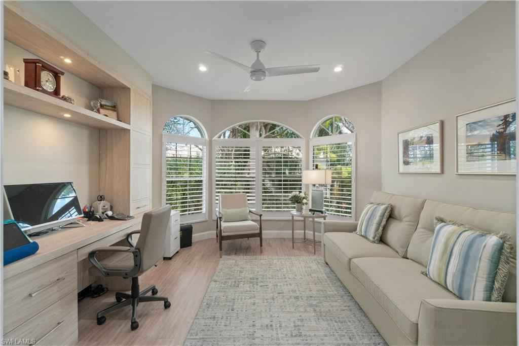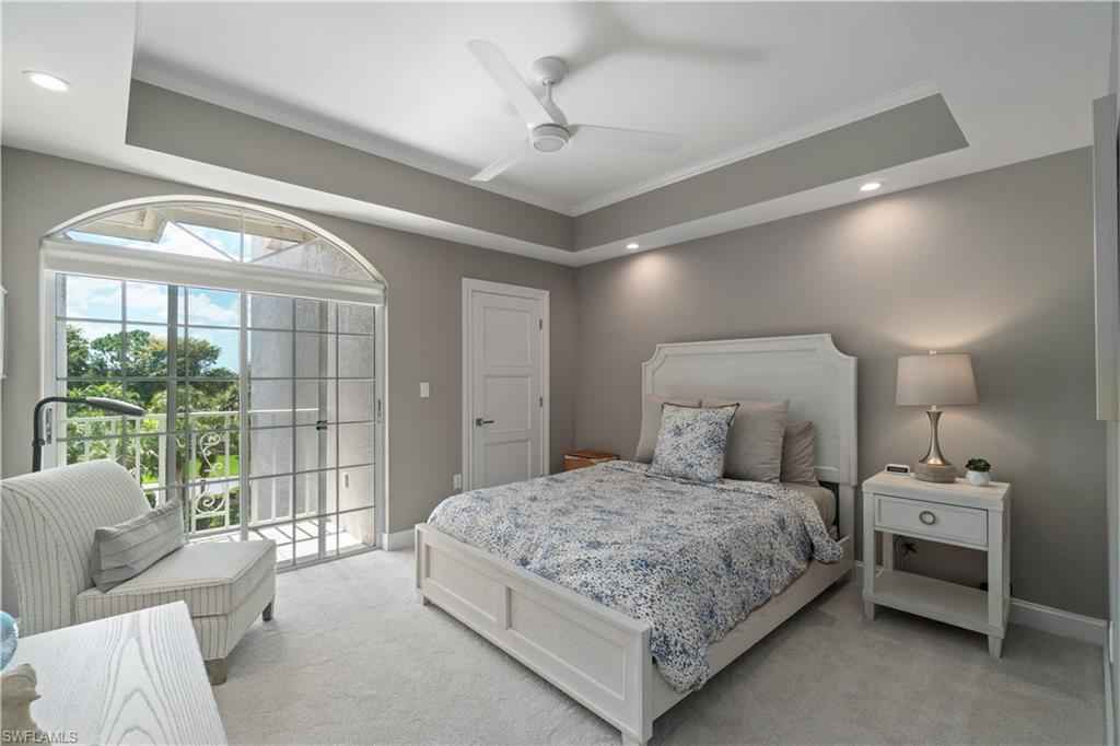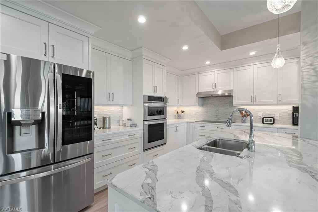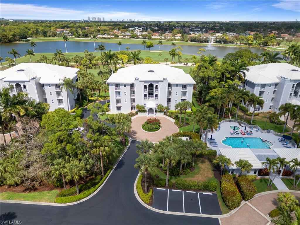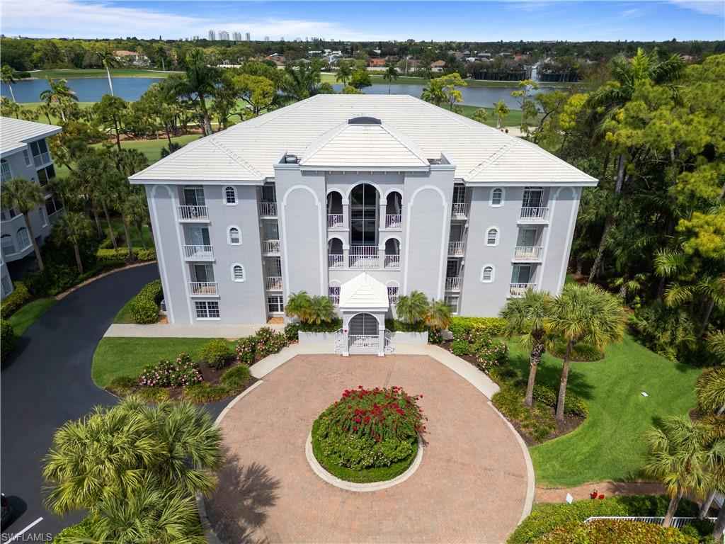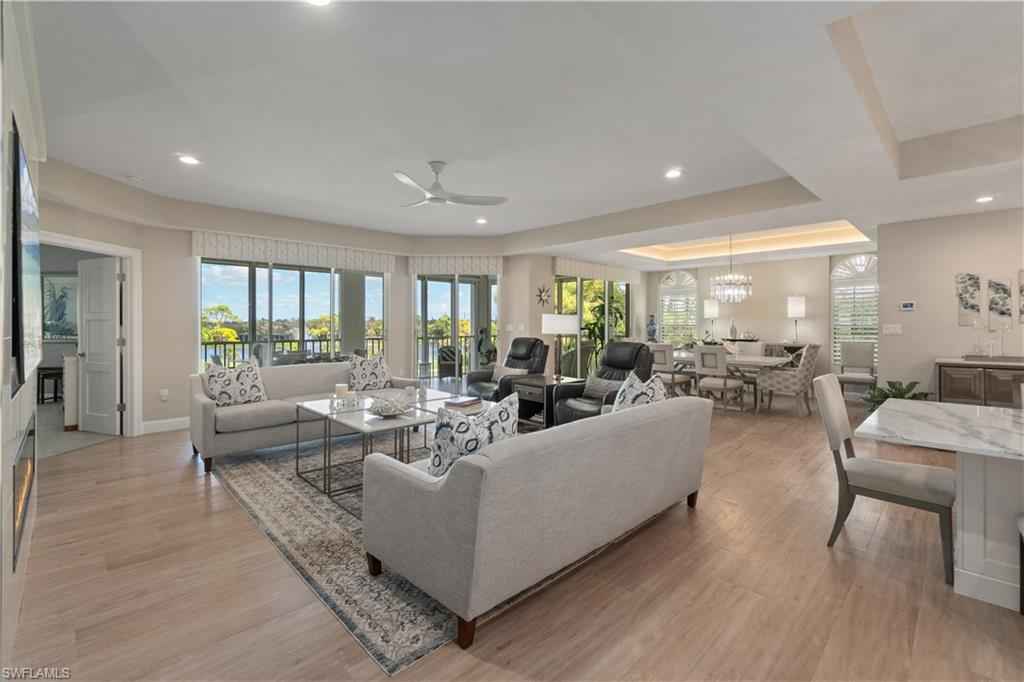 Beautifully renovated third-floor condo with spectacular golf course and lake views in North Naplesx2019; coveted Audubon Golf & Country Club. Residents enjoy convenient access to Audubonx2019;s exceptional amenities just steps away, including the 18-hole championship golf course, tennis, pickleball, bocce, scenic bayside boardwalk, fitness center and poolside restaurant. This stunning residence offers a spacious open floor plan with 2,578 square feet under air, featuring 3 bedrooms plus a den, 3.5 bathrooms, tile flooring throughout, soaring tray ceilings, a fireplace, and a light-filled interior. Additional highlights include a private two-car garage equipped with electric vehicle charging capability, golf cart storage, and electric hurricane shutters. Step onto the expansive screened lanai and take in tranquil golf course and lake viewsx2014;an ideal setting for relaxing or entertaining. The beautifully designed chefx2019;s kitchen features quartz countertops, crisp white cabinetry, a T-shaped island with ample seating, and high-end appliances. Adjacent to the kitchen, the formal dining area provides an elegant space for entertaining, complete with a wet bar and wine refrigerator. The expansive primary suite is a private retreat, offering a large walk-in closet and a spa-inspired en-suite bath with dual vanities, a soaking tub, and a spacious glass-enclosed shower. Audubon Golf & Country Club is ideally located just five minutes from the vibrant Mercato shopping and dining district and the pristine beaches of Southwest Florida, all within a gated and guarded community.