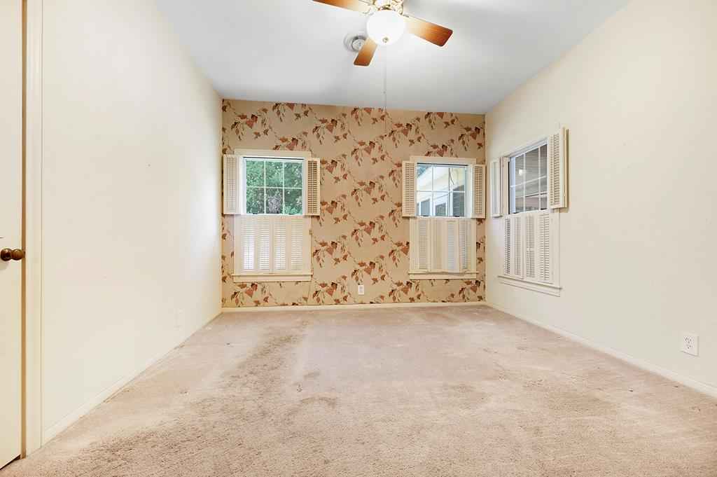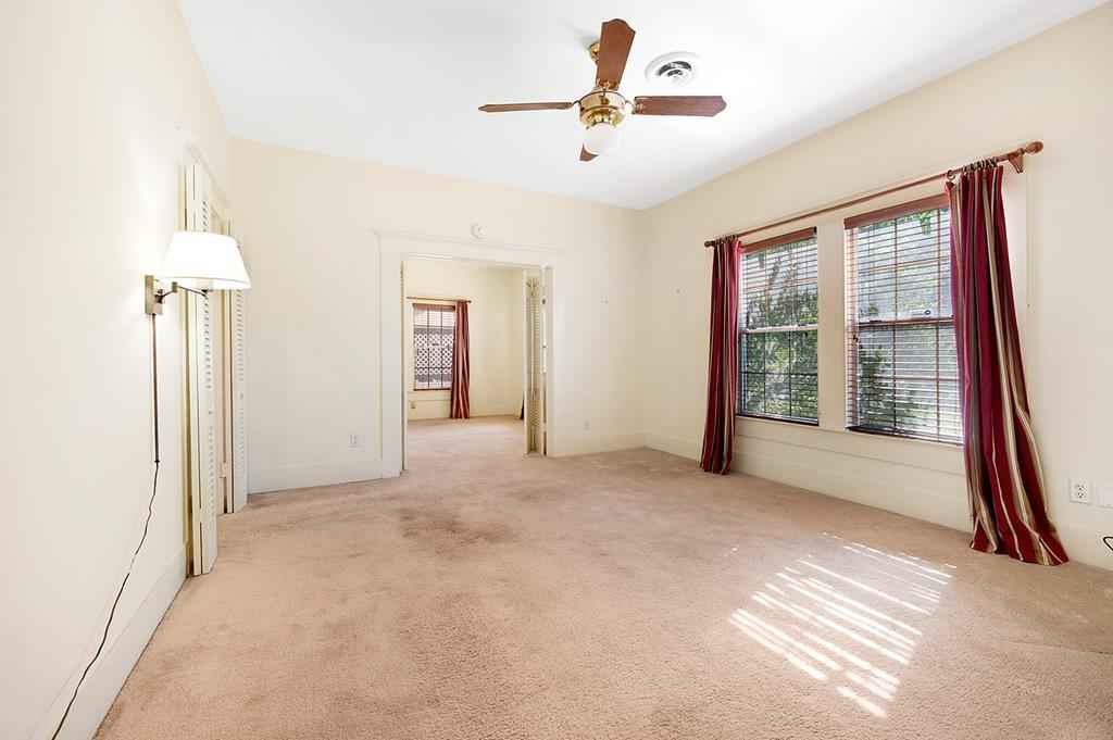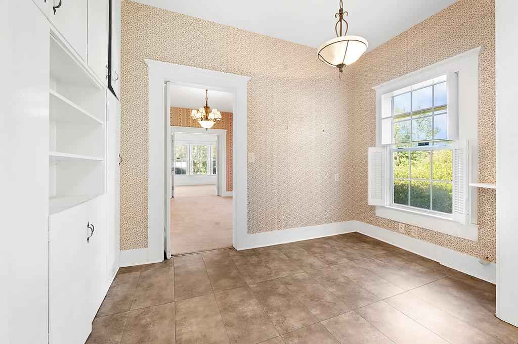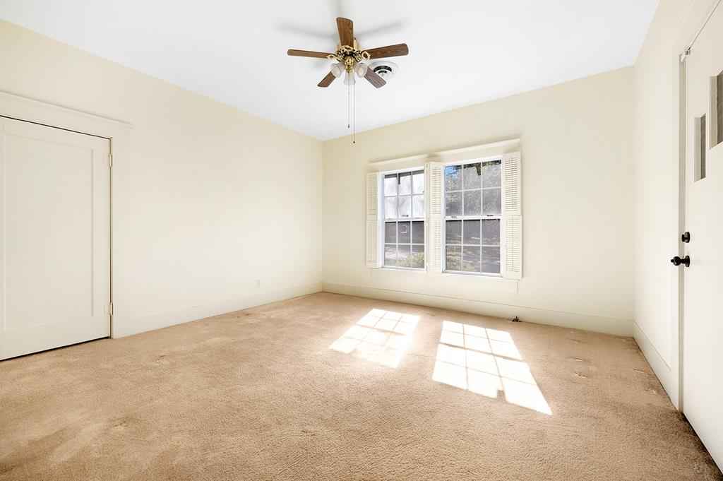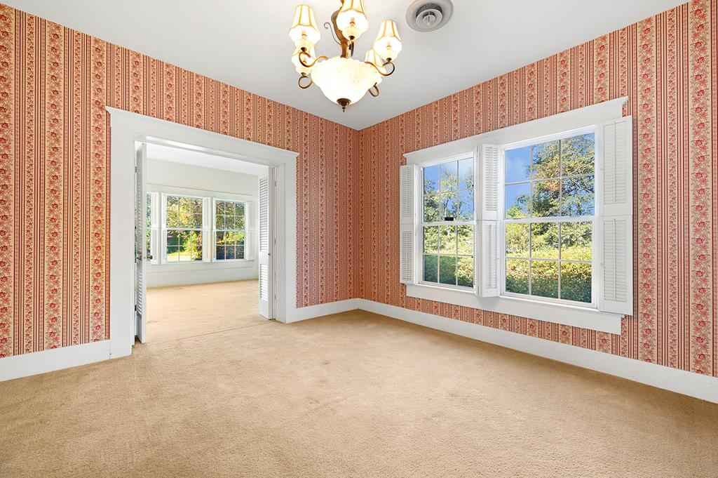 Step back in time with this charming 1940's home offering over 3,000 sq. ft. of character and comfort. Nestled on a half-acre corner lot shaded by mature trees, this 4-bedroom, 3-bath residence features 9' ceilings, a formal living and dining room, and multiple sitting areas perfect for entertaining. Built-ins throughout the home provide abundant storage, while a cozy sunroom and side porch invite peaceful relaxation. A unique side-yard layout offers private access to two bedrooms and a serene sitting area. The detached garage/carriage house includes a large storage room and a private yard surrounded by blooming azaleas. Recent updates include a new roof (5 yrs), windows, alarm system and HVAC blending classic charm with modern comfort. NOTE: The original hardwood flooring is under all of the carpeted areas with the exception of the wing off the utility room.