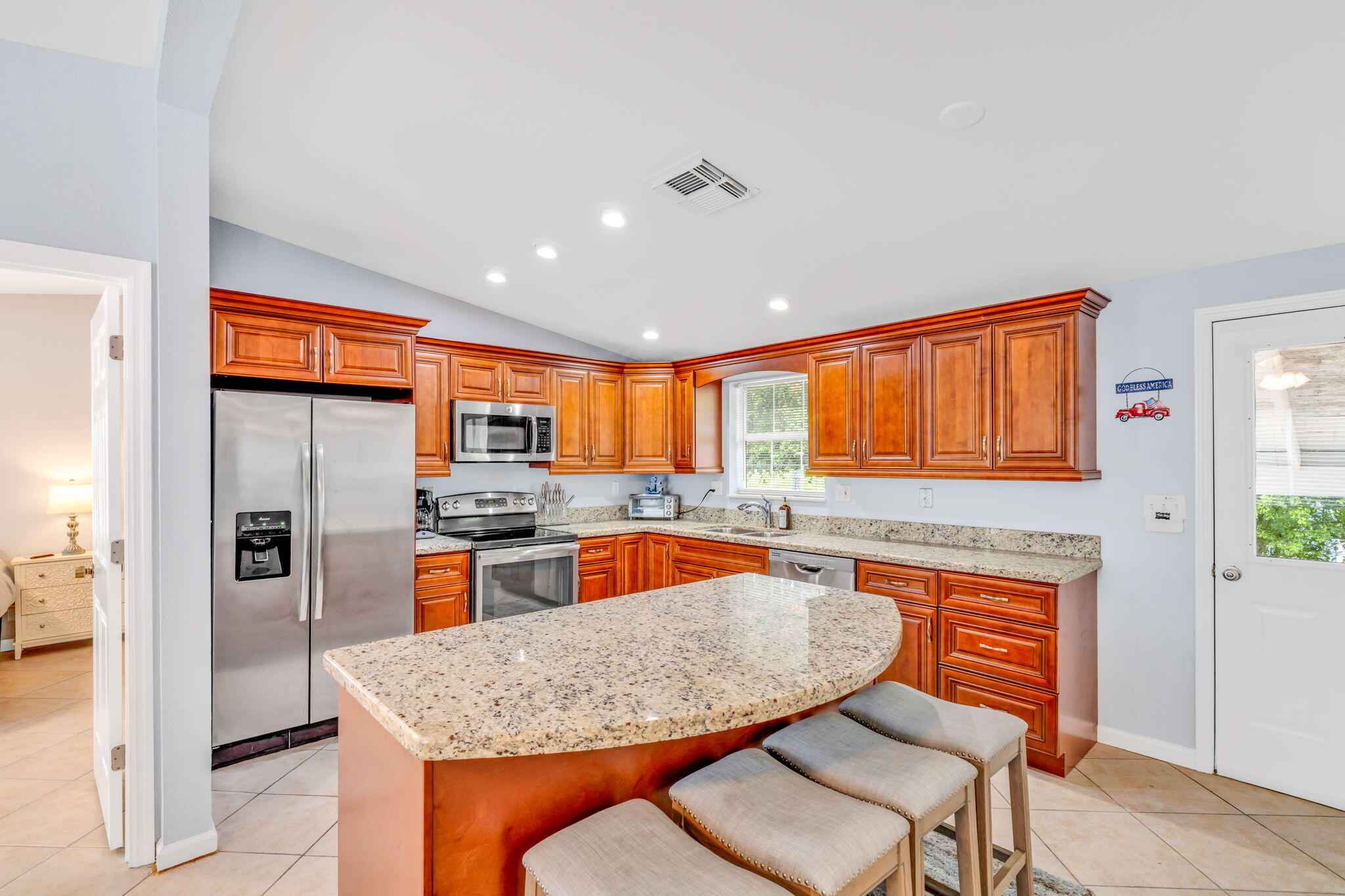 Above flood and full of character, this three-bedroom, two-bath residence in the peaceful Sunset Bay neighborhood of Grassy Key delivers comfort, efficiency, and long-term value in one of the Middle Keys' most desirable settings. With 1,056 square feet of interior living space, the layout feels bright and open thanks to soaring cathedral ceilings and abundant natural light, while the split-bedroom design provides privacy for owners and guests alike.The kitchen features granite countertops and ample cabinetry, offering a clean, modern feel that works beautifully for everyday living or visiting guests. A dedicated laundry room adds convenience, and each bedroom provides a welcoming retreat after a day spent enjoying the island lifestyle. Both bathrooms are well maintained and designed for easy function.Step outside to a private patio that's perfect for morning coffee, evening cocktails, or relaxed entertaining. The 6,098-square-foot lot offers just the right amount of outdoor space without the burden of heavy maintenance. Covered parking under the carport, central air conditioning, and a durable metal roof all contribute to easy ownership and peace of mind.Location is another standout feature. The waterfront park in Marathon is only a block away, giving you quick access to open water, kayak launches, picnic areas, and places to enjoy the famous Keys sunsets. Even without being directly on the water, ocean and bay adventures are always within reach.For investors, the highly desirable 7-day rental status opens the door to excellent income potential. Owners can enjoy the home when they choose and generate revenue while away, making this a flexible asset as well as a personal retreat.Whether you are looking for a full-time residence, seasonal getaway, or a property that can help pay for itself, this opportunity delivers the best of lifestyle and return.