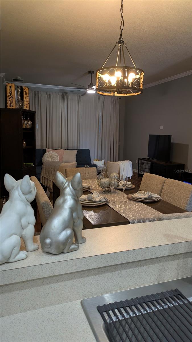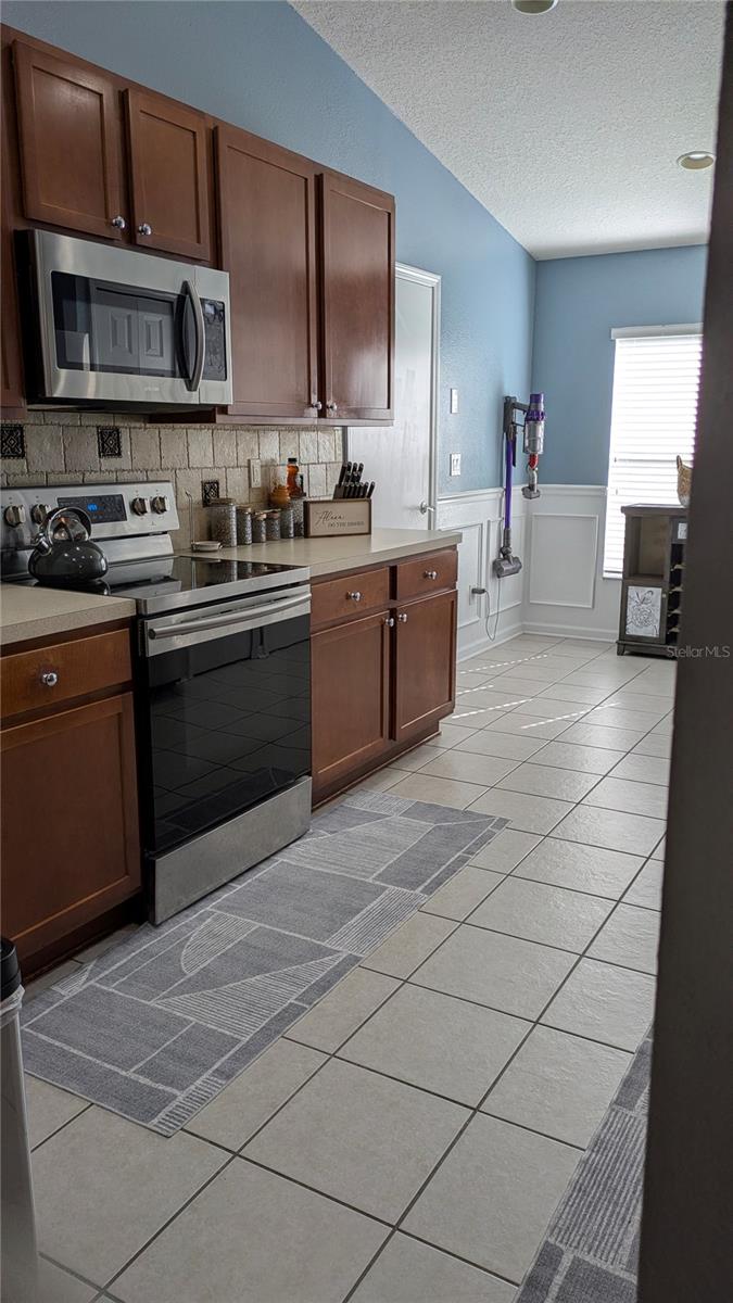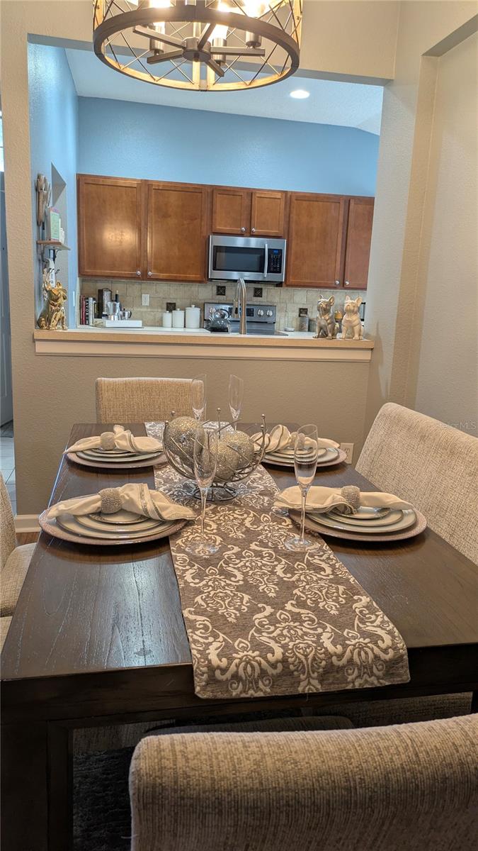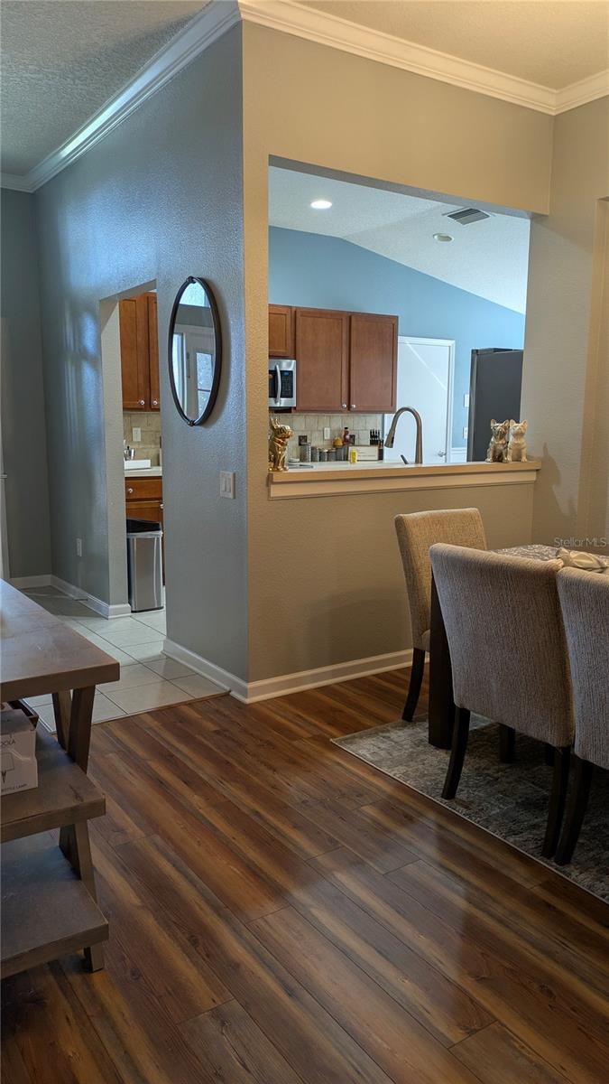 Tucked away in the sought-after community of Trillium, this beautifully maintained 4-bedroom, 2-bathroom home with a 2-car garage is move-in ready. Step inside to vaulted ceilings and timeless laminate flooring that flows through the main living areas, creating an open and welcoming feel.The spacious kitchen features stainless appliancess and a breakfast bar/pass-through overlooking the family and dining areas, perfect for easy entertaining. A charming breakfast nook accented with wainscoting, a convenient pantry, and a large laundry closet with extra shelving add both style and functionality.The bright and airy living room offers crown molding and triple sliding glass doors that lead to a fully fenced backyard. Enjoy a covered patio area for outdoor dining and an additional patio space ideal for relaxing by a fire pit.The primary suite includes a walk-in closet and a well-appointed ensuite bathroom with dual sinks, a garden tub, and a separate shower. The smart triple-split bedroom layout provides excellent privacy for all.Residents of Trillium enjoy fantastic amenities, including a clubhouse, resort-style pool with cabanas, playground, and multi-purpose recreation field. Conveniently located near shopping, dining, medical facilities, and the Suncoast Parkway, this home truly has it all. Available Jan 2nd. Washer and dryer will be switched for a different model. LAWN CARE and TRASH IS INCLUDED IN RENTAL PRICE