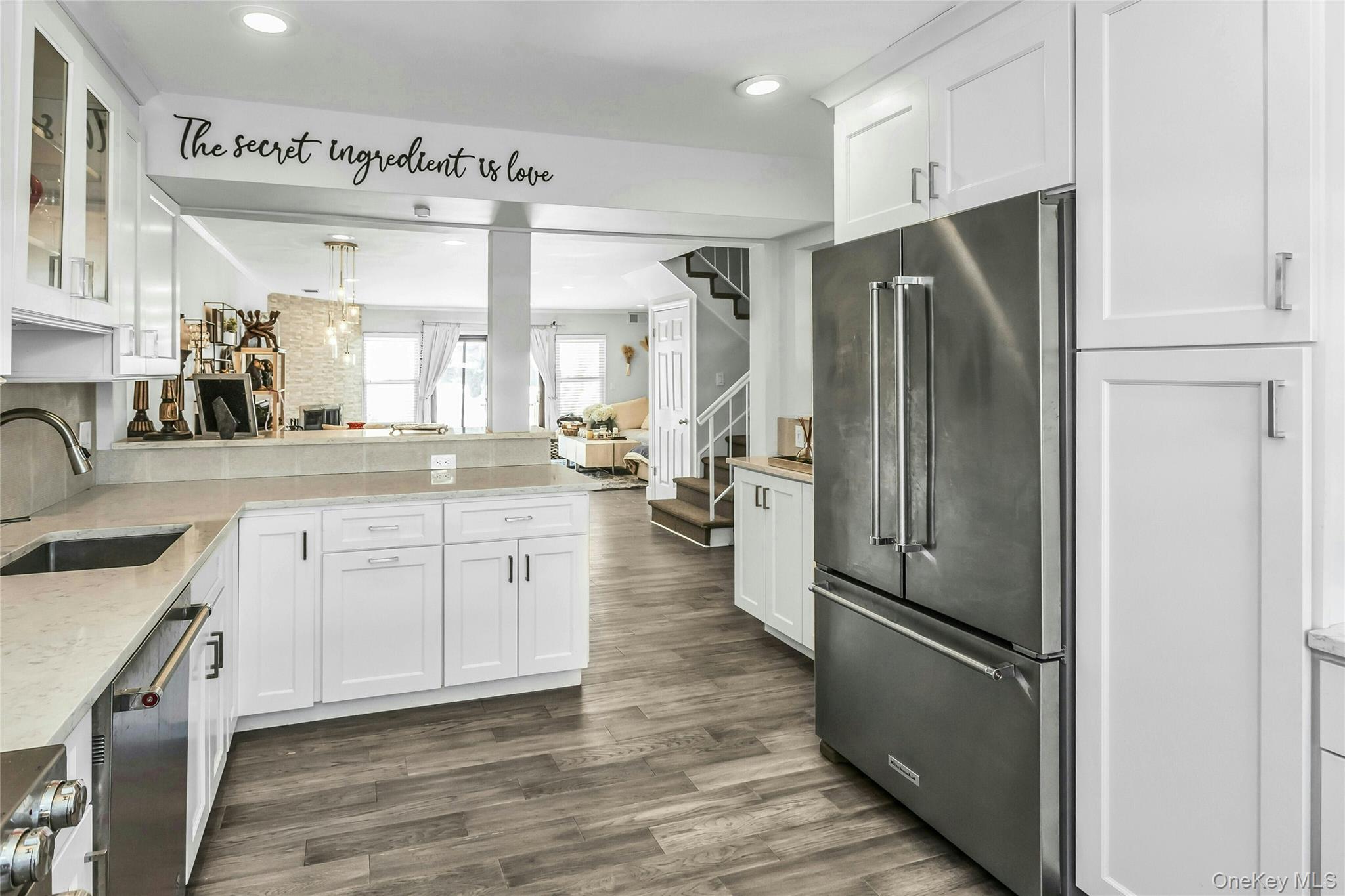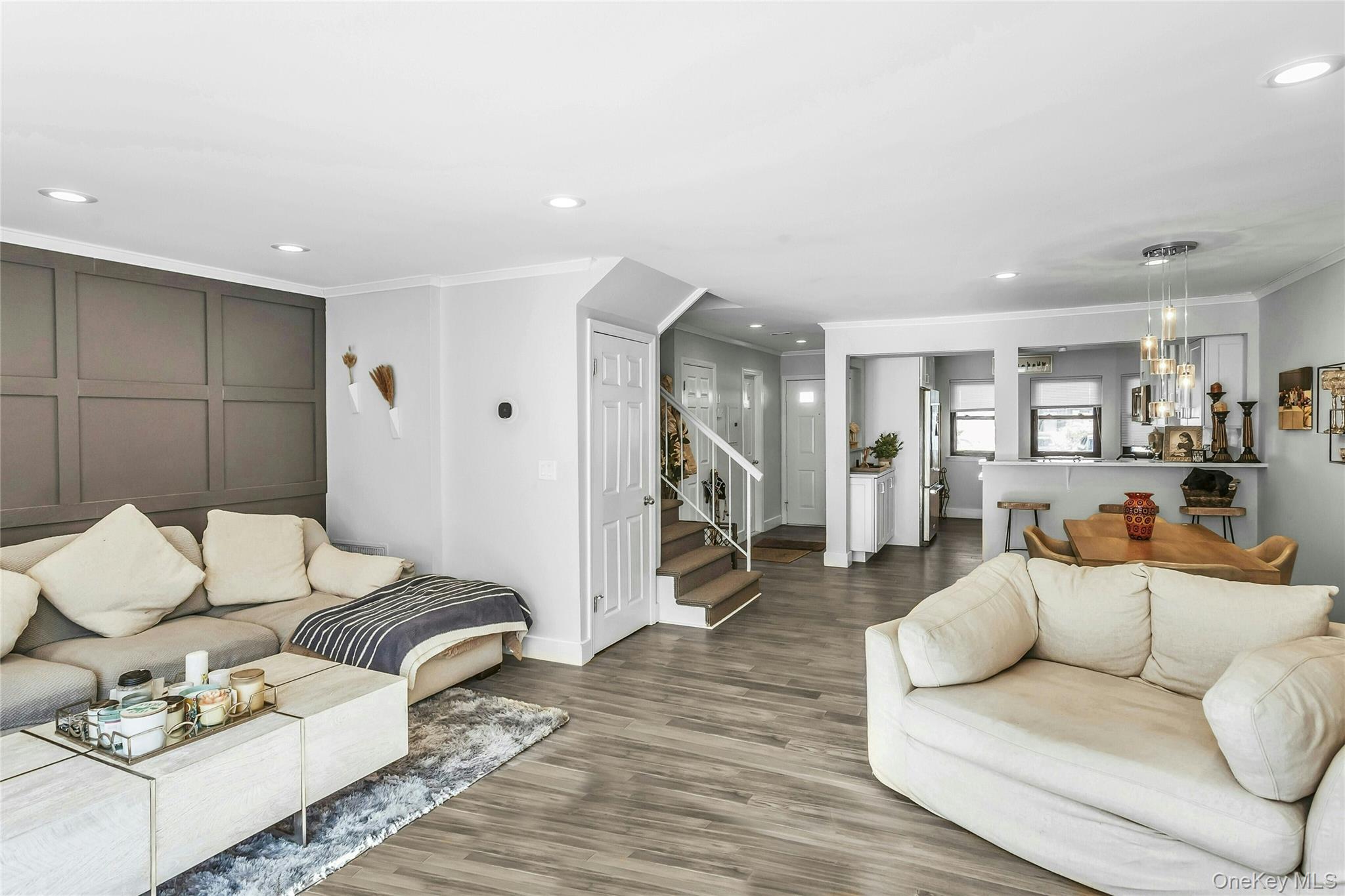 This Completely updated townhouse in the desirable Woodbury Village offers low-maintenance, stress free living and is convenient to all. The first floor features a floating hardwood floor throughout and a customized eat-in kitchen with abundant custom cabinetry with quartz counter tops, and stainless steel appliances. The open-concept dining room and living room area includes crown molding, a wood-burning fireplace with cultured-stone surround creating a warm and inviting space accented by a stylish feature wall. Upstairs are two spacious bedrooms, each with its own updated full bathroom. The primary bedroom offers two large closets and a skylight, and its bathroom includes a tub/shower combo with subway-tile walls. The second bedroom features an en-suite bath with a standing shower, porcelain-tile walls, and porcelain-tile floor. Additional storage is available in the pull-down attic in the hallway. Woodbury Village residents enjoy on-site amenities including a pool and tennis courts. There is truly nothing left to do but unpackthis home is a must-see! Professional photography to be uploaded shortly.