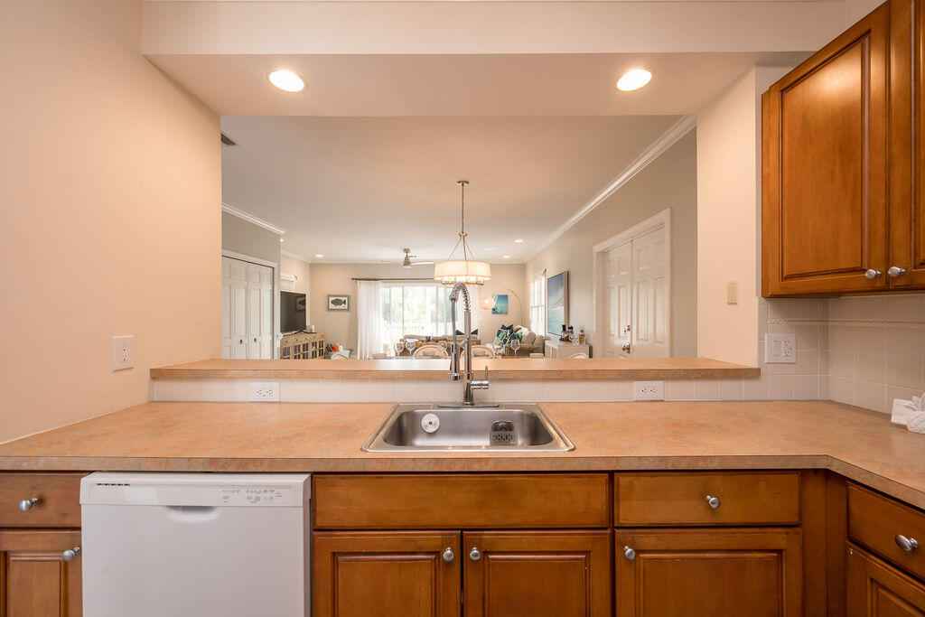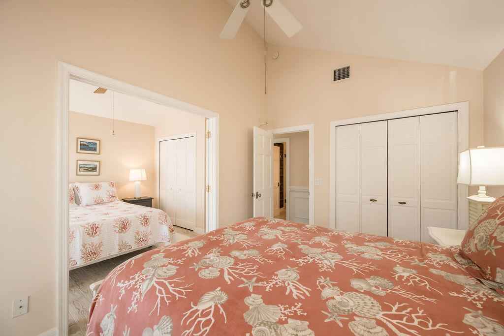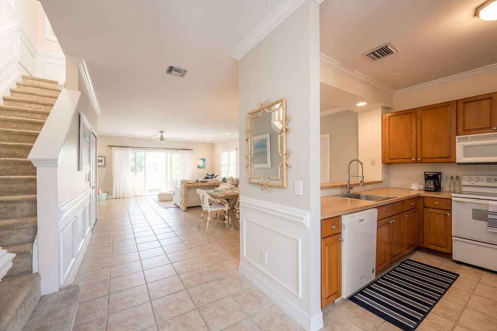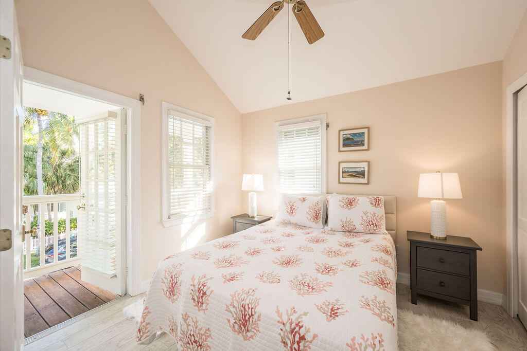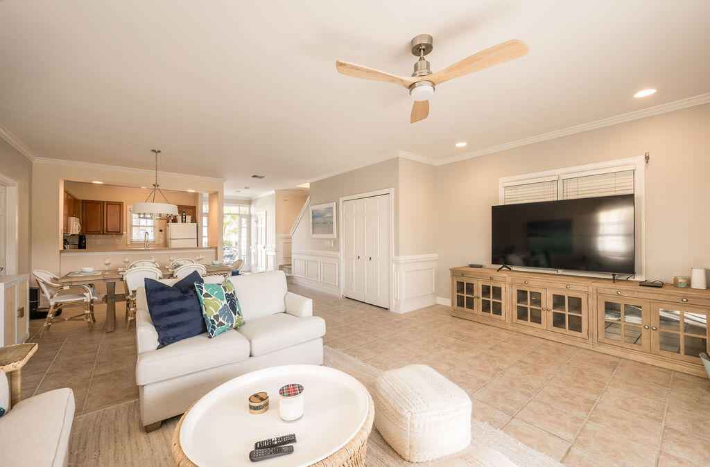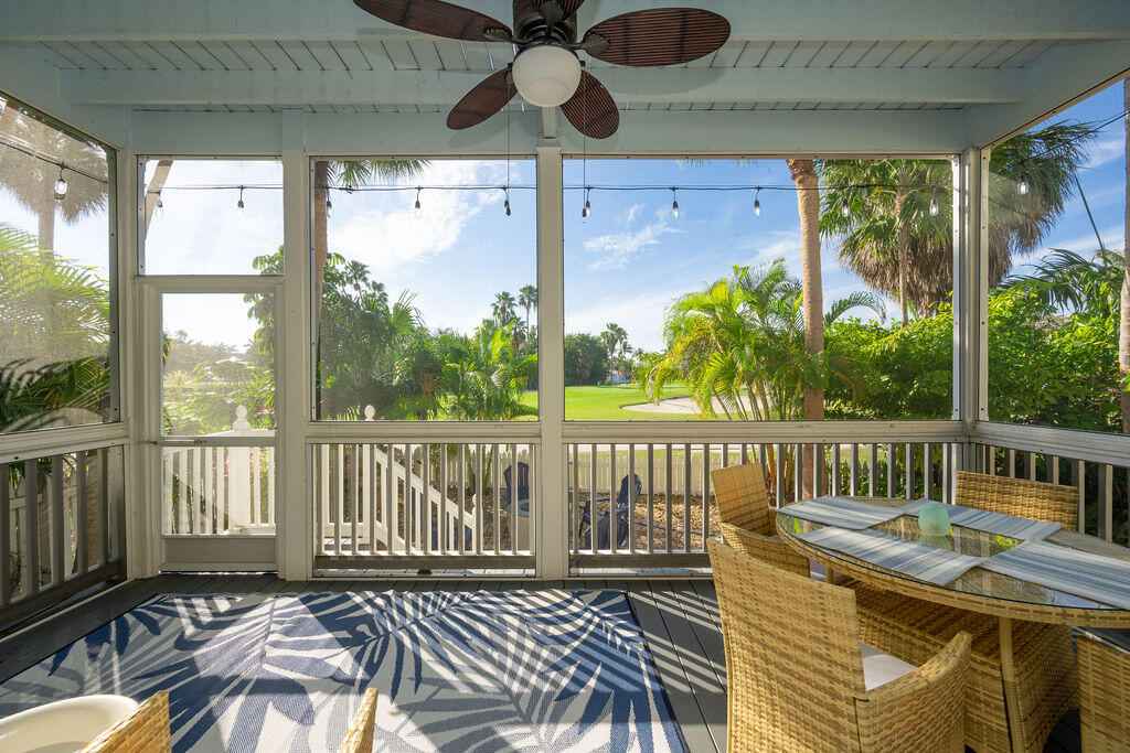 Beautifully appointed two-story, single family residence offers approx. 1,600 sq ft of living space with three bedrooms plus a flexible bonus room ideal for a home office or optional fourth sleeping area, complete with custom built-in bookcases. The open-concept main living area flows effortlessly into a spacious screened porch, while the primary suite enjoys its own open balcony showcasing tranquil golf course vistas.Interior features include crown molding, ceramic plank floors upstairs and a generous kitchen that anchors the main living space for easy entertaining. Upstairs, the split-bedroom layout provides privacy, with the primary suite separated from the guest rooms and framed by peaceful lake views.Offered fully furnished for added convenience, this home also features a metal roof, accordion and roll-down shutters, fenced exterior, and two open parking spaces.Residents of Key West Golf Club enjoy resort like amenities including gated security, clubhouse access, community pool, on-site management, cable, and common area maintenance all included in the monthly HOA.